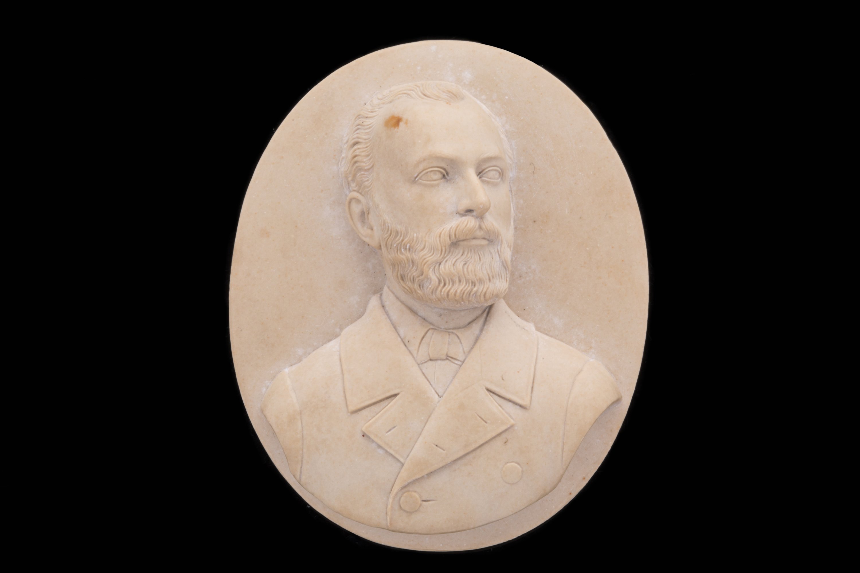 CAMÉE sur PIERRE de LAVE de forme ovale représentant un PORTRAIT d'HOMME en buste de trois-quarts habillé d'un costume de ville.