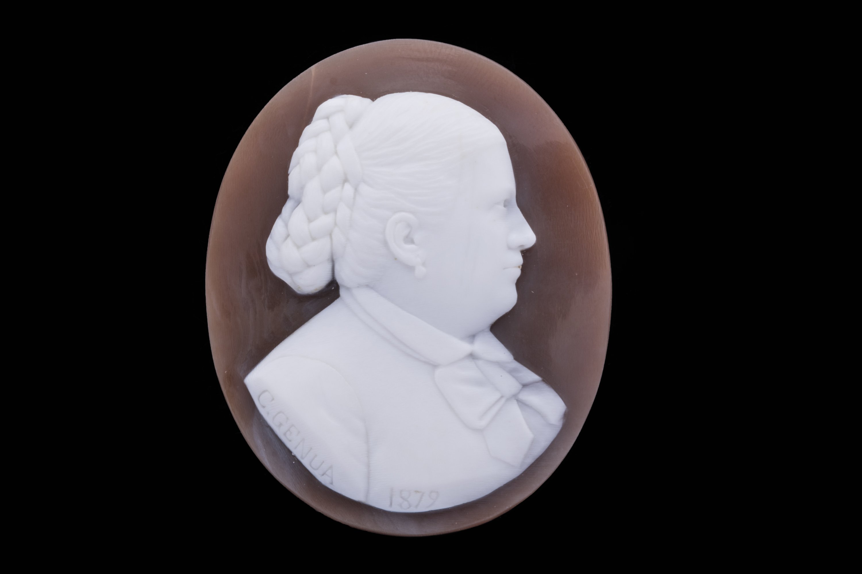 CAMÉE sur COQUILLAGE de forme ovale représentant un PROFIL FÉMININ...