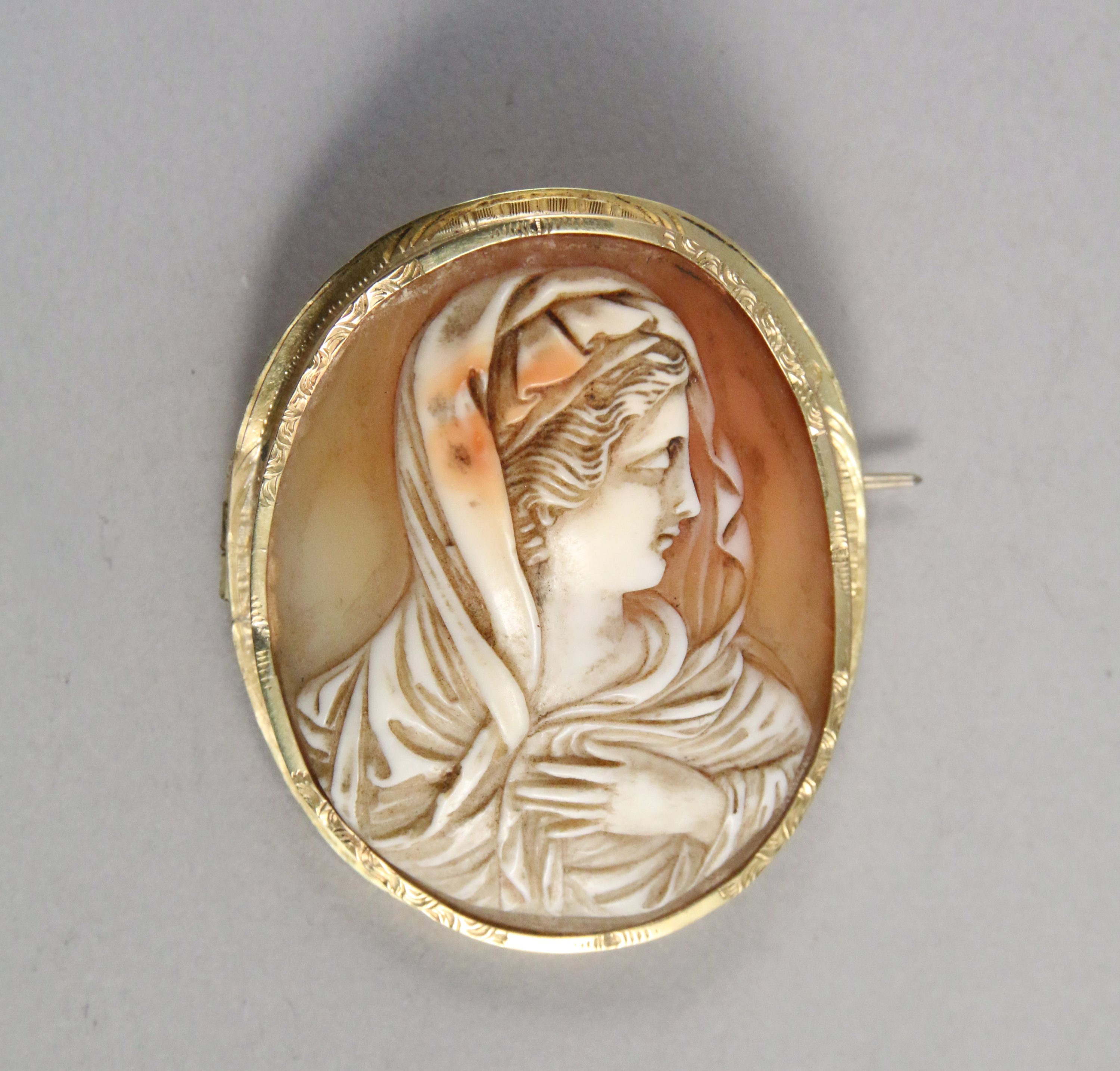 CAMÉE sur COQUILLE au profil de femme à l'Antique monté en BROCHE.