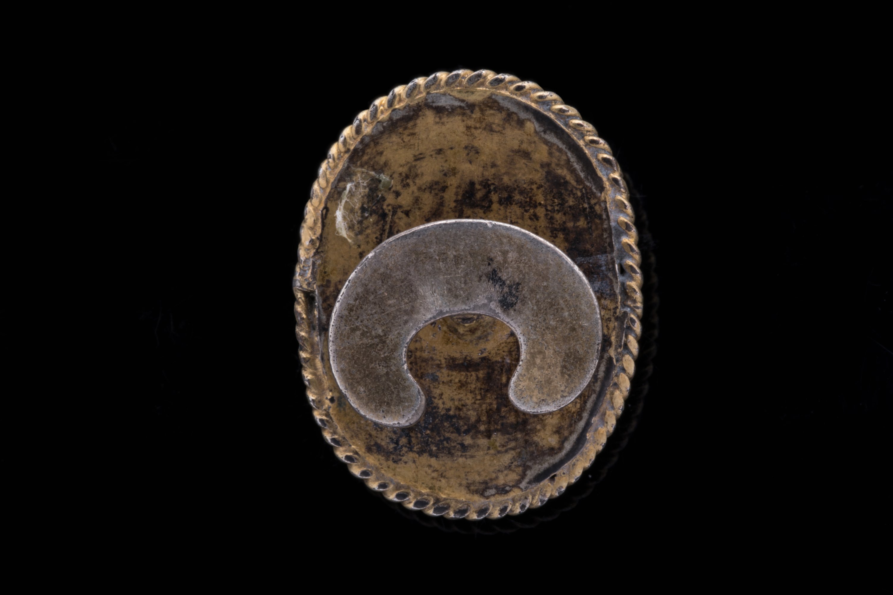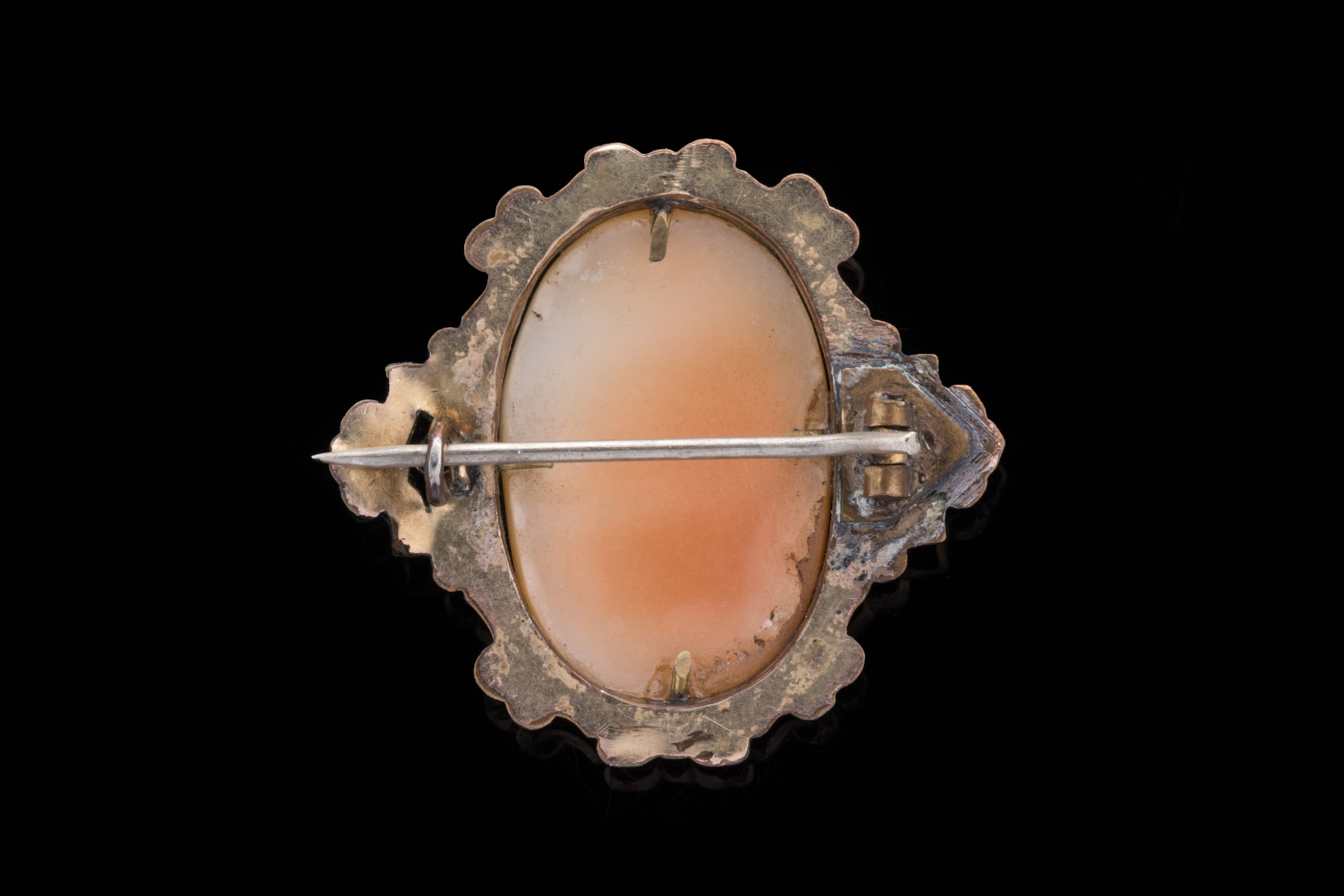 - Le second représentant un PROFIL de FEMME monté sur bouton de col en métal doré (Haut. 2,1, Larg. 1,6 cm.)