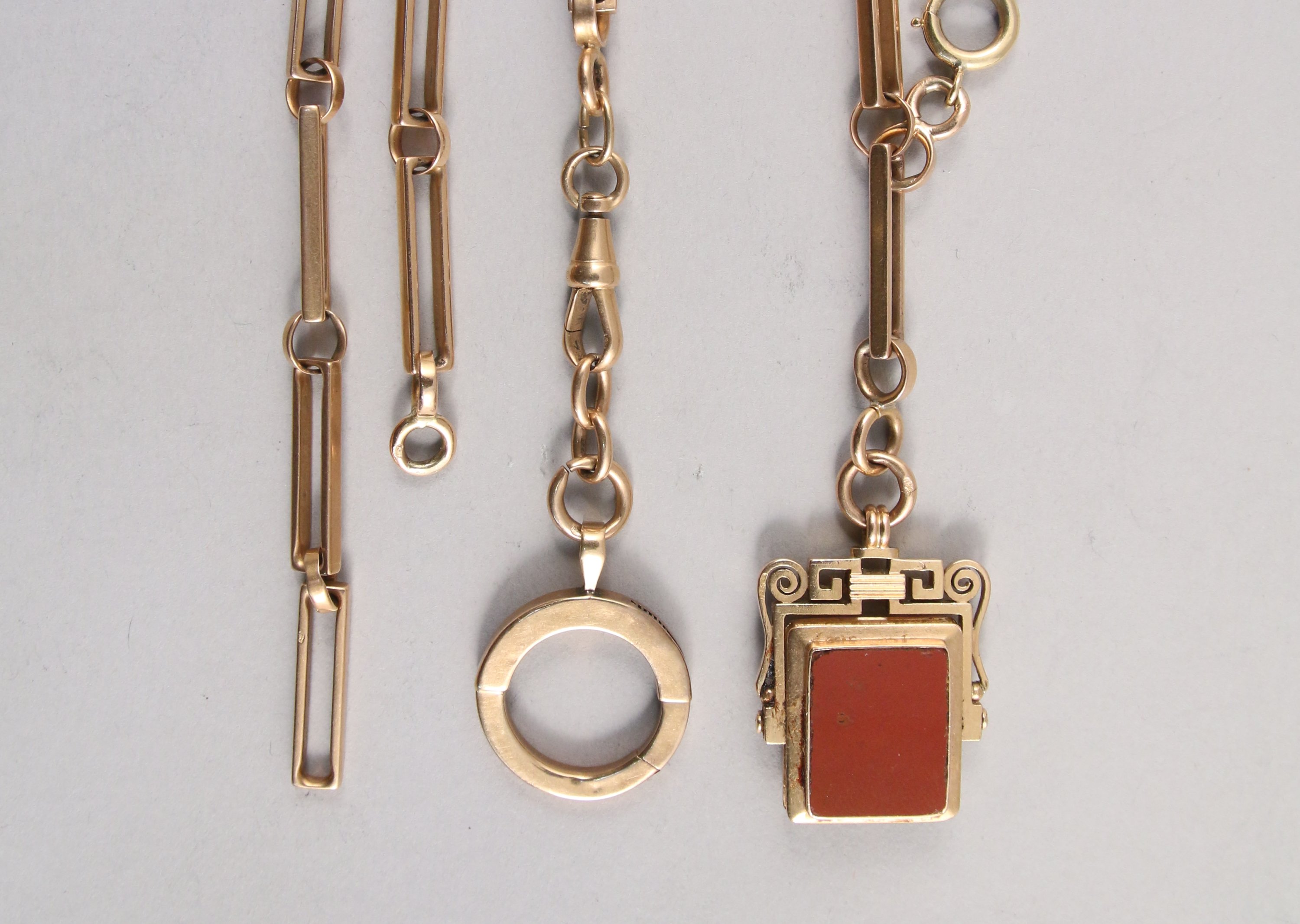 CHAÎNE en or jaune à maillons rectangulaires terminée par une pierr dure articulée.