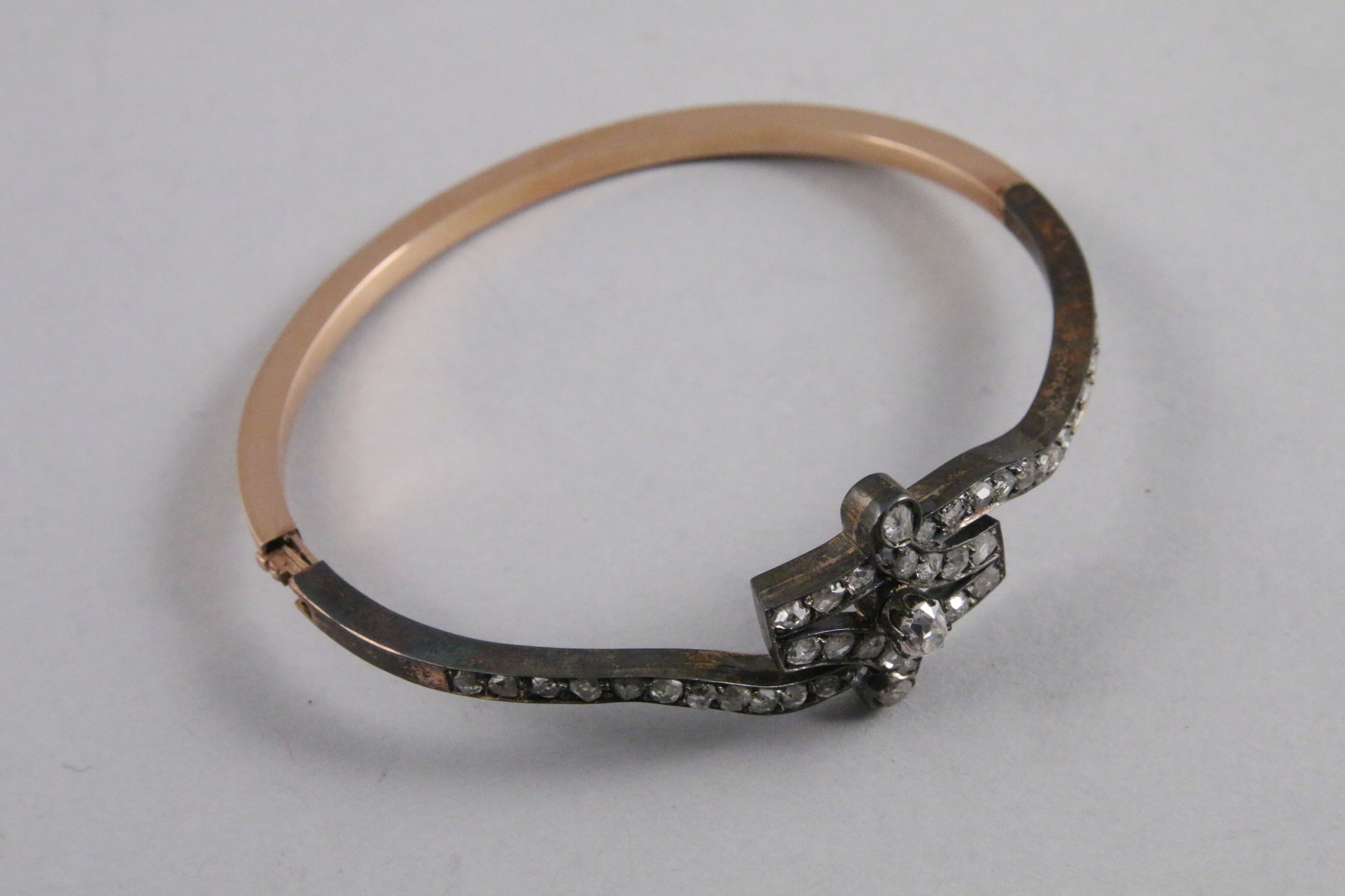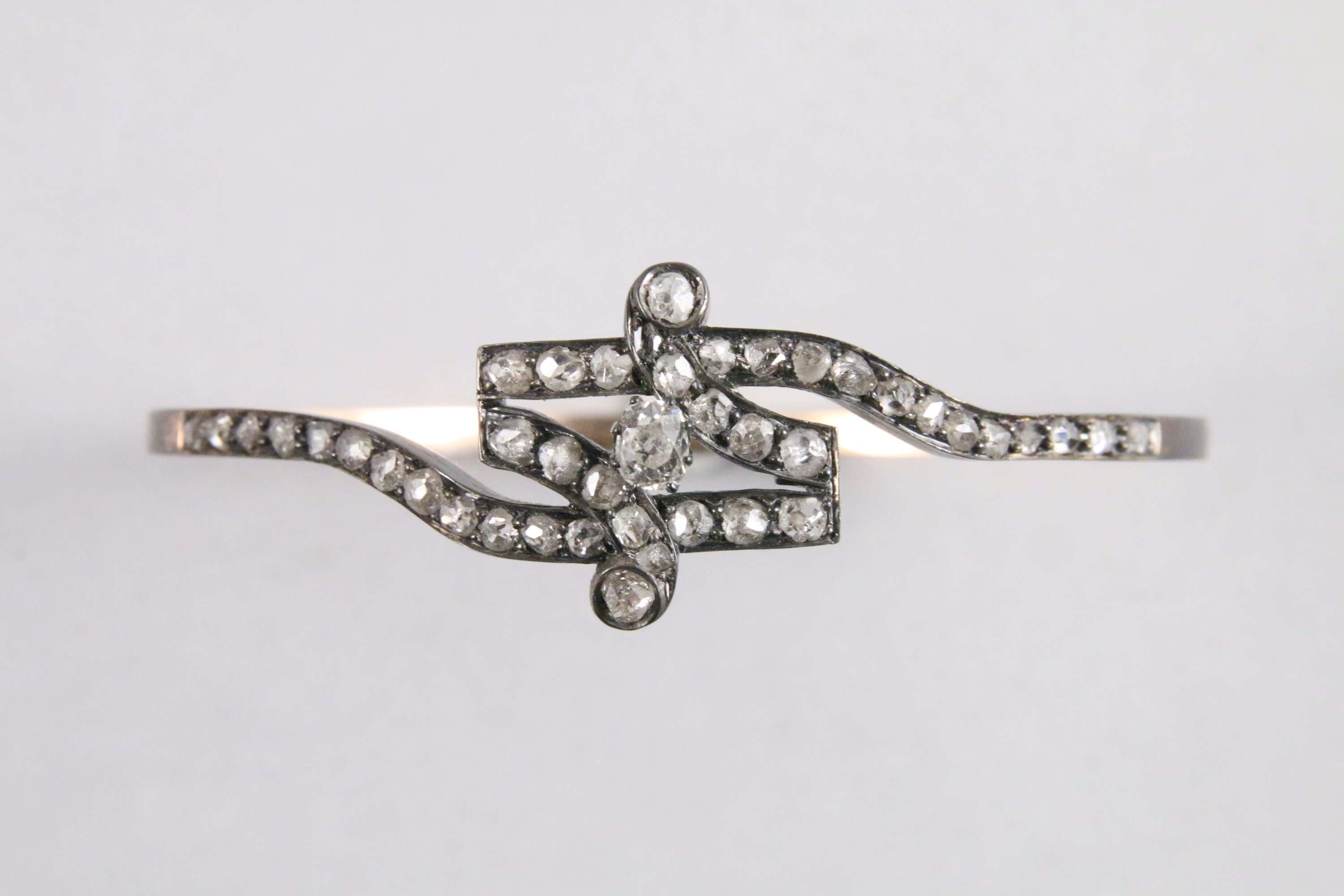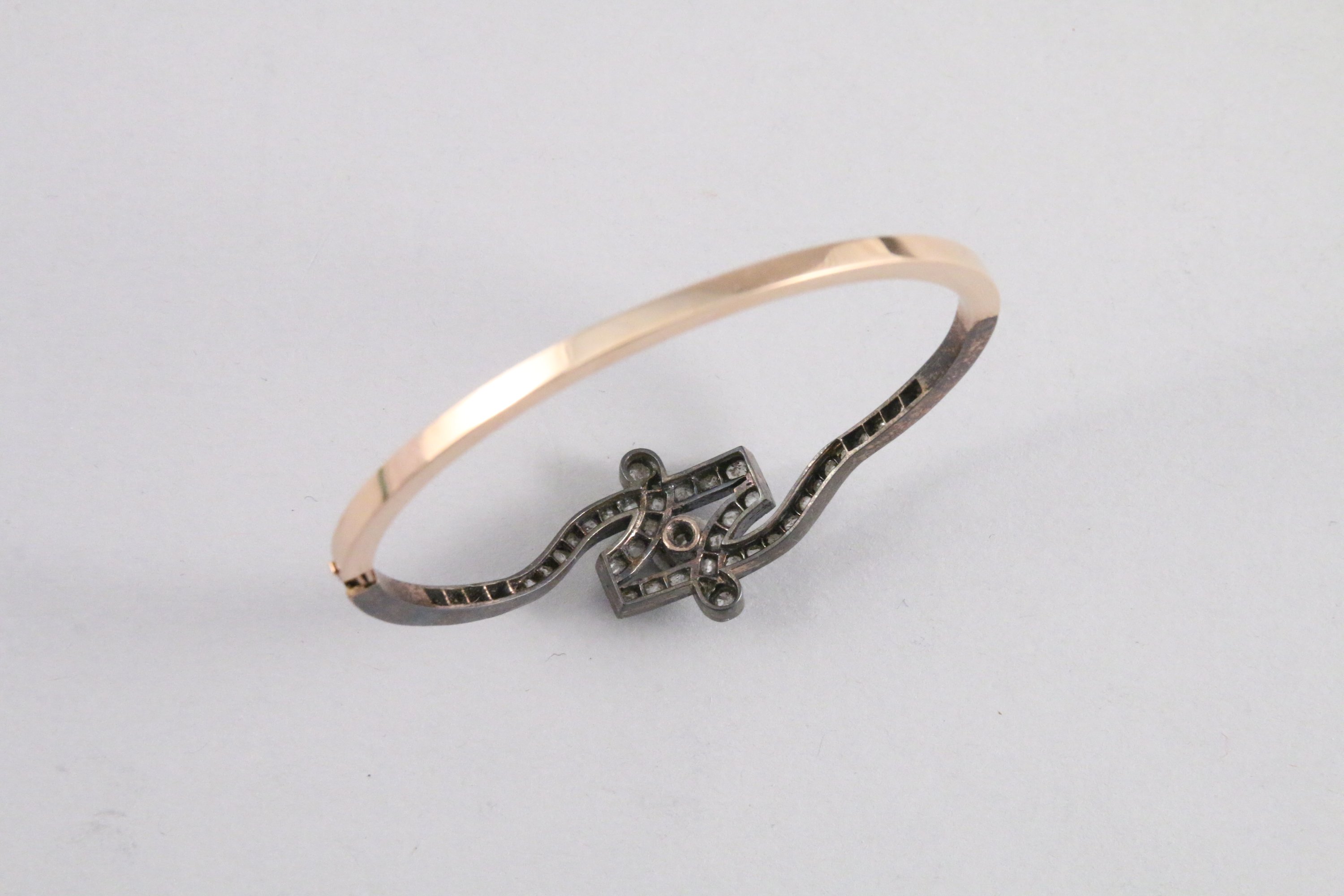 BRACELET en or jaune 750 milièmes, articulé, orné d'un diamant central et 41 autre diamants de taille ancienne en ligne. Le plus important celui du centre d'environ 0,10 ct.