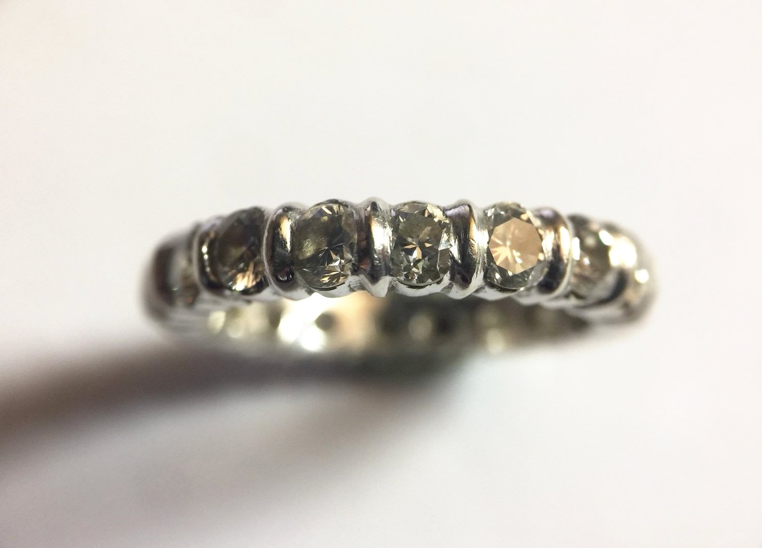 Alliance en or gris 750 millièmes entièrement sertie de dix-huit diamants ronds de taille brillant.