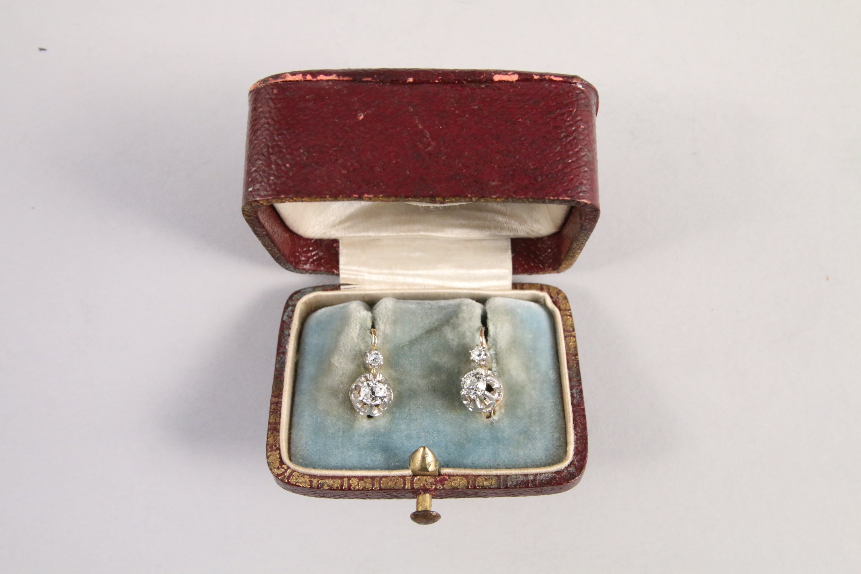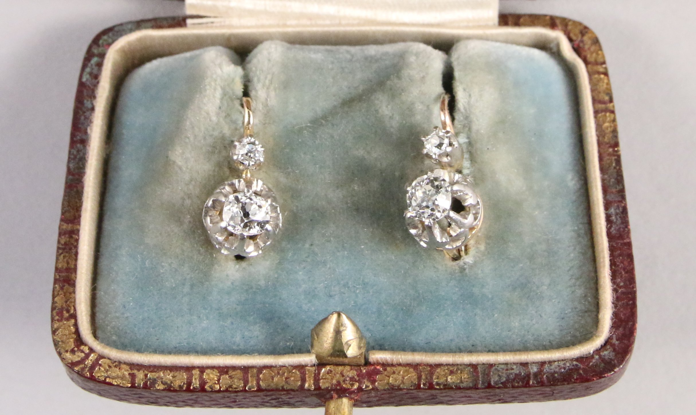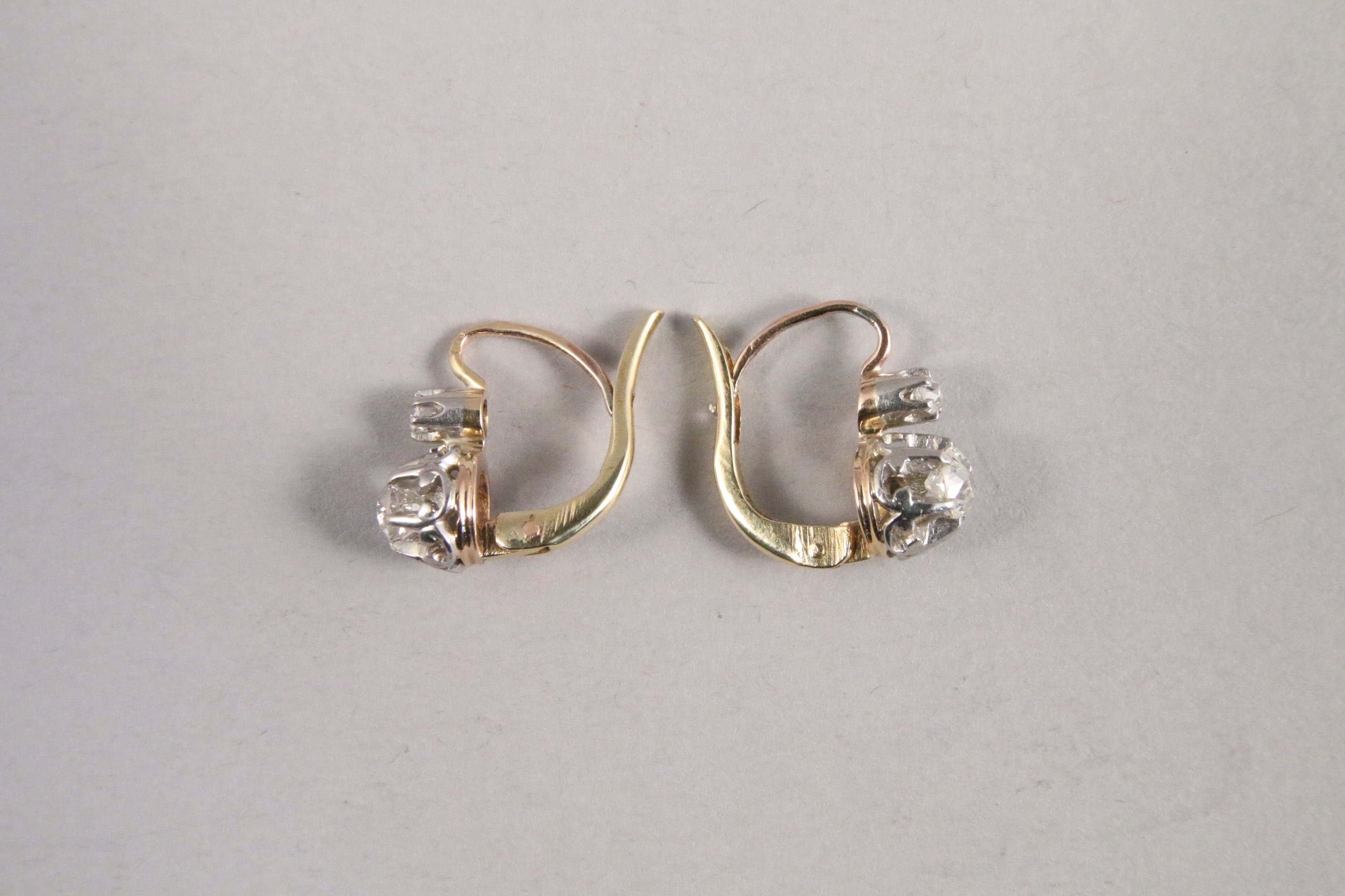 PAIRE de BOUCLE d'OREILLES DORMEUSES en or jaune 750 milièmes ornées de brillants.