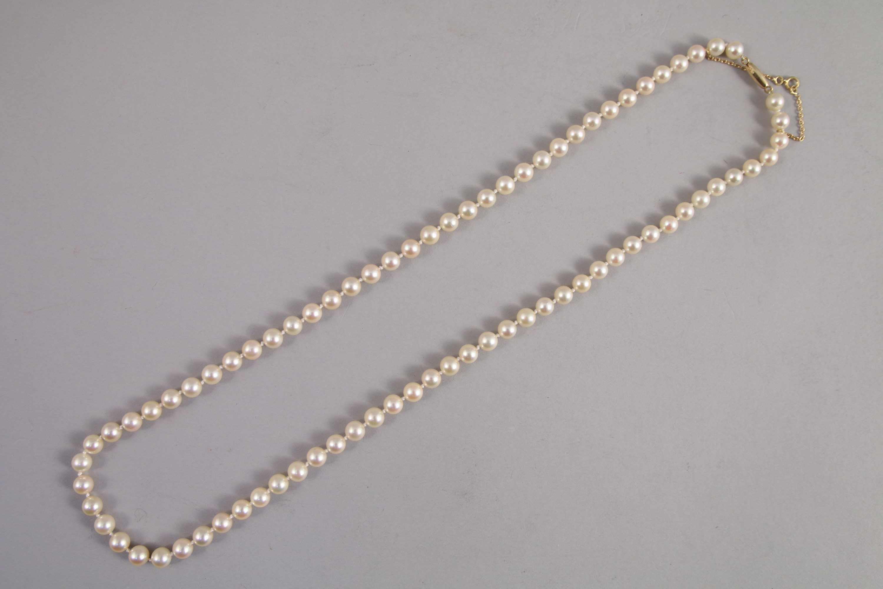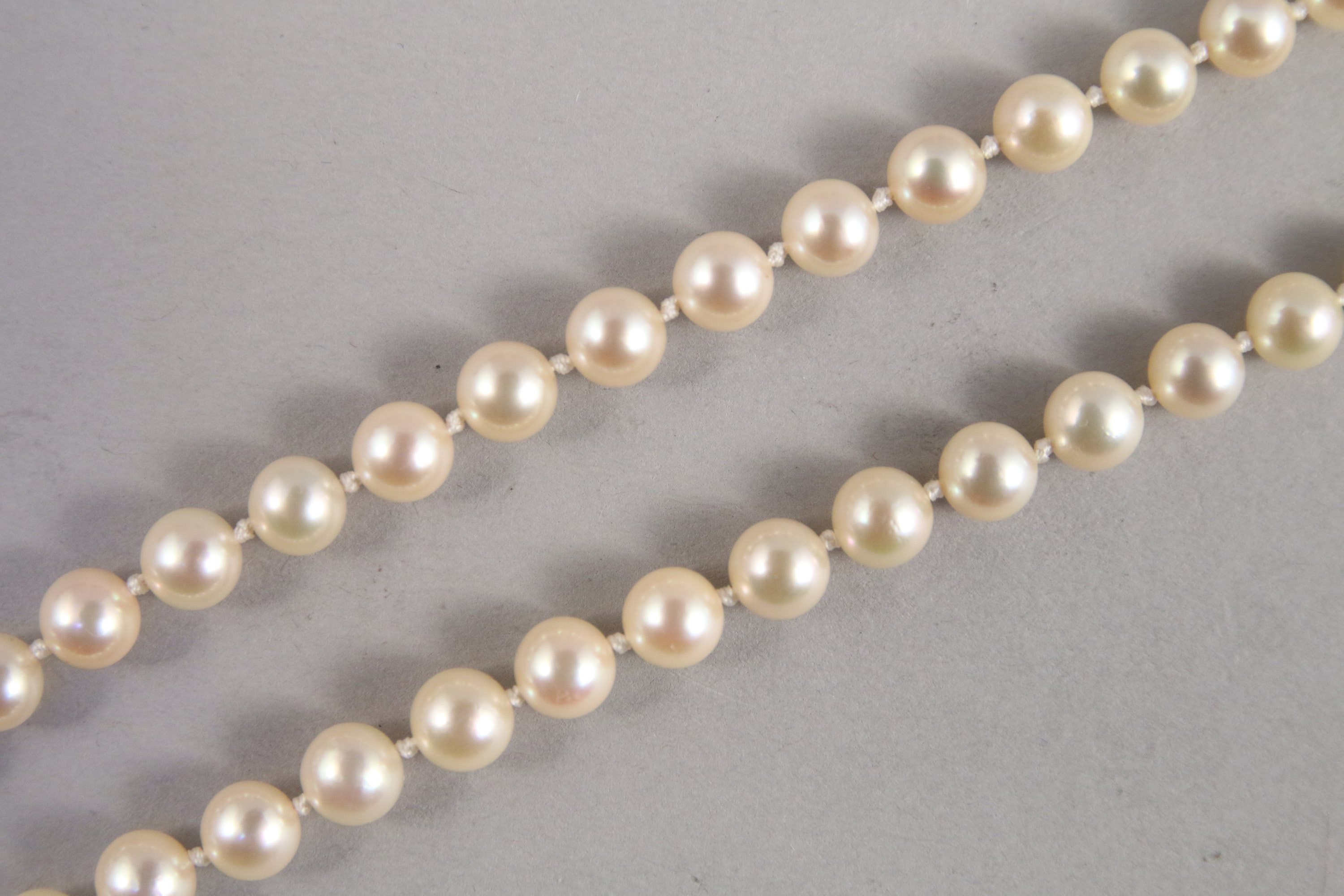 COLLIER SAUTOIR en perles de culture, le fermoir et sa sécurité en or jaune 750 millièmes.