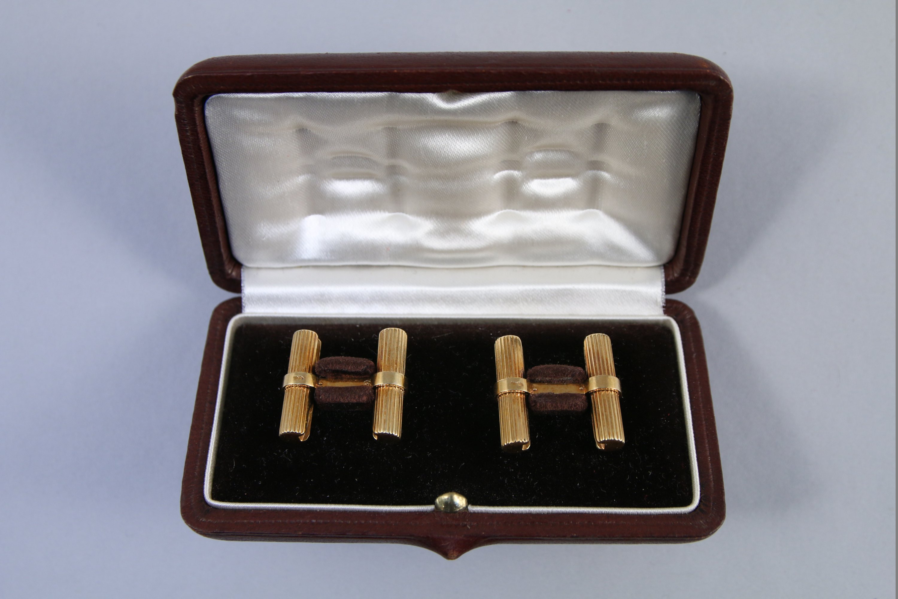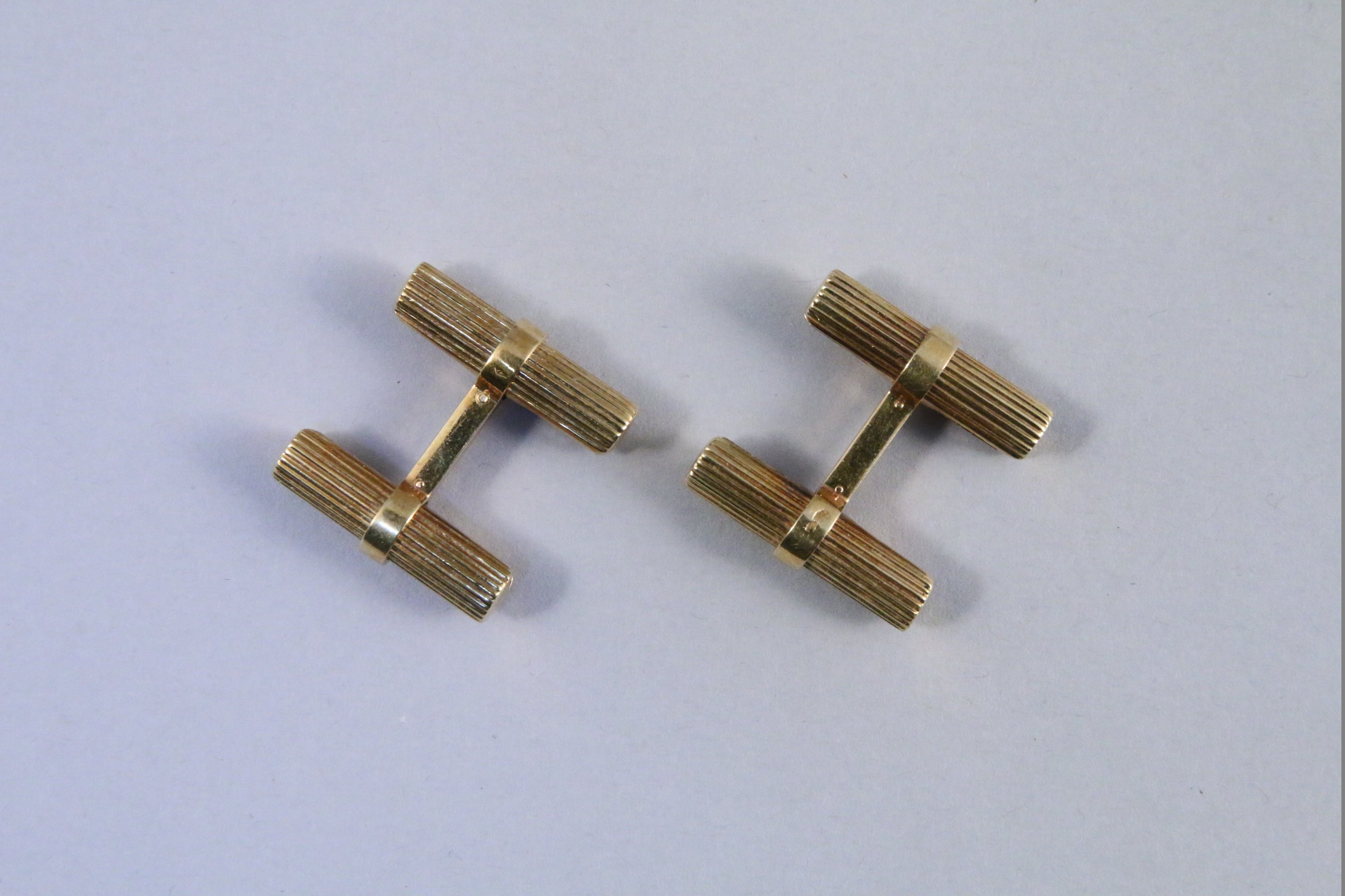 Paire de BOUTONS de MANCHETTES en or 750 millièmes composés chacune de deux cylindres cannelés réunis en H par un système détachable.
