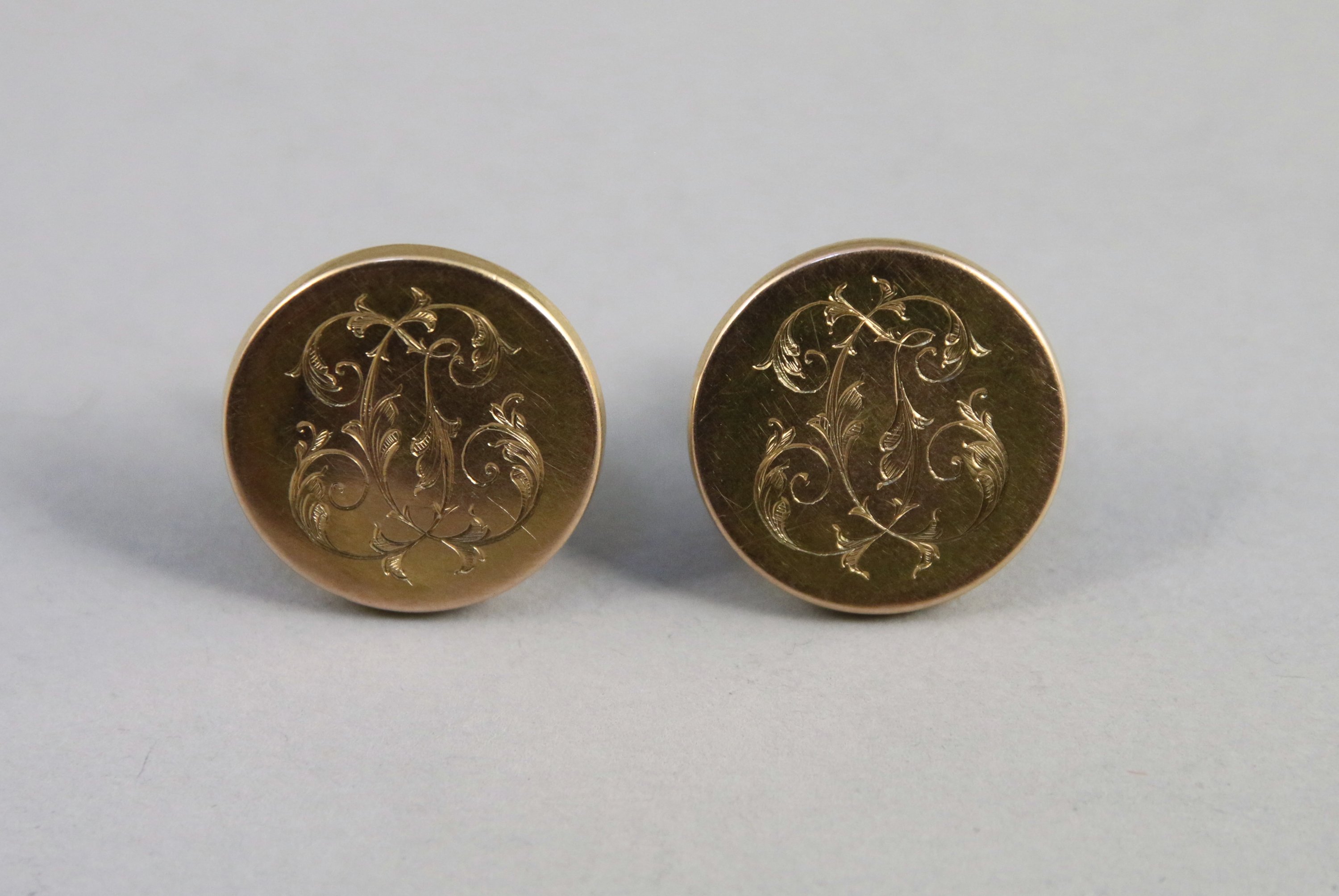 PAIRE de BOUTONS de MANCHETTES monogrammés "IC" en or jaune.