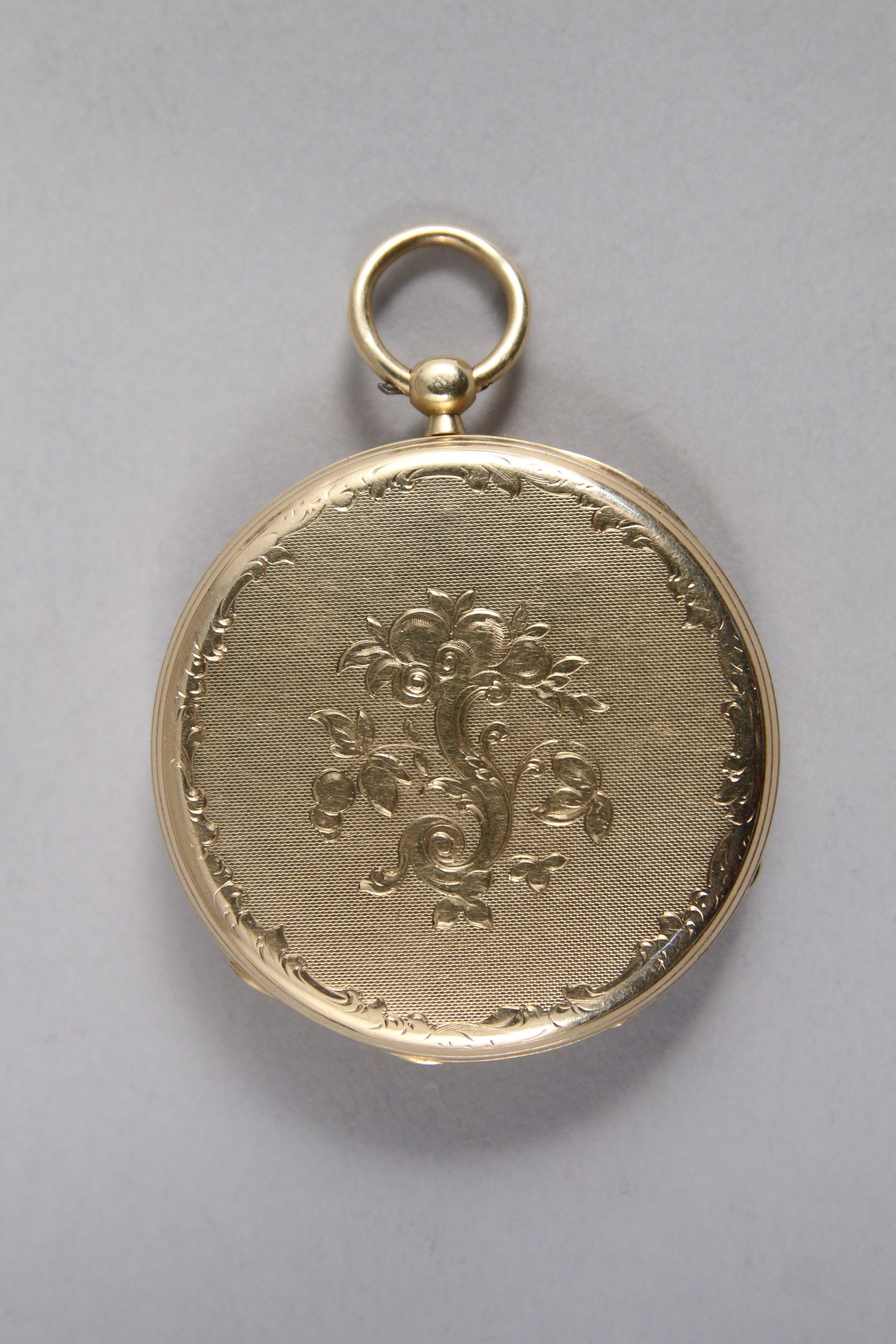 MONTRE de POCHE à rare REMONTOIR interne, en or jaune.