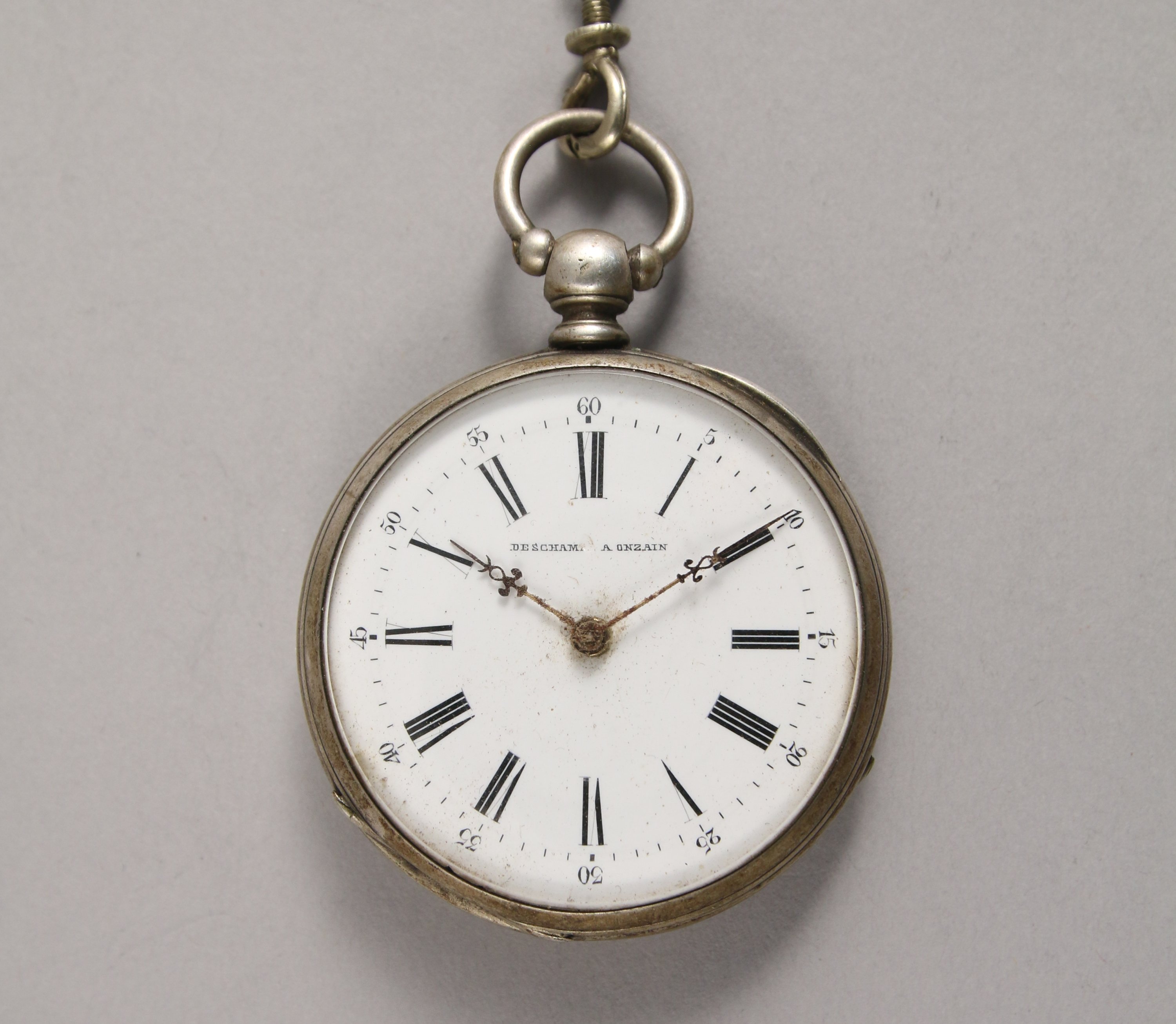 MONTRE de GOUSSET en argent mouvement à clef, signé Deschamps, à Onzain .