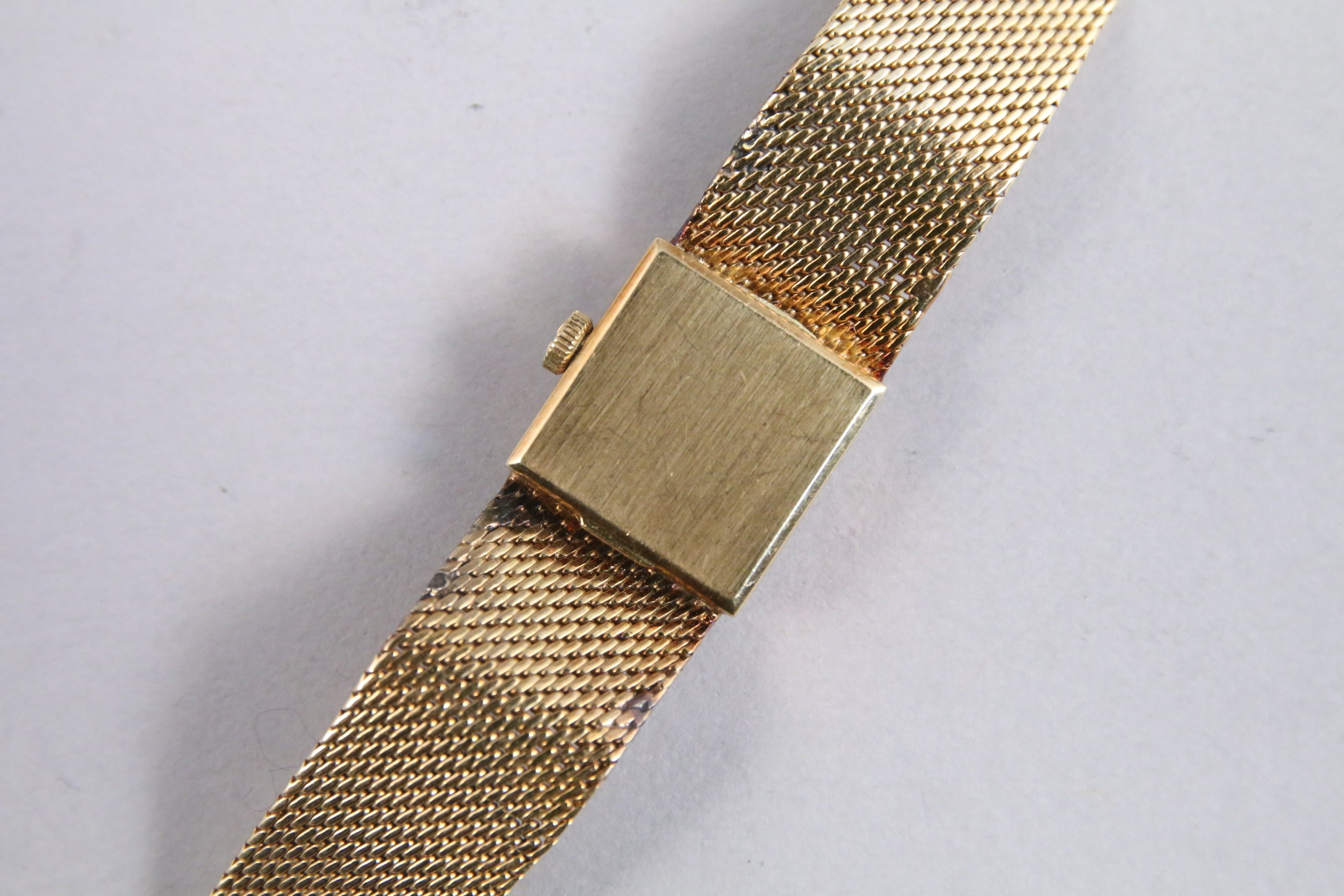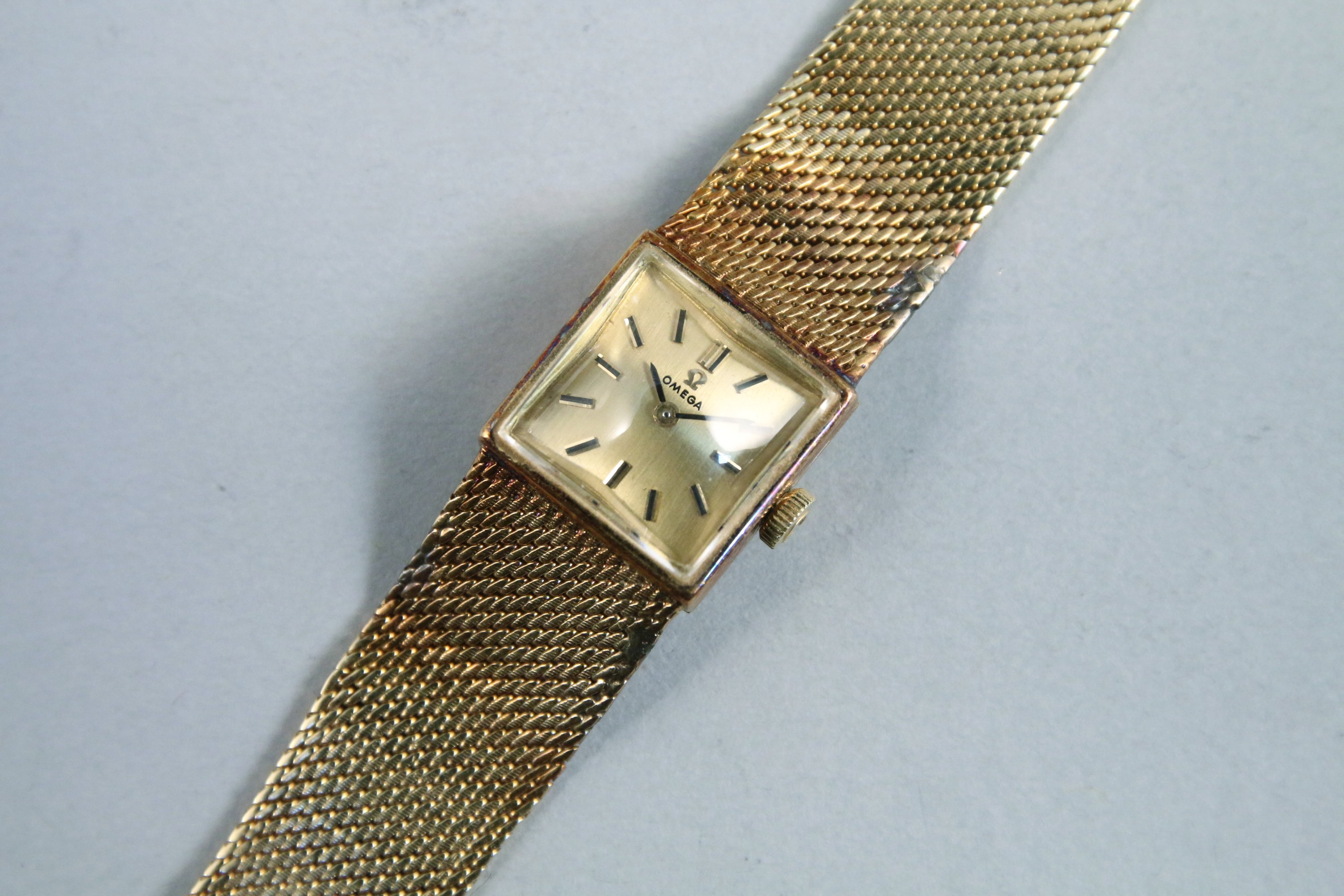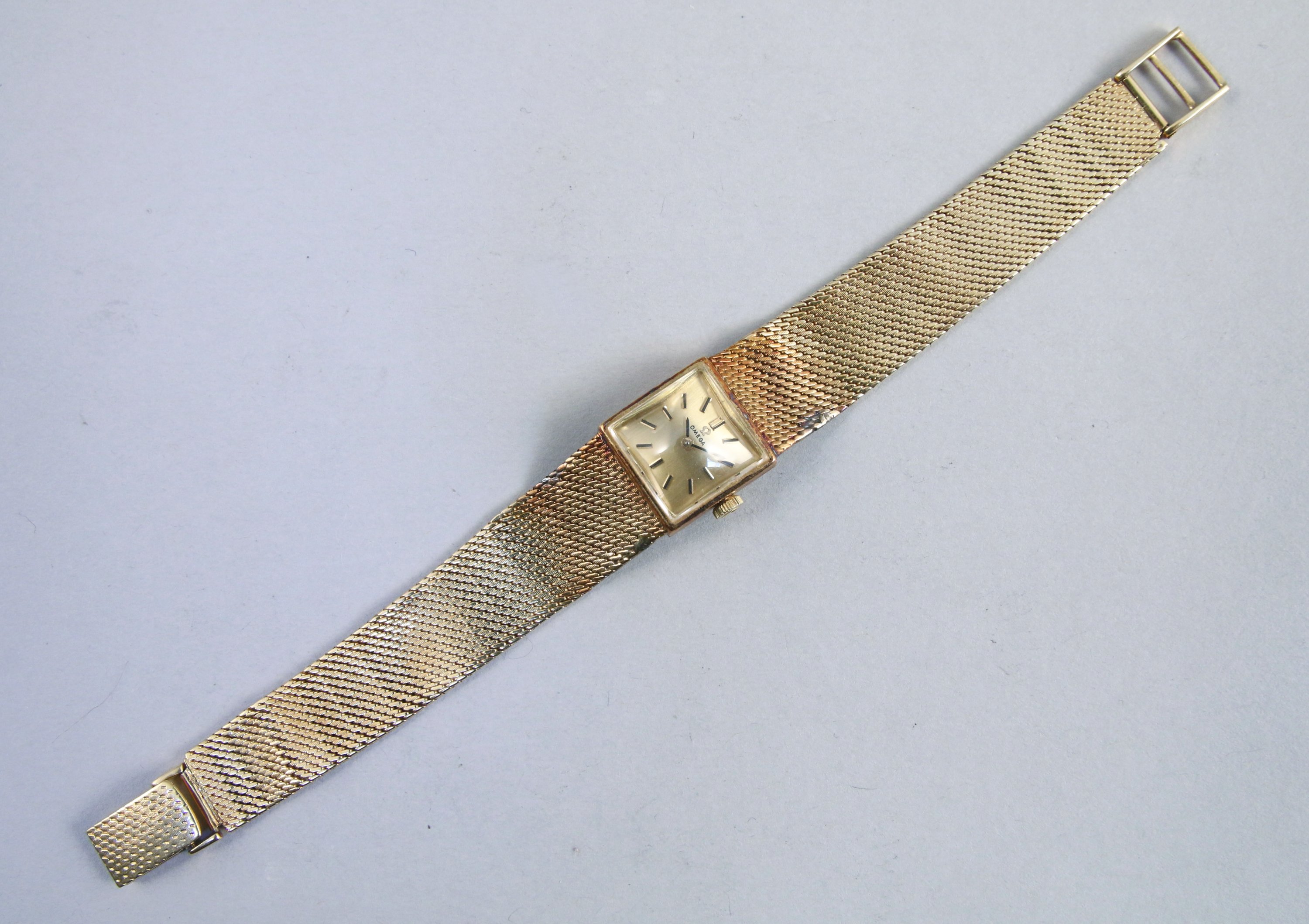OMEGA. MONTRE BRACELET de DAME en or jaune 750 milièmes. Le cadran rectangulaire gradué pour les heures. Remontoir à trois heures. Le bracelet souple en or jaune 750 milièmes (ressoudé).
