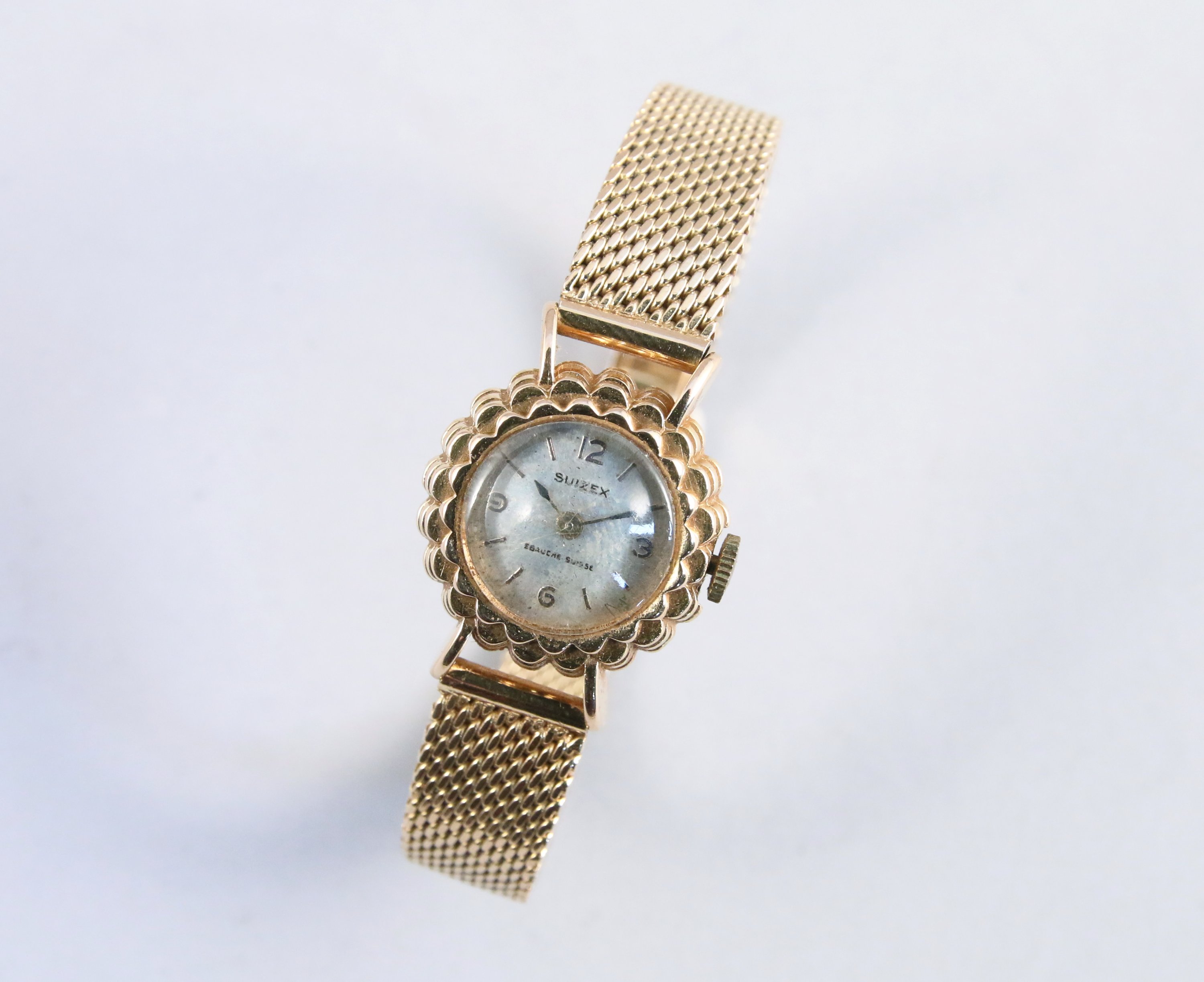SUIZEX. MONTRE BRACELET de DAME en or jaune 750 milièmes. Le cadran de forme circulaire, gradué pour les heures. Remontoir à trois heures. Le bracelet souple en or jaune 750 milièmes.