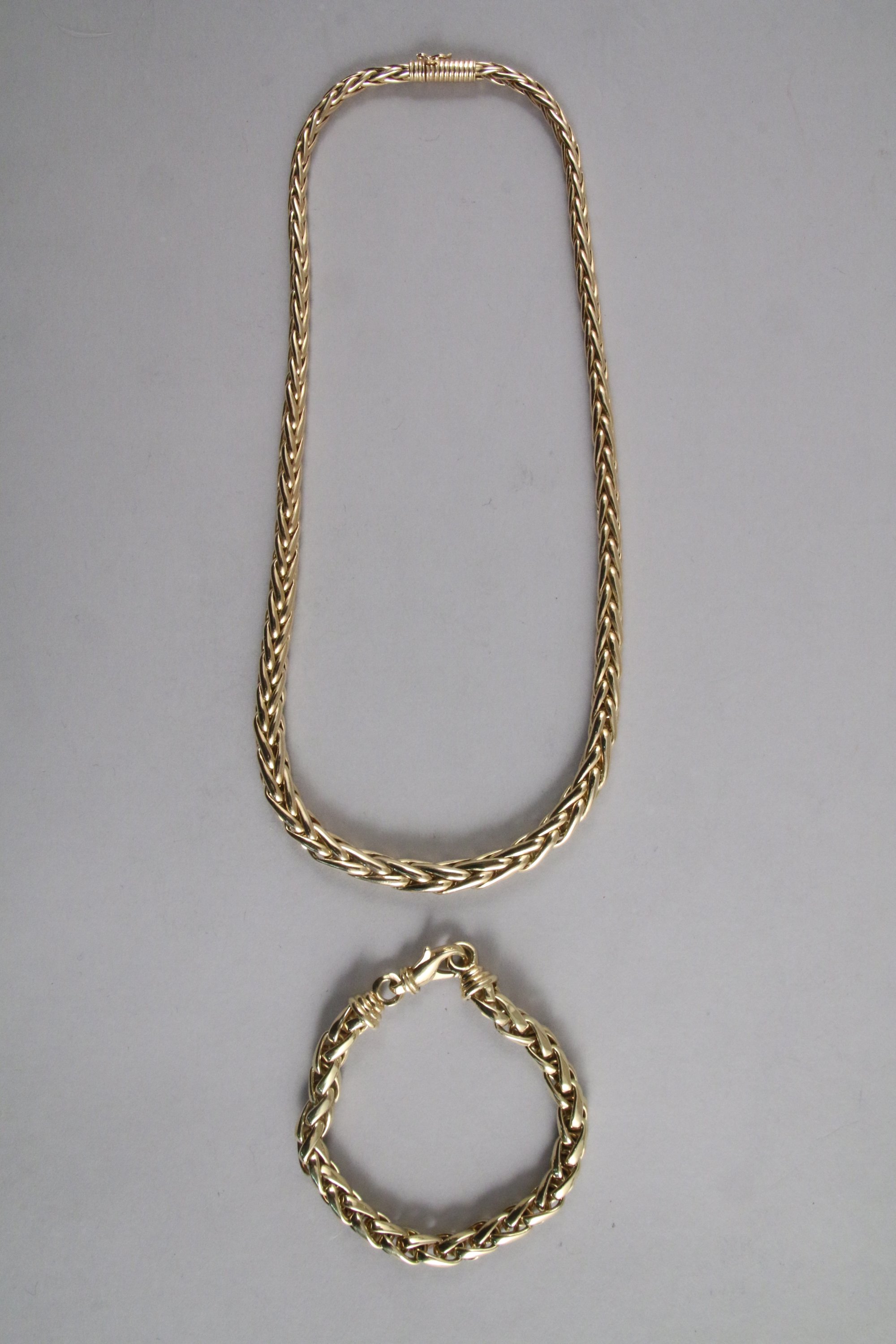 - COLLIER à maille articulée, en or jaune 750 millièmes. Long. 41 cm. Poids 22,9 g.