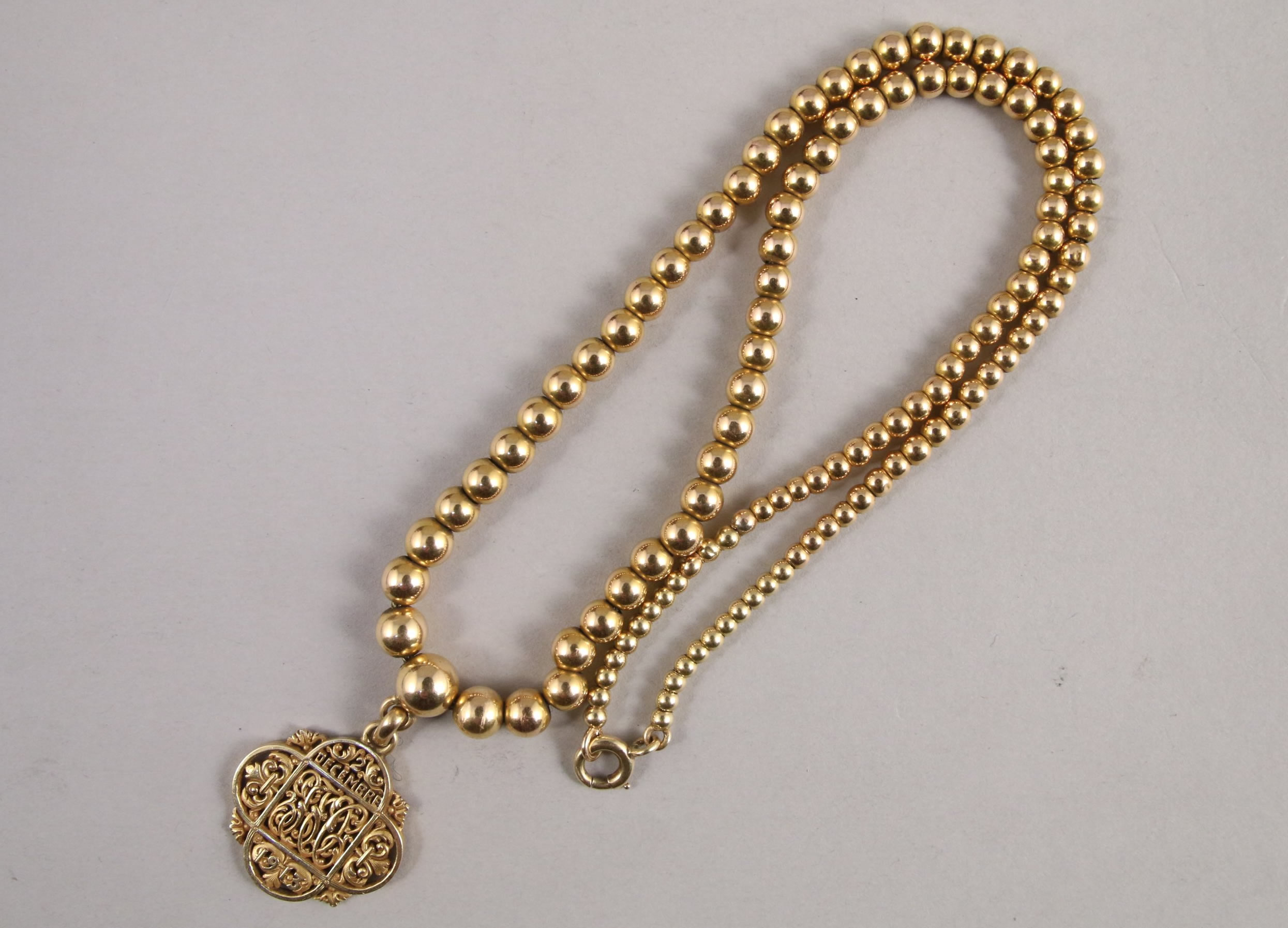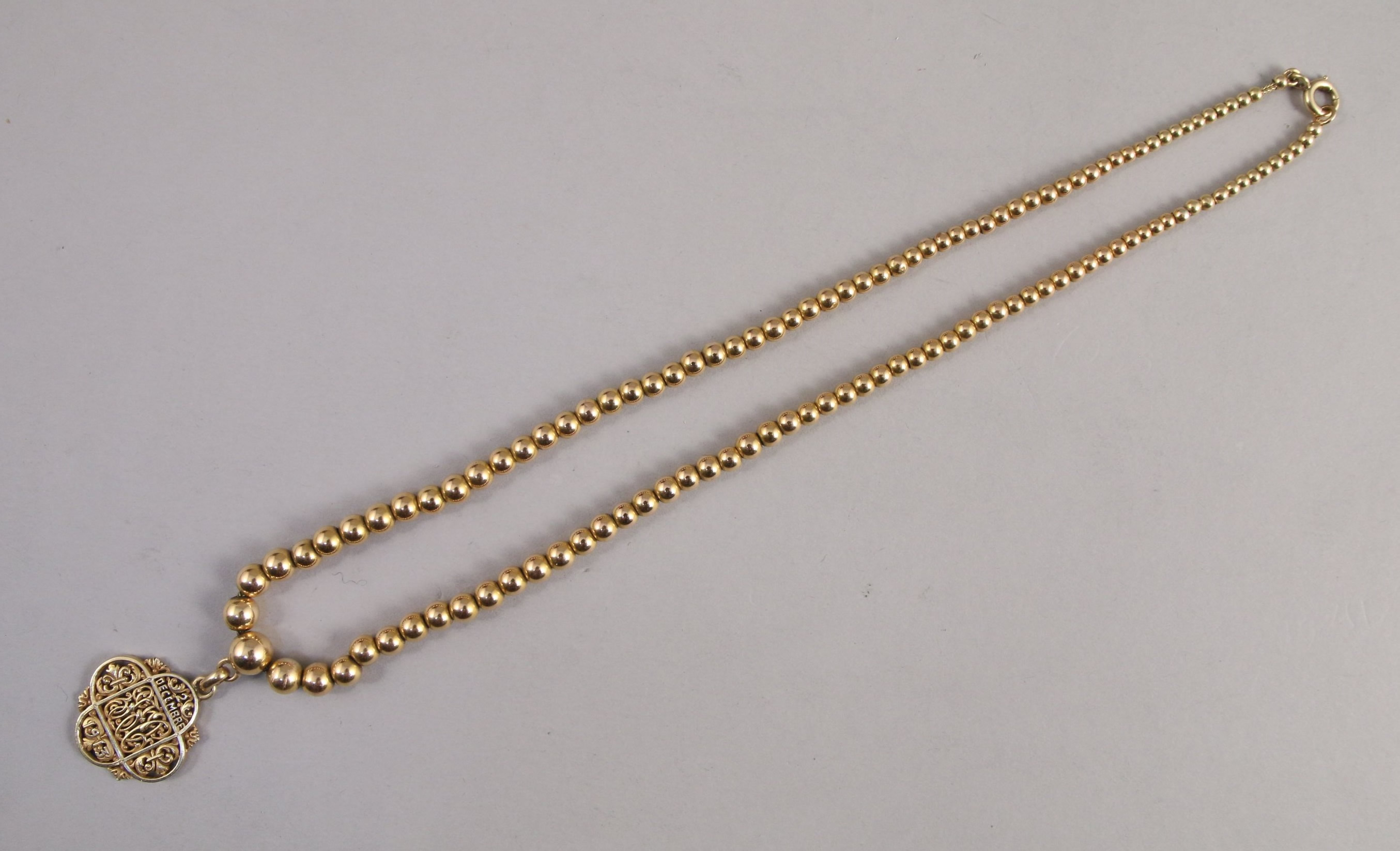 Datée 12 décembre 1913. Avec sa chaîne constituée de perles en or sur une tige articulée en métal (non contrôlable). Poinçon illisible.