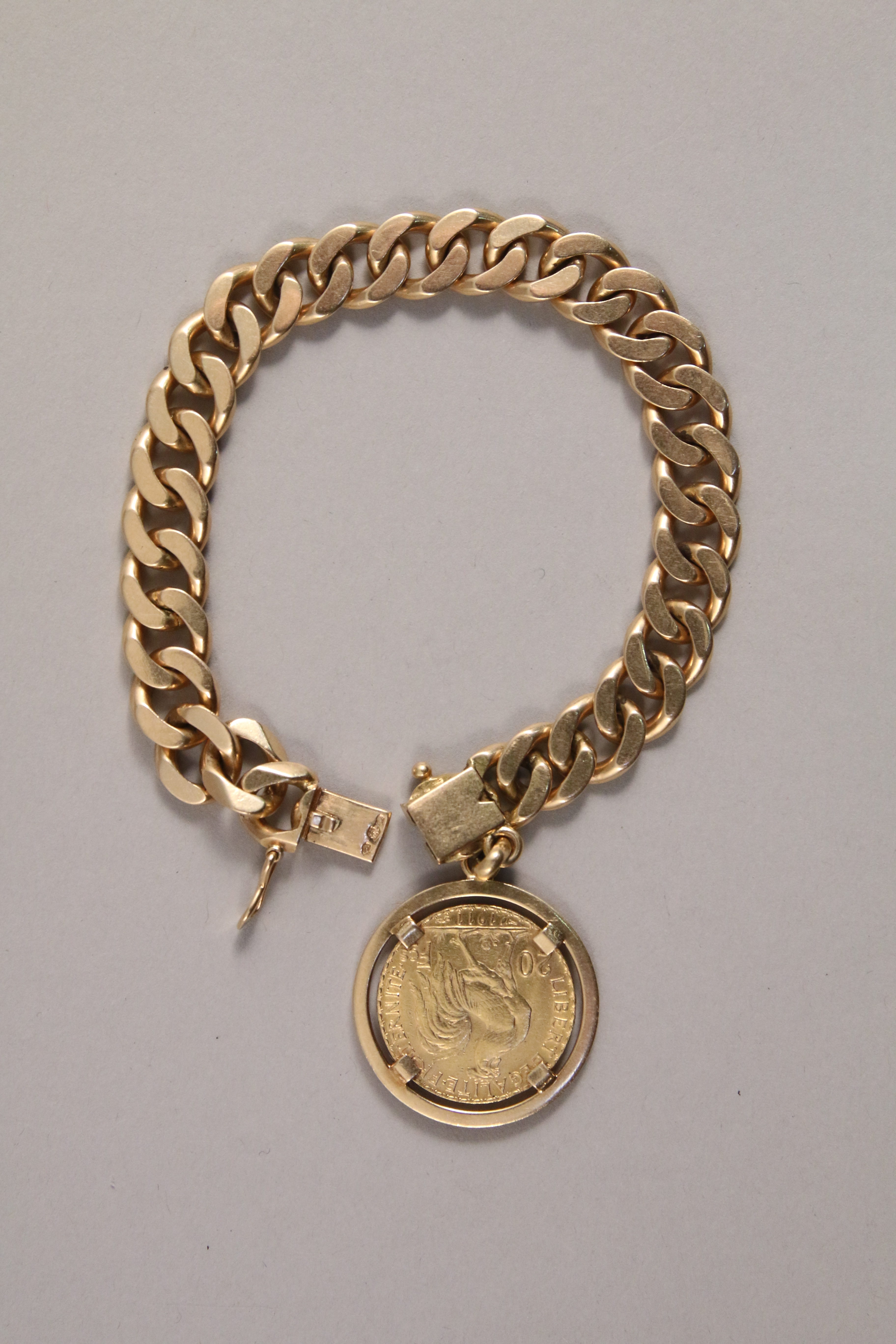 GOURMETTE maille chaine en or avec pièce de 20 F. or au coq, 1911.