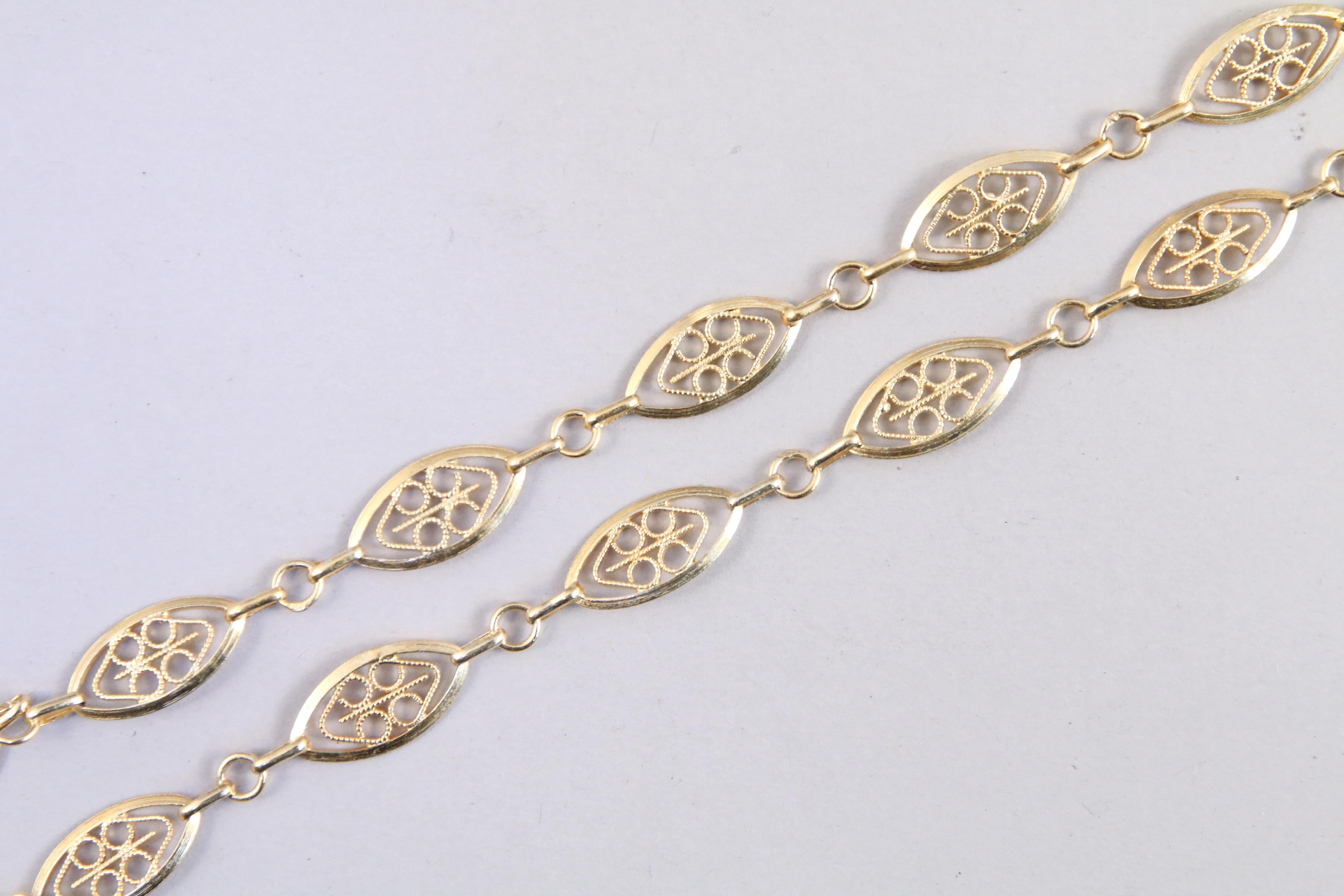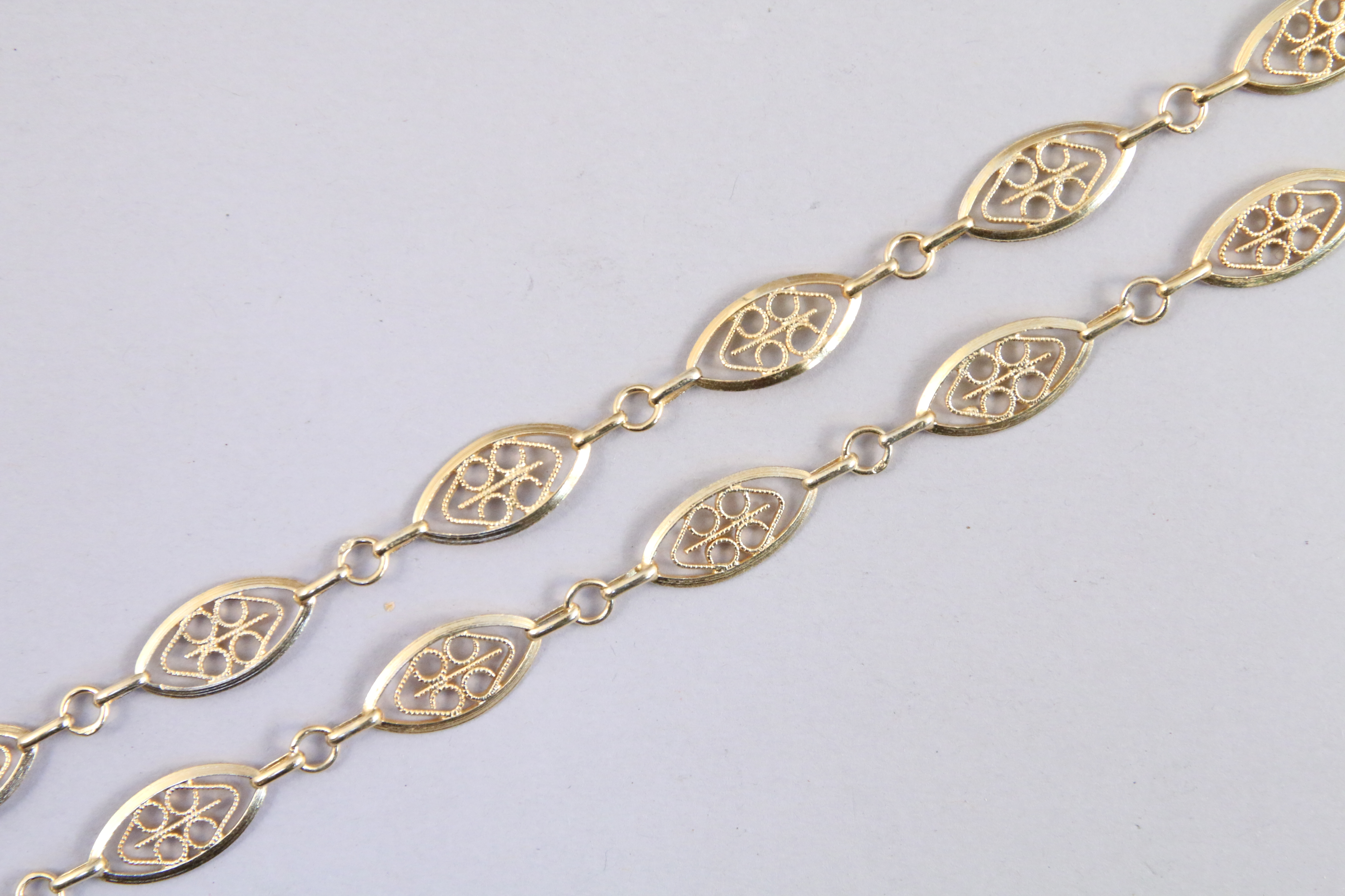 SAUTOIR en jaune 750 milièmes à mailles grain de café filigranées.