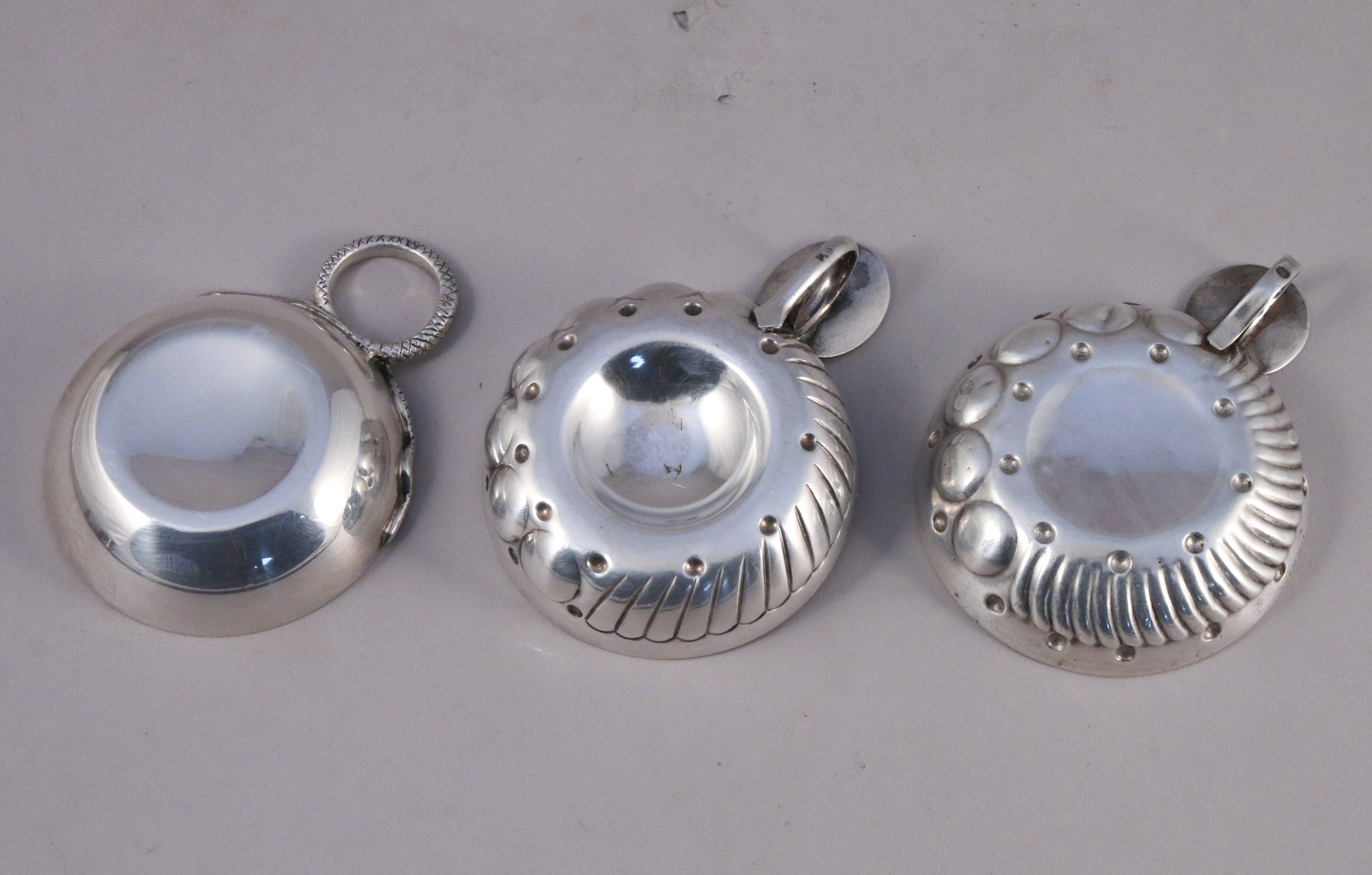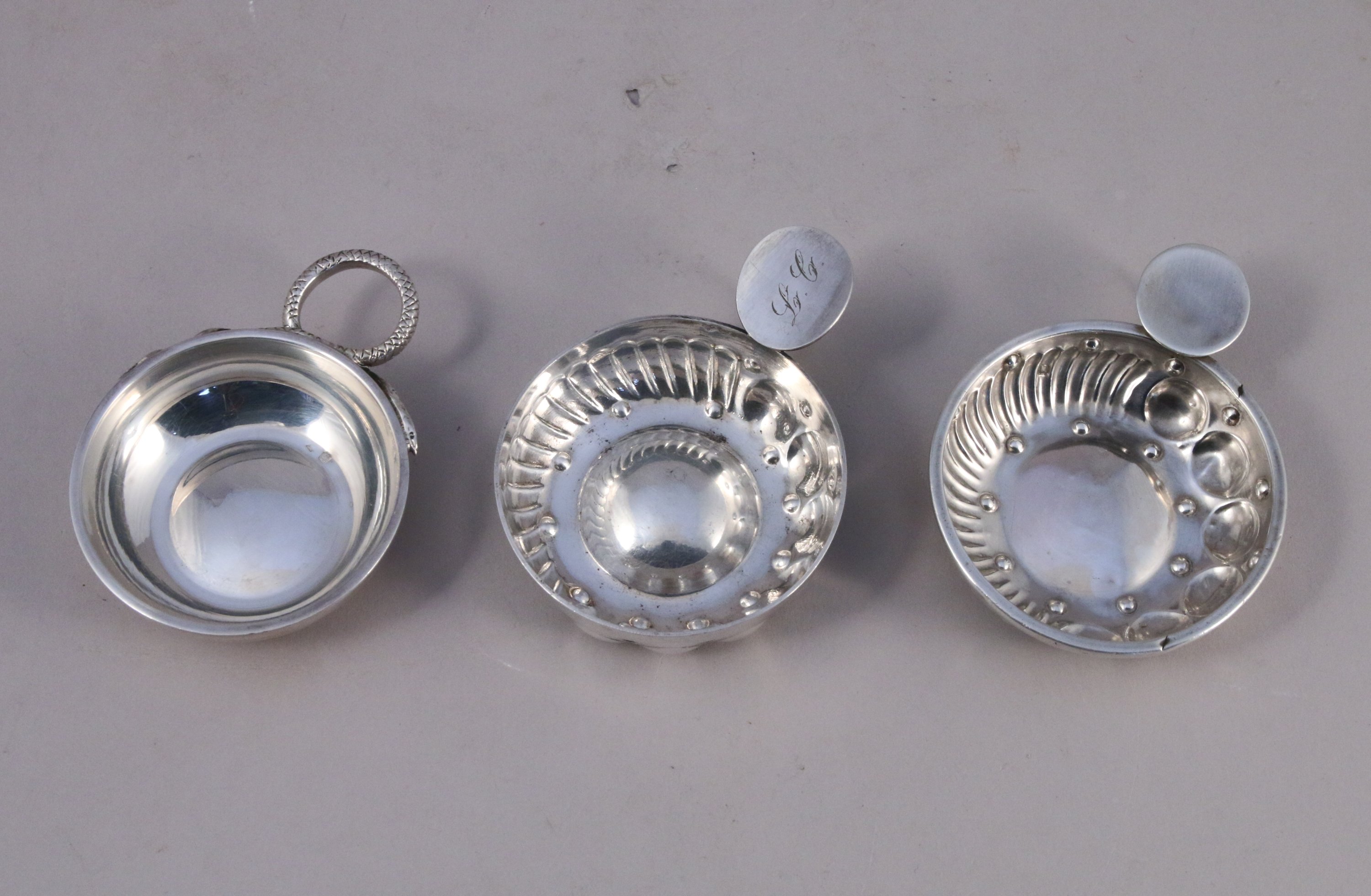 -TASTEVIN à décor de godrons, perles et cupules marqué "F TIN DREUX". Appui-pouce de forme ovale agrémenté d'une prise en anneau monogrammé. Poinçon Minerve XIXe. Diam. 7 cm. Poids 51 g.