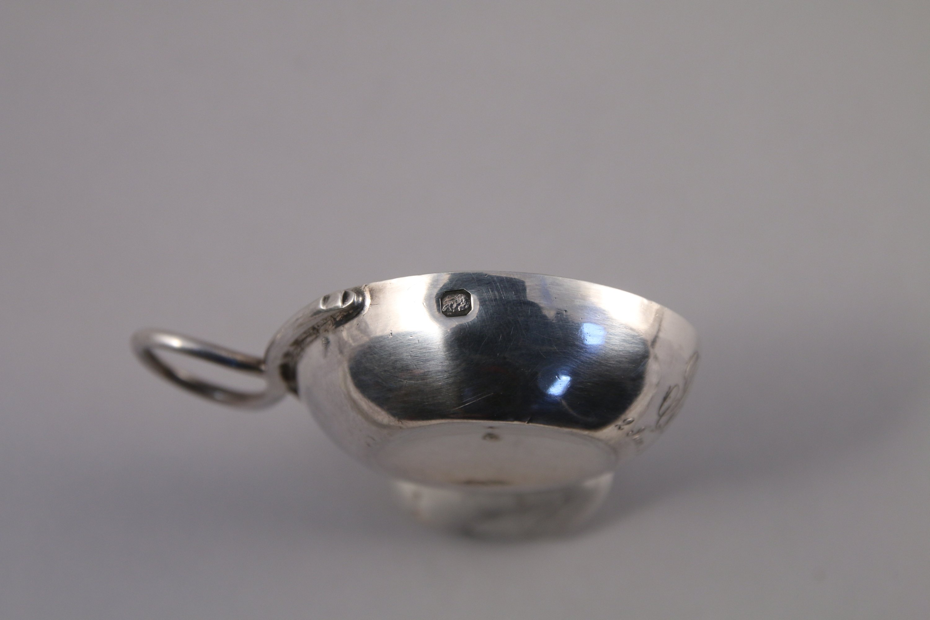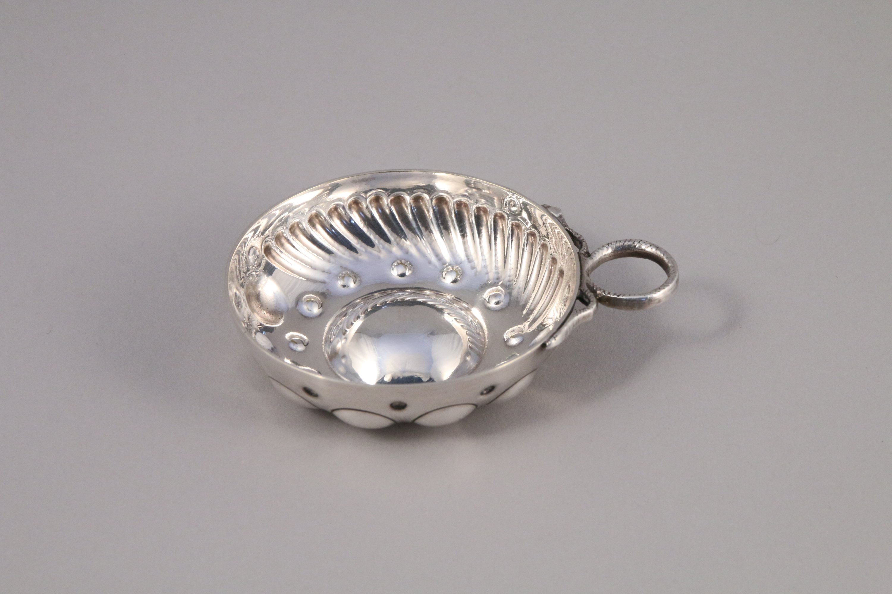 -TASTE-VIN. Le fond à godrons et perles. Anse sepentiforme. Poinçon Minerve XXe. Diam.6 cm. Poids30 g.