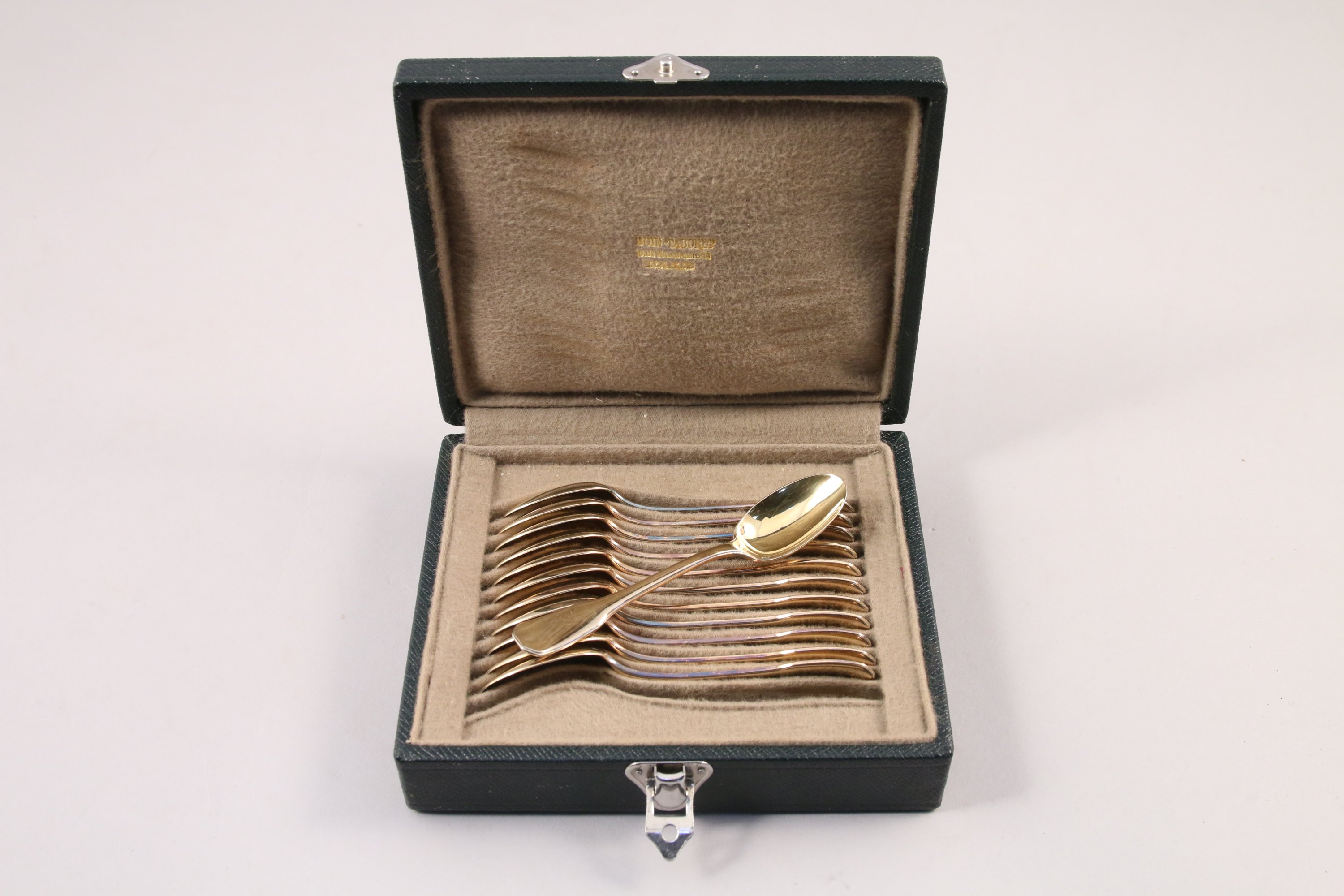 BOIN-TABURET. SUITE de DOUZE PETITES CUILLÈRES en vermeil, modèle filet-contour.