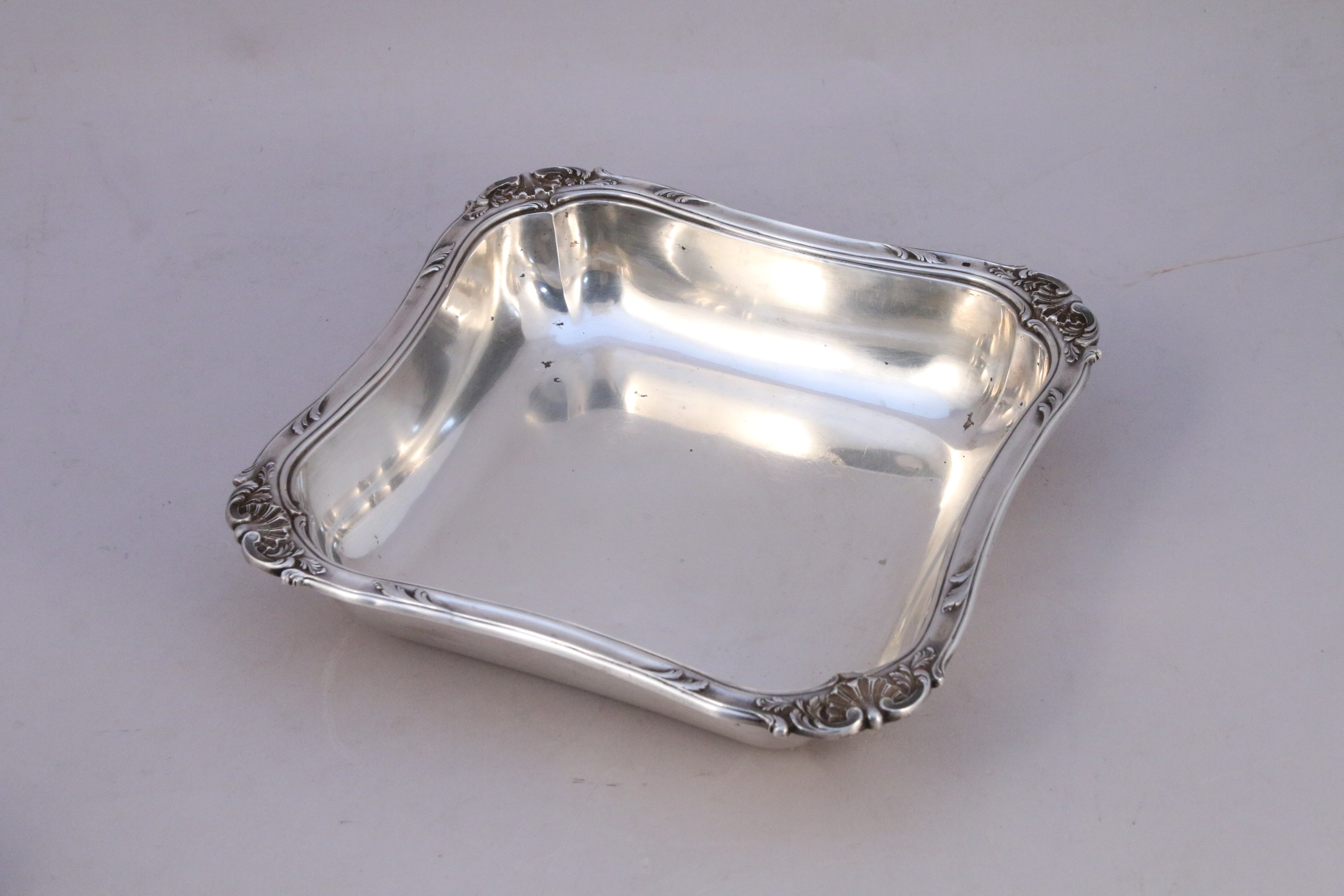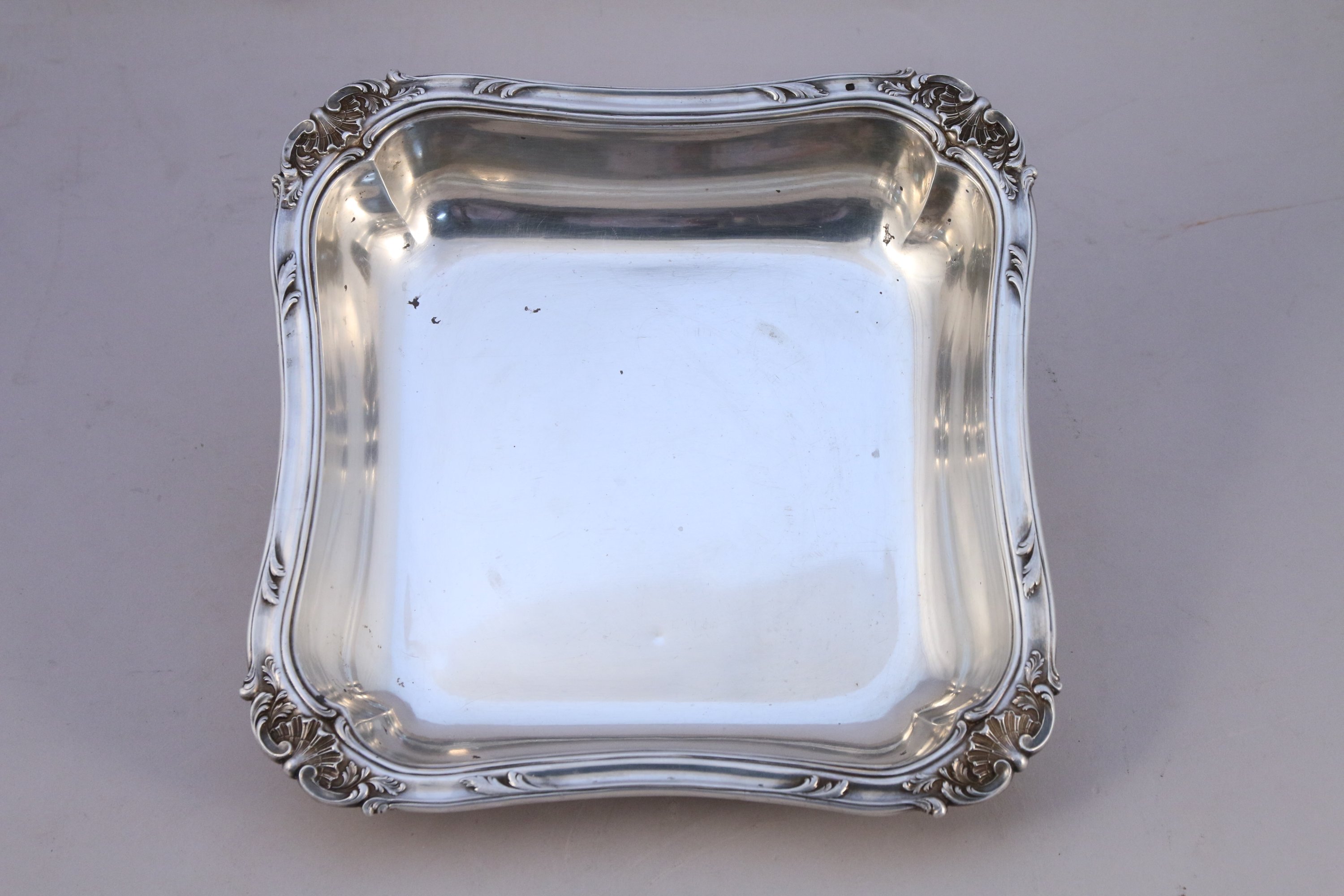 PUIFORCAT. JATTE en argent de forme carrée, la bordure à décor de coquilles, feuilles d'acanthes et filets.
