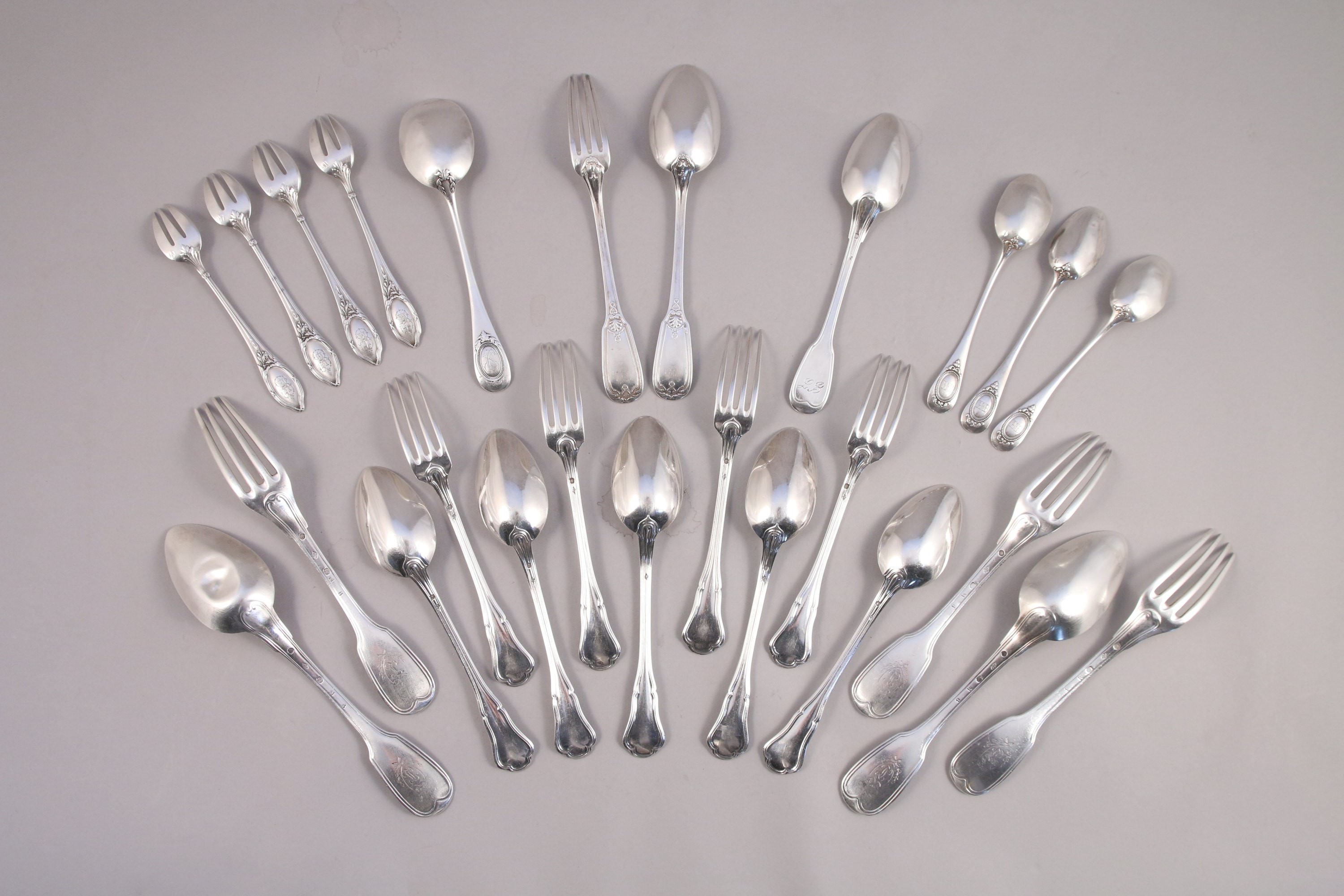 RÉUNION de COUVERTS en argent de divers modèles composée de vingt pièces :