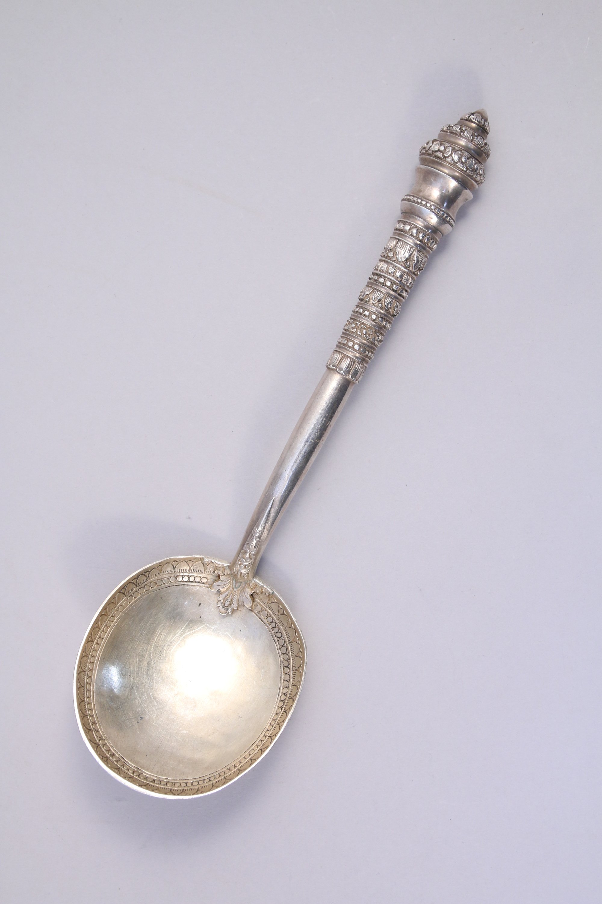 INDOCHINE. LOUCHE en argent, à décor de fleurs et motifs stylisés en registre.
