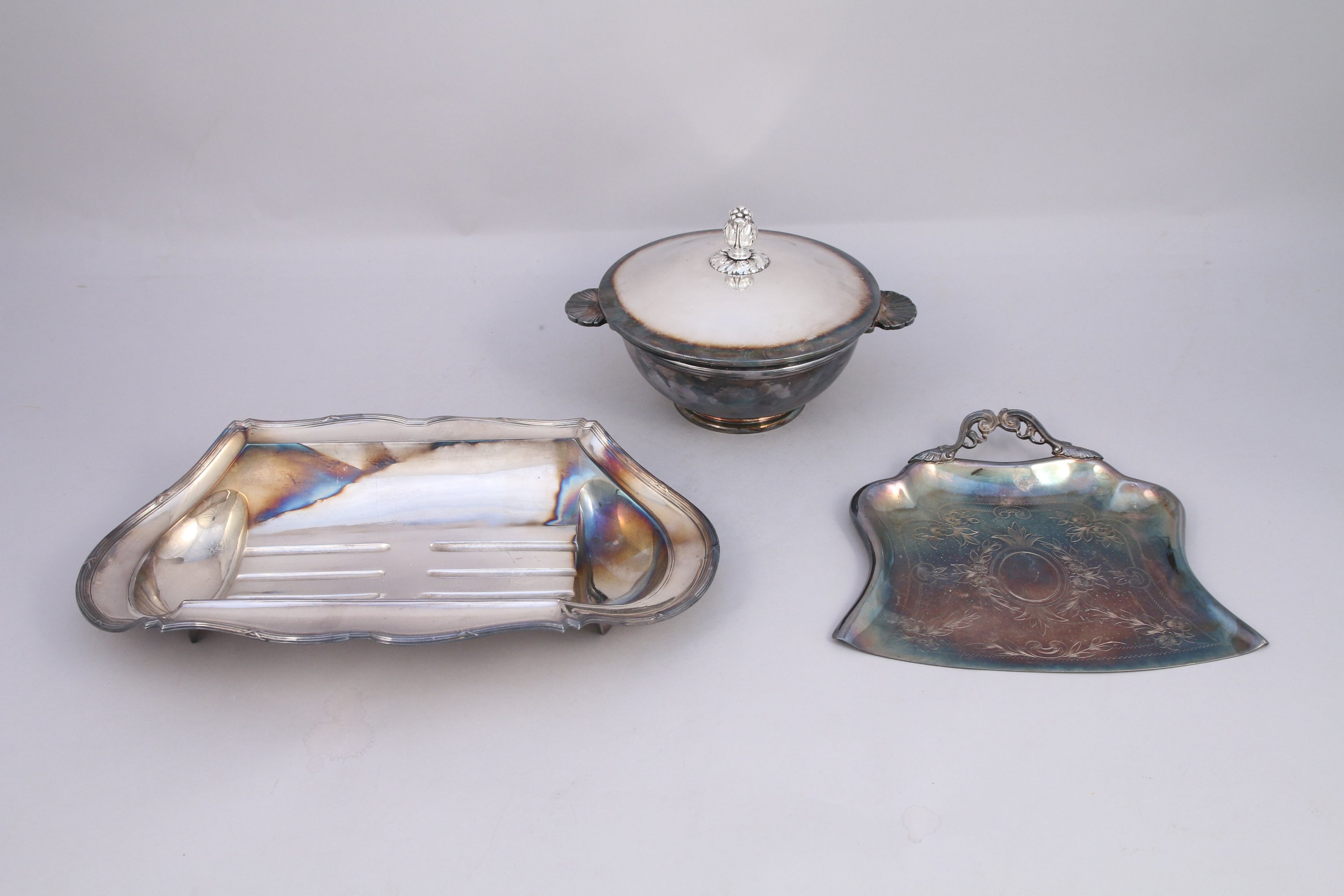 JOINT : Dix cuillers en métal argenté, Un plat à asperges, Un légumier, Un ramasse miettes.