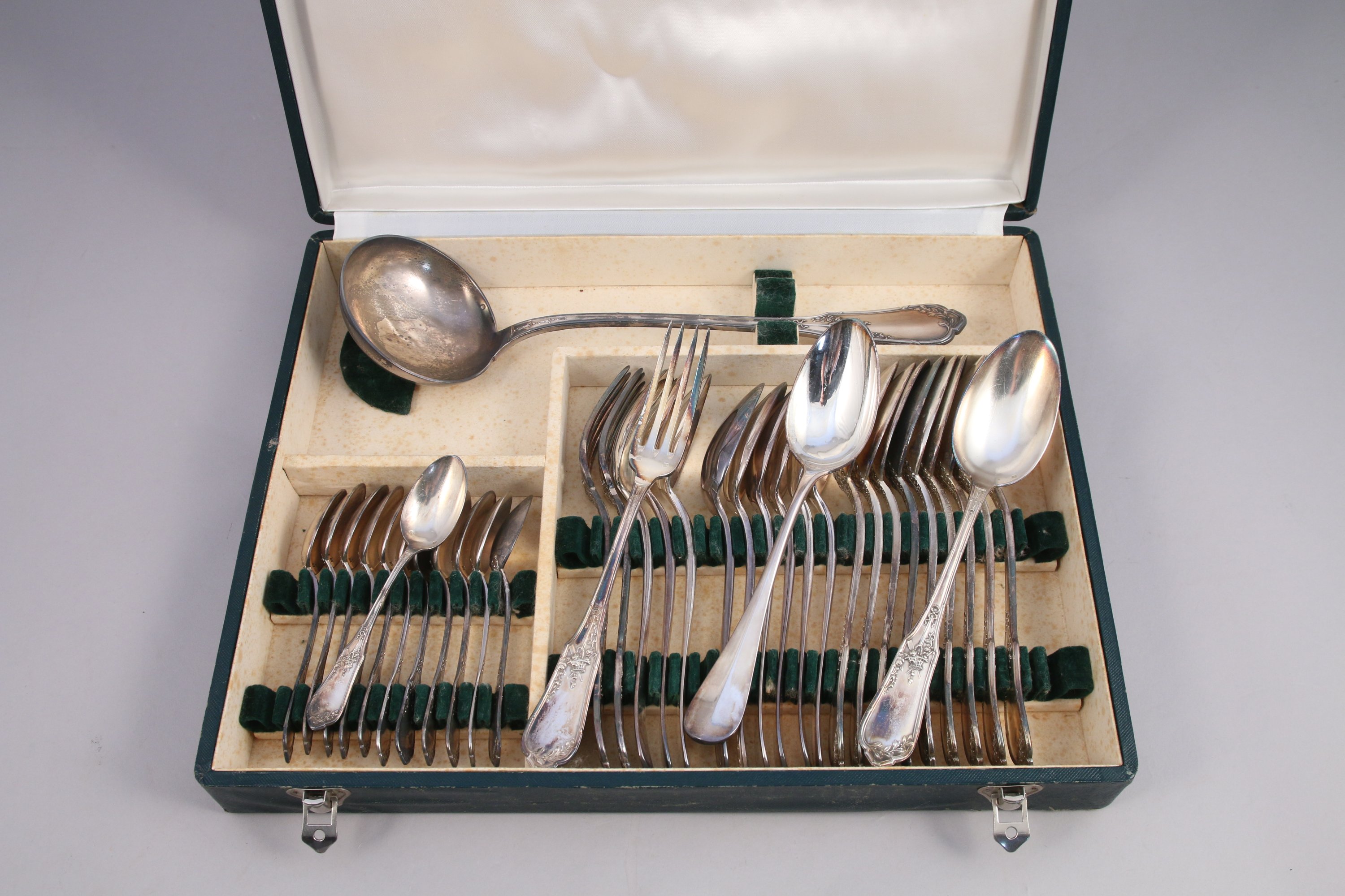 Partie de MENAGÈRE en métal argenté, modèle au panier fleuri comprenant :