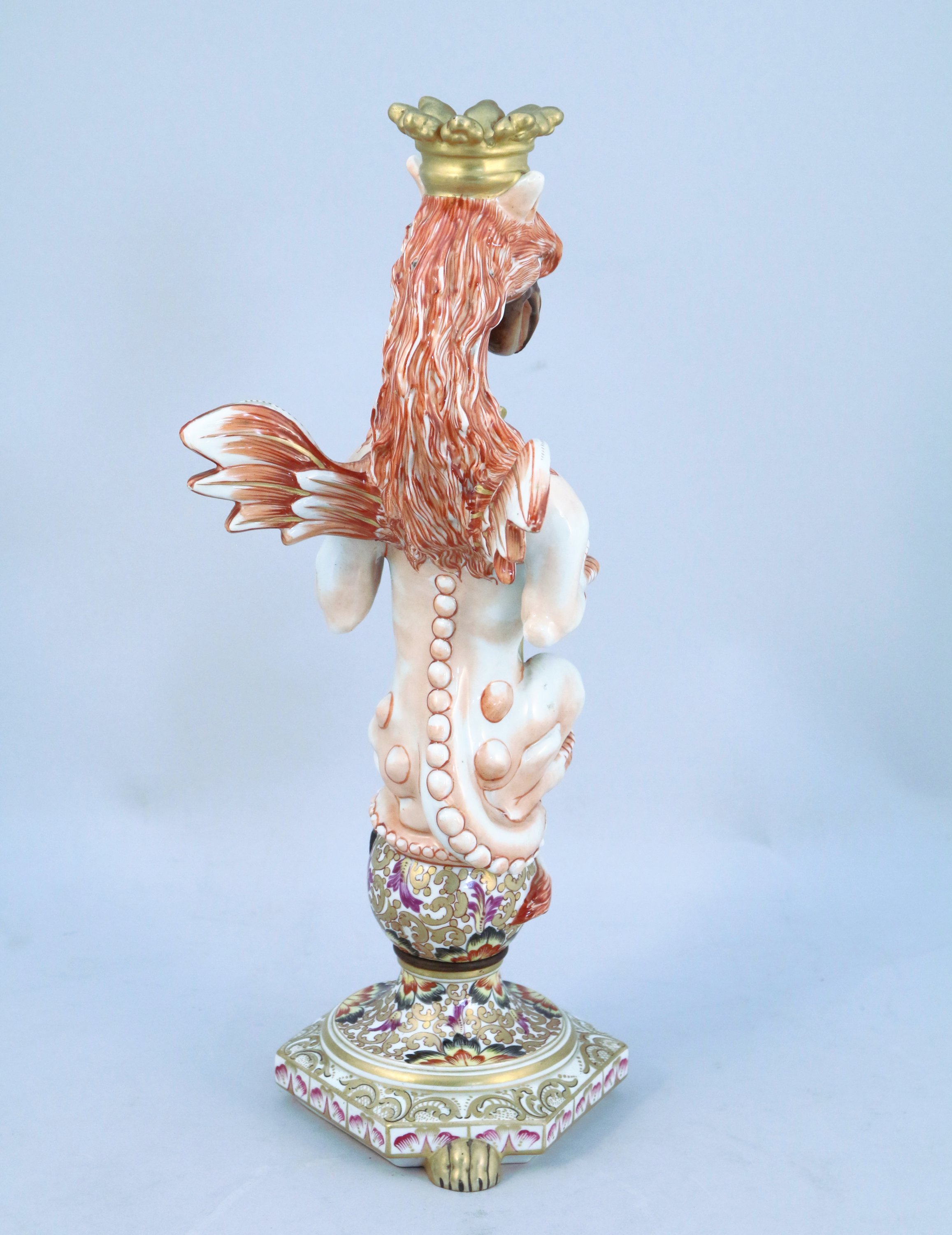 en porcelaine figurant une sphinge couronnée tenant dans...