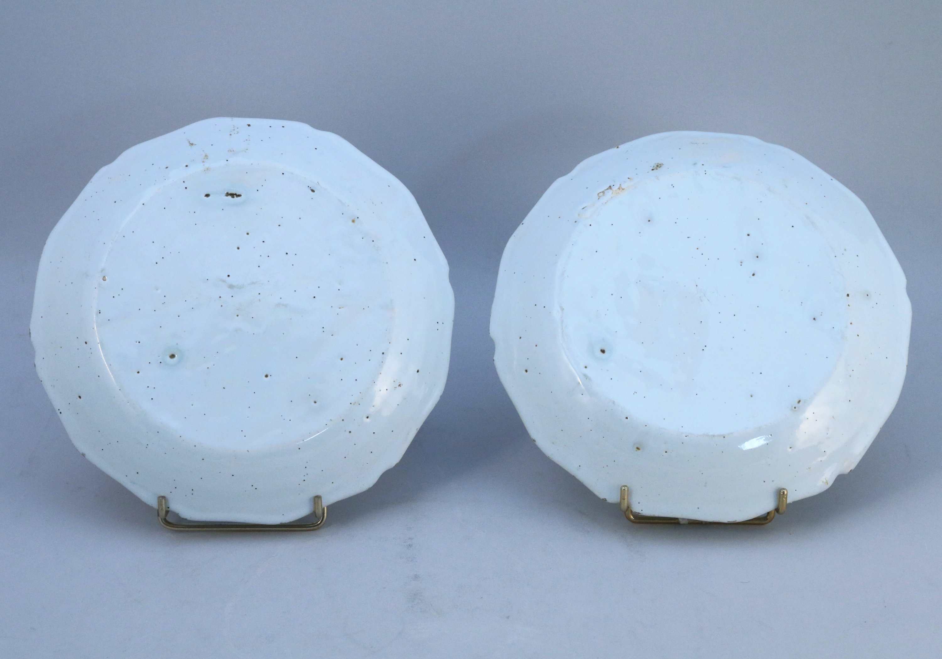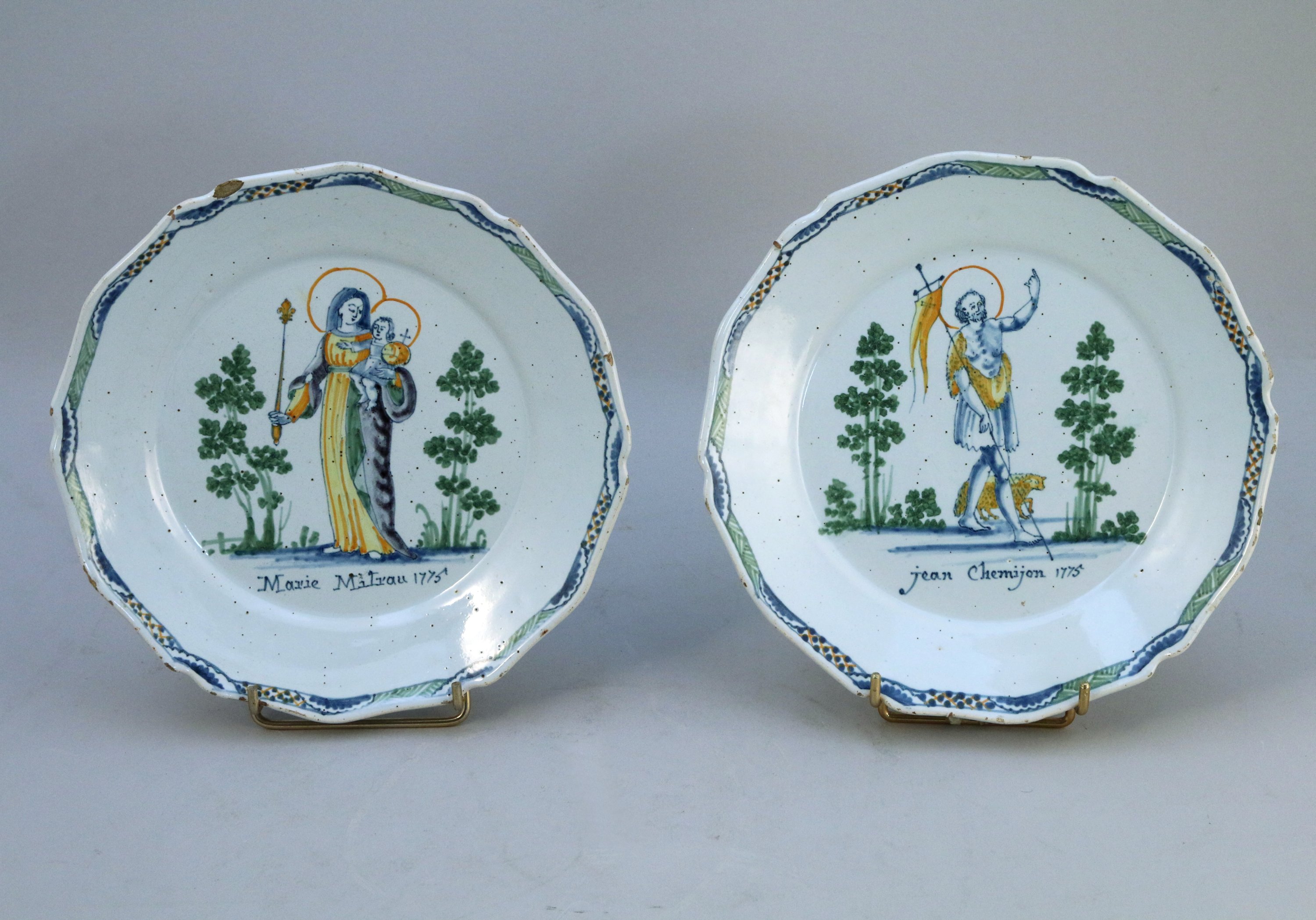 NEVERS, XVIIIe. DEUX ASSIETTES de mariage à bords chantournés