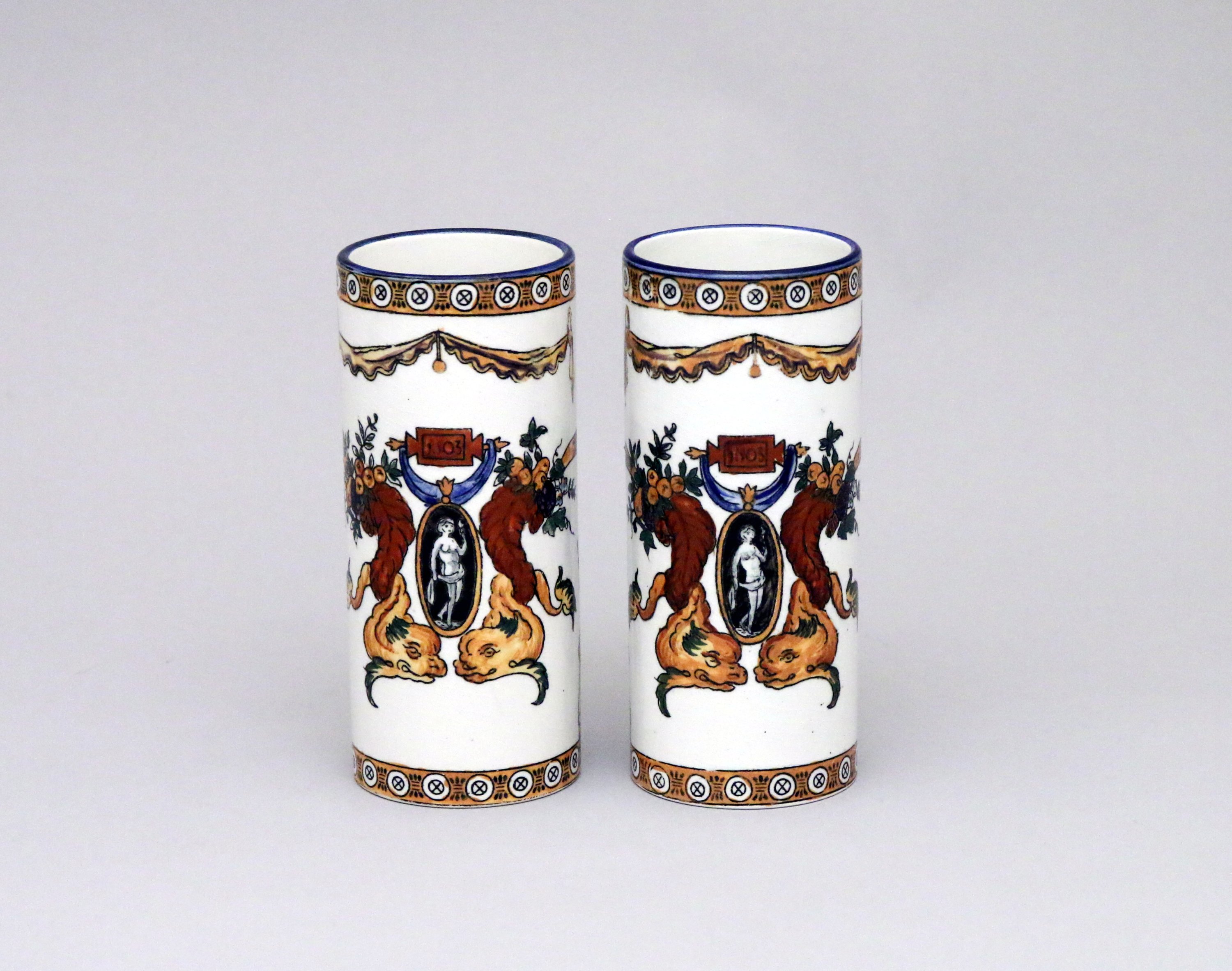 GIEN. Paire de petits VASES ROULEAUX