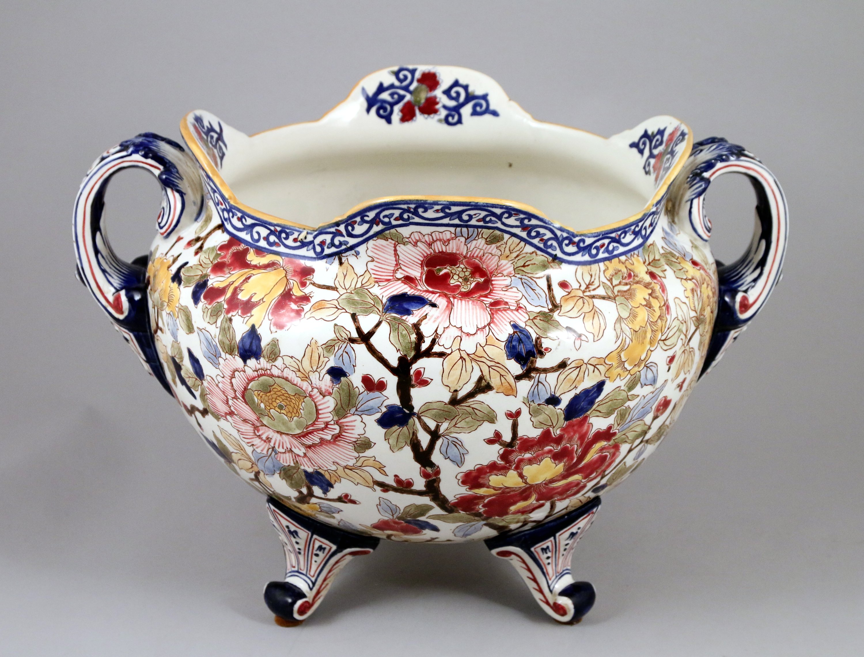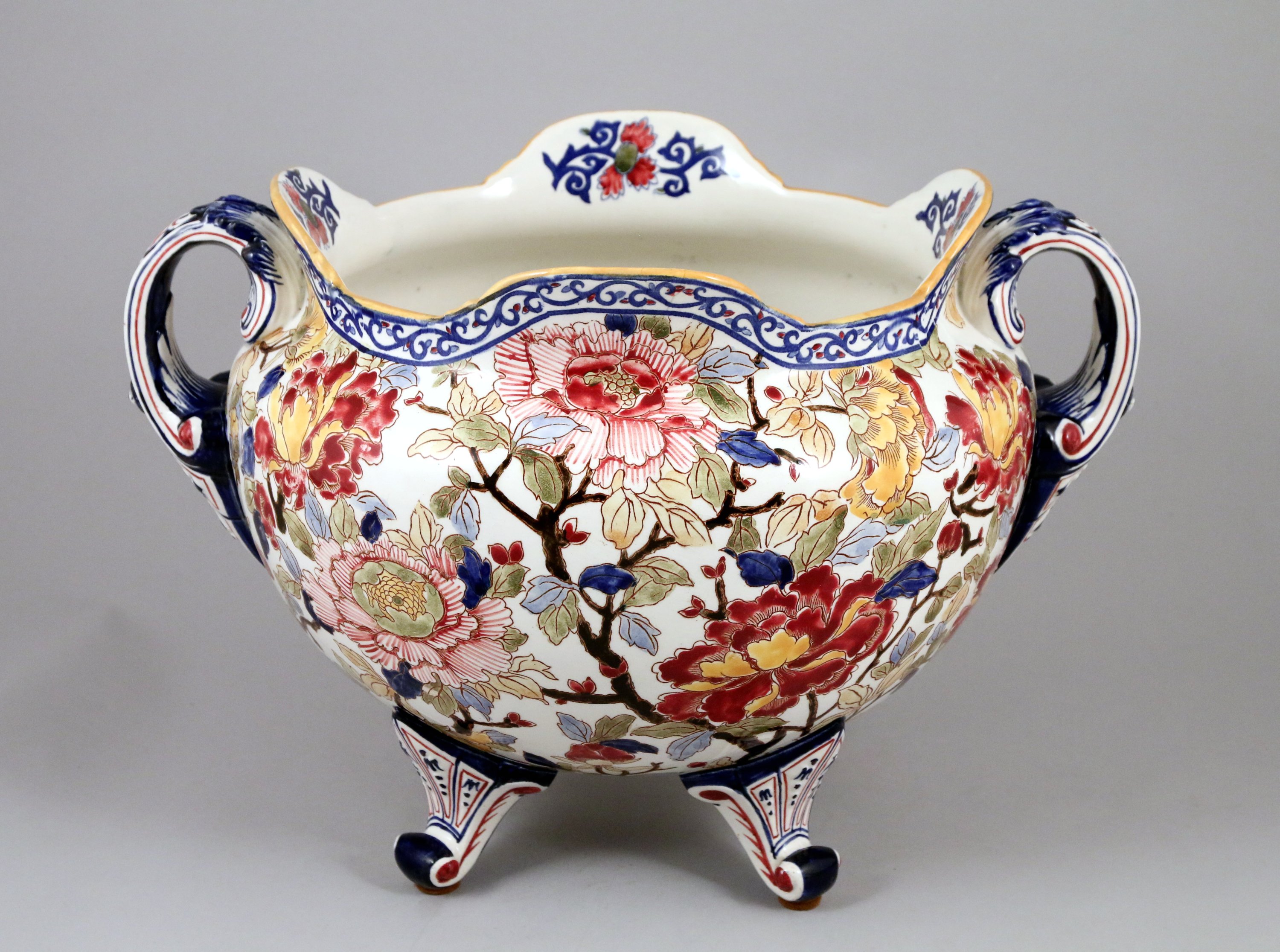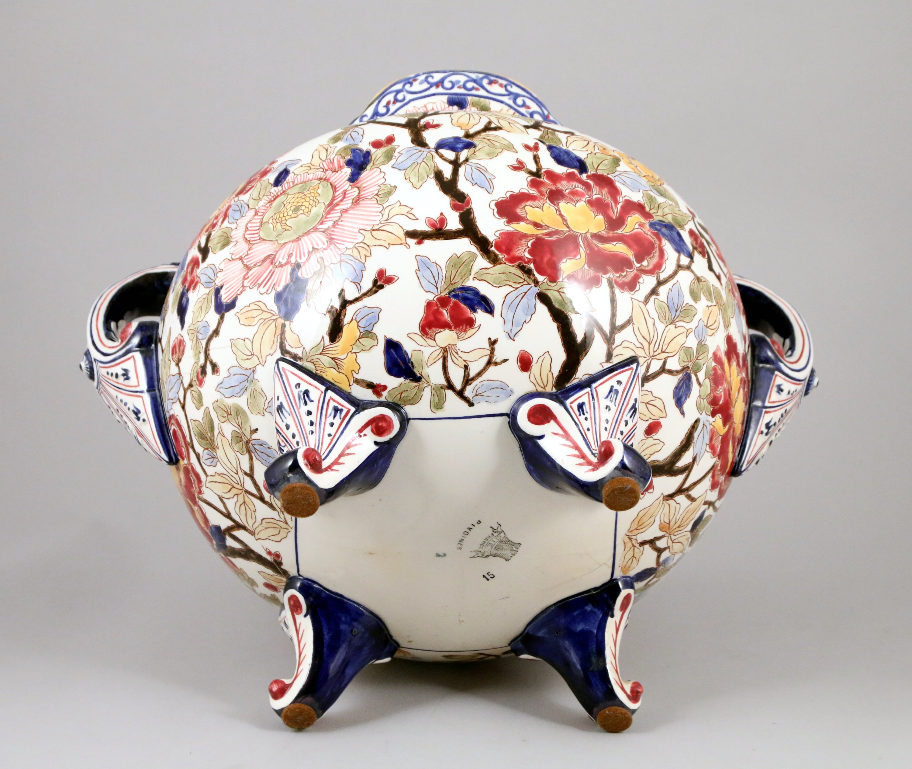 en céramique émaillée de forme ventrue dite " BERNARD " à décor aux pivoines.