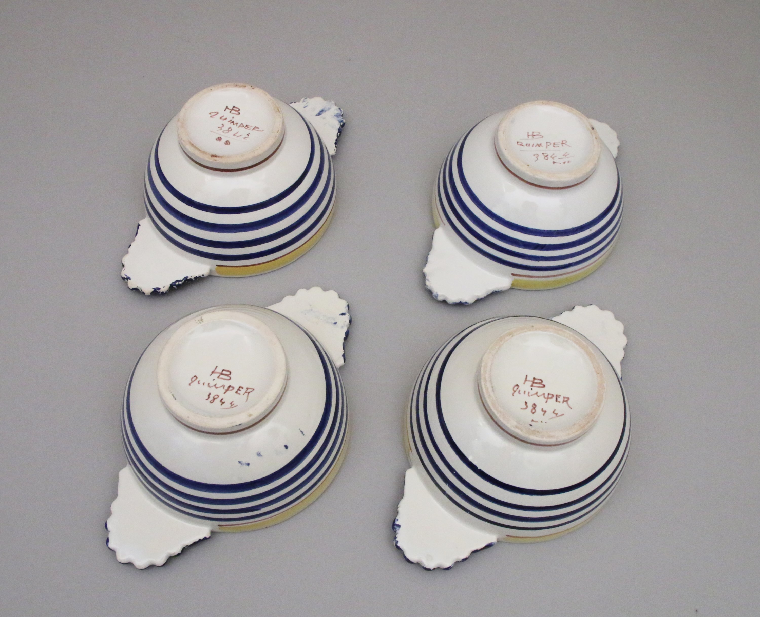 QUIMPER-LA HUBAUDIÈRE-BOUSQUET. Suite de quatre BOLSen faïence à oreilles en...