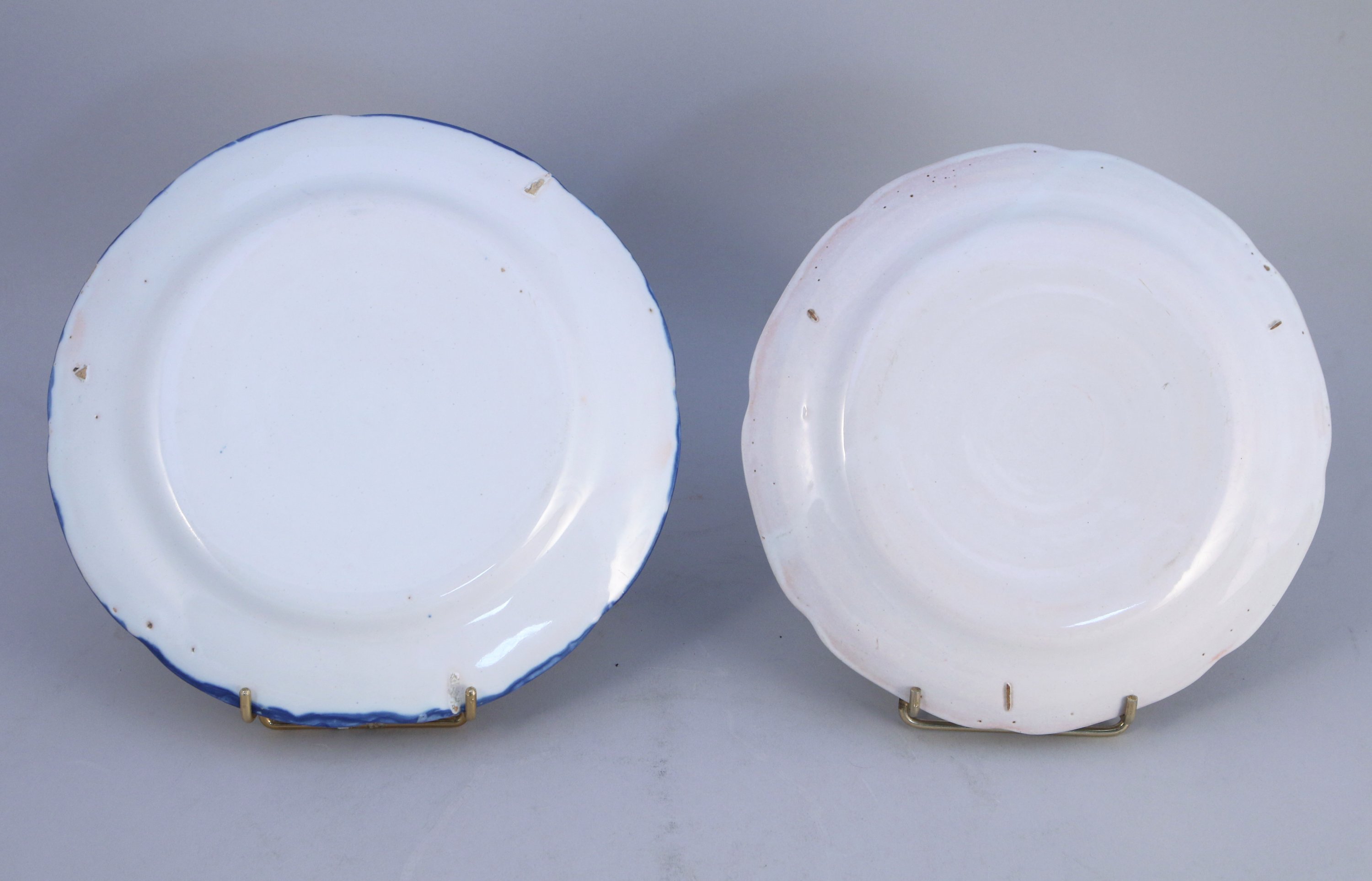 à bords contournés. L'un à décor polychrome révolutionnaire au centre sur d'un arbre de la Liberté surmonté d'un bonnet phrygien et de l'inscription : "La Liberté ou la mort" dans une banderole et sur l'autre d'un coq dans un paysage arboré.