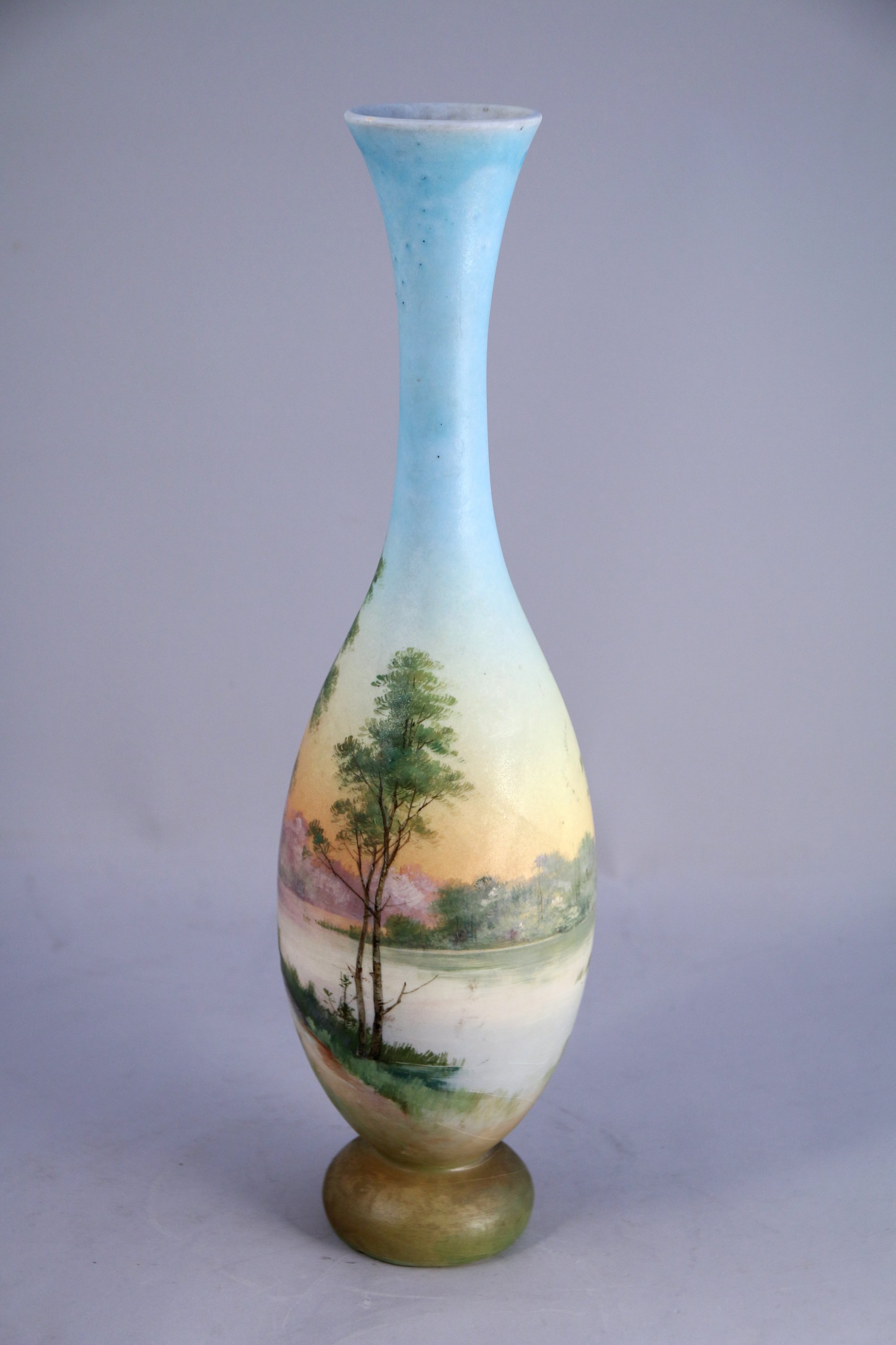VASE en faience à décor peint d'un paysage lacustre