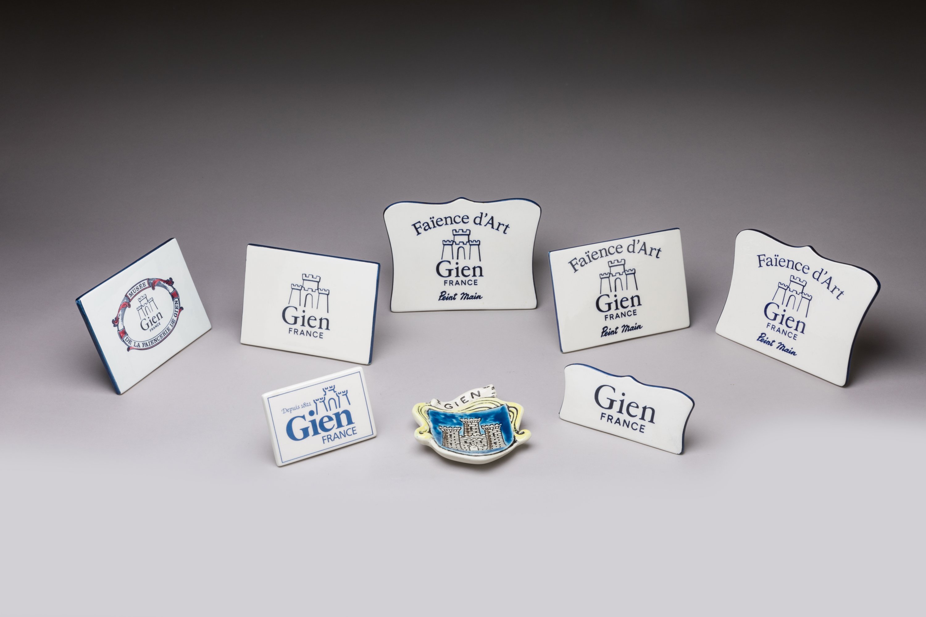 Sept PLAQUES DE MARQUES de la faïencerie d'art de Gien et du musée