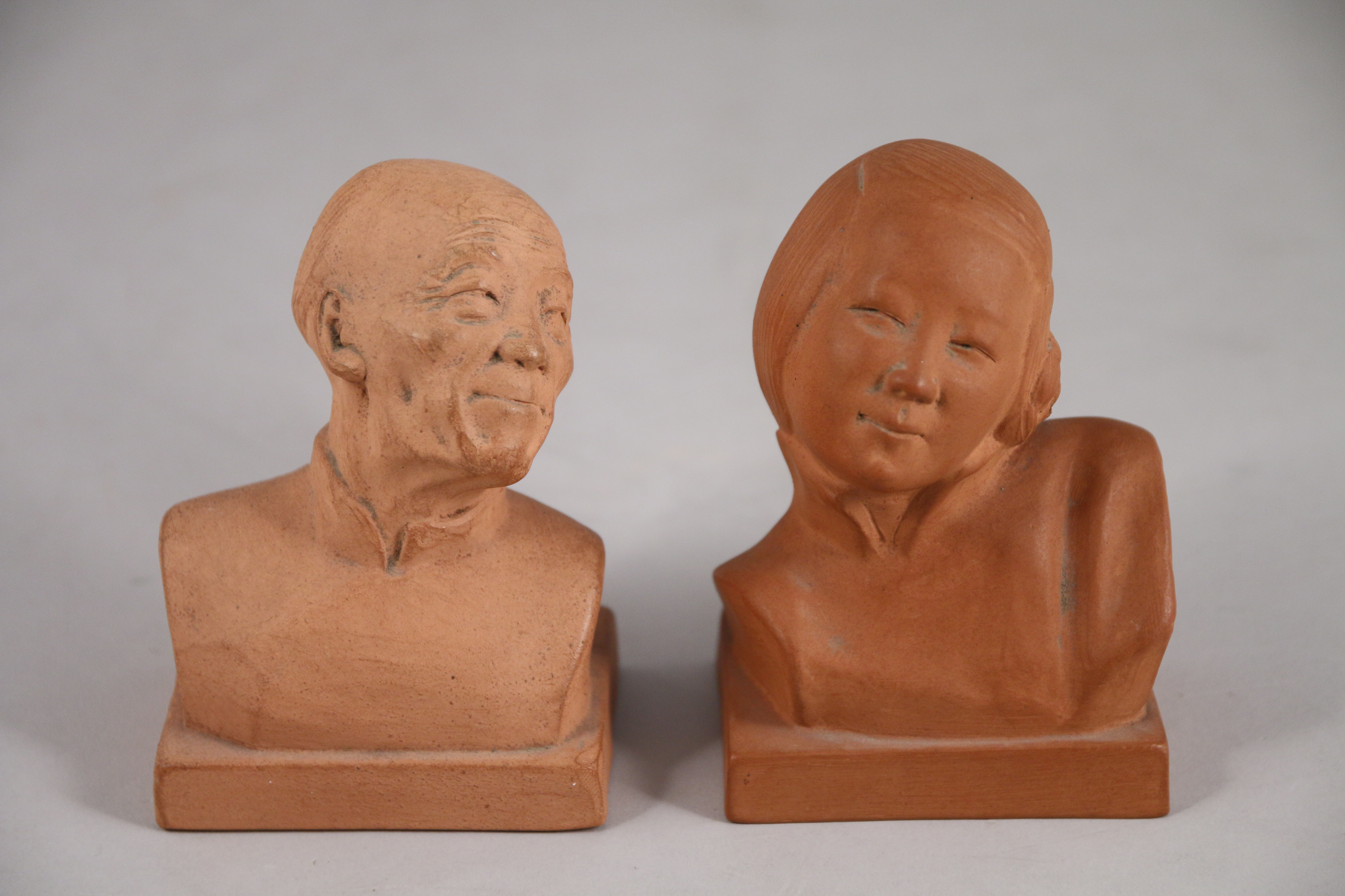 Buste de vieil asiatique et buste de jeune fille asiatique.