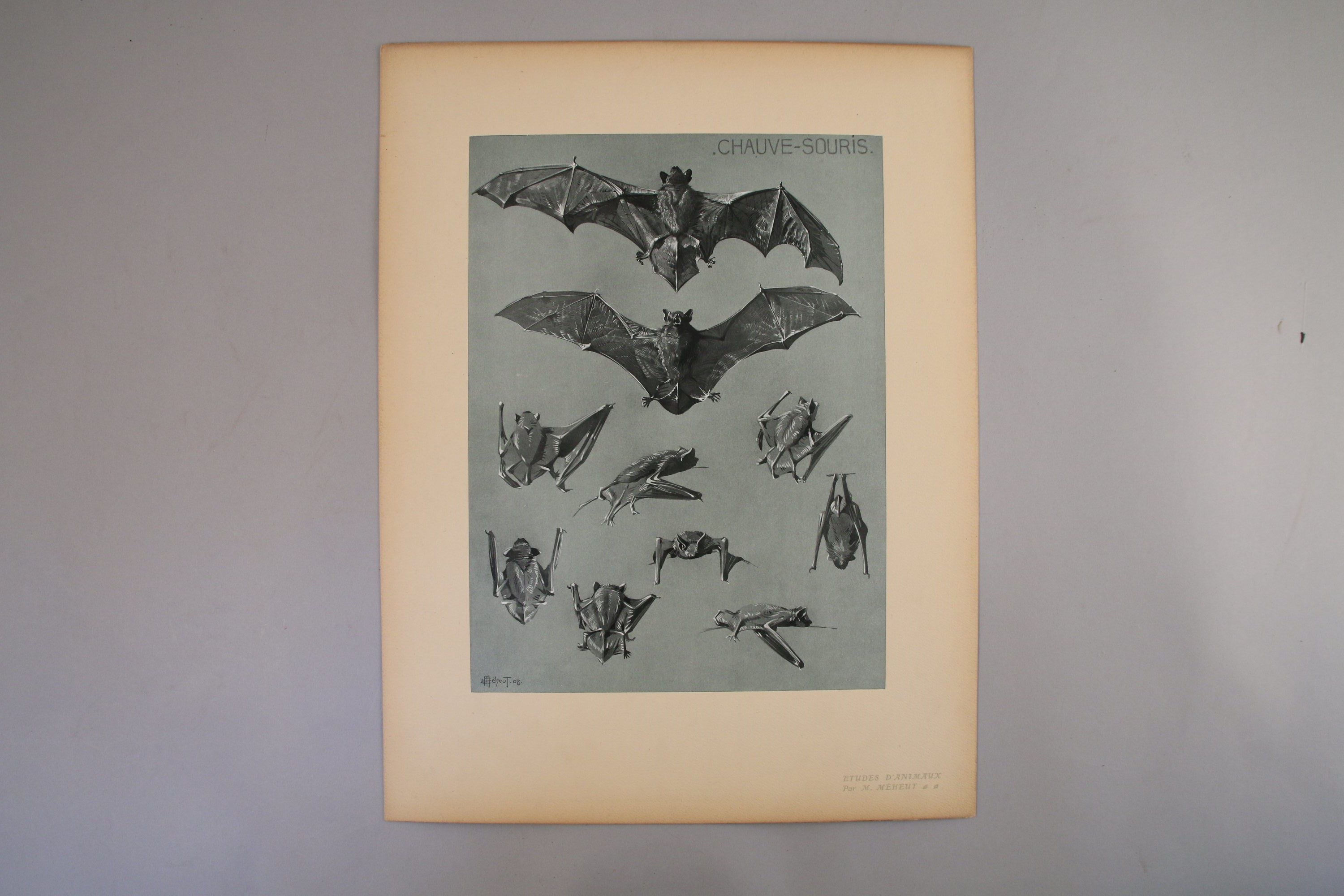 Deux chemises cartonnées de l'éditeur (450 X 340 mm) contenant 10 pages de texte de Grasset et cent planches d'animaux, en feuilles, sur carton fort. (Chemises insolées ; le dos des chemises manque).