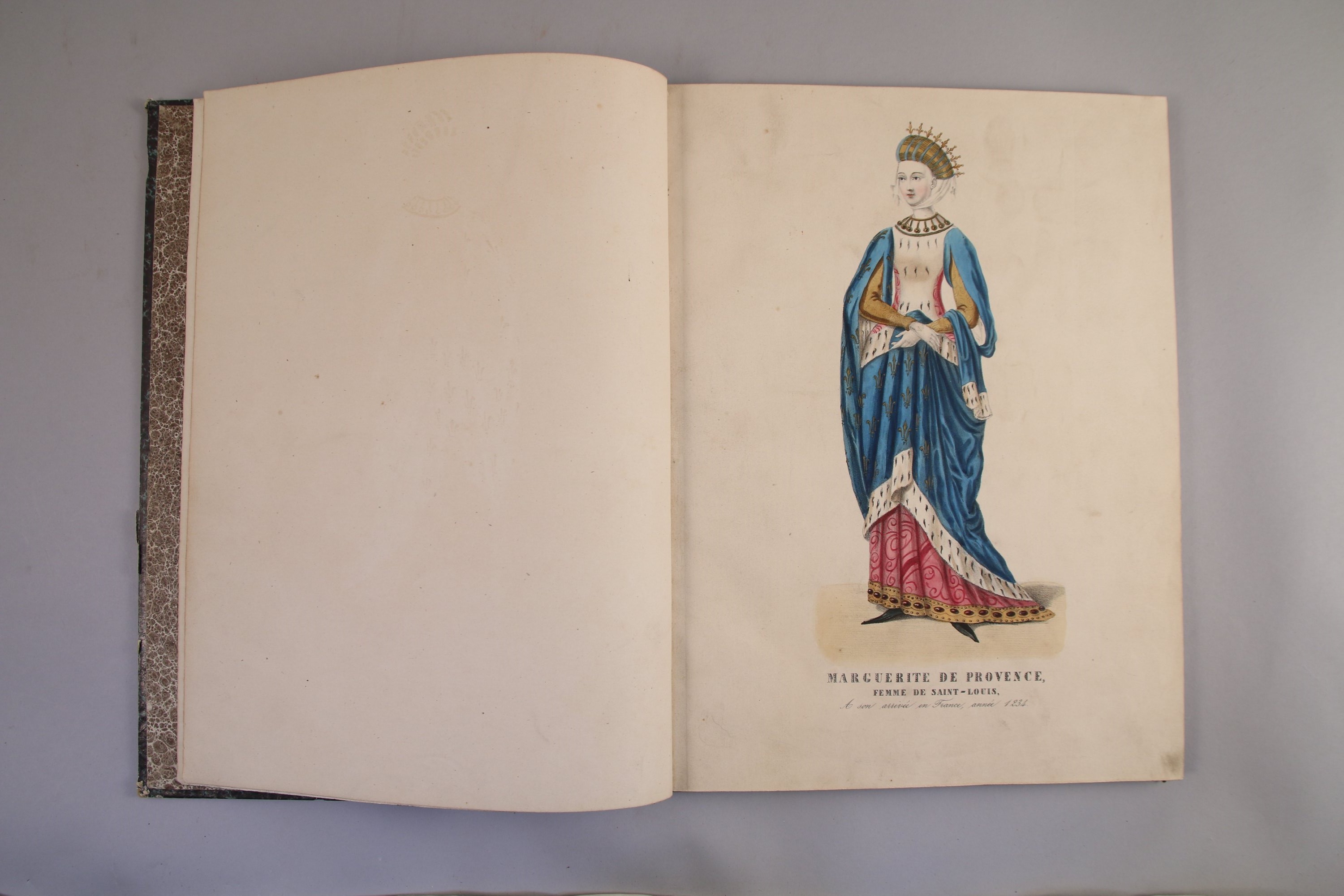- Un recueil de 32 portraits en pied, lithographiés et rehaussés en couleurs, de femmes célèbres de l'Ancien Régime (de Marguerite de Provence à la Pompadour)