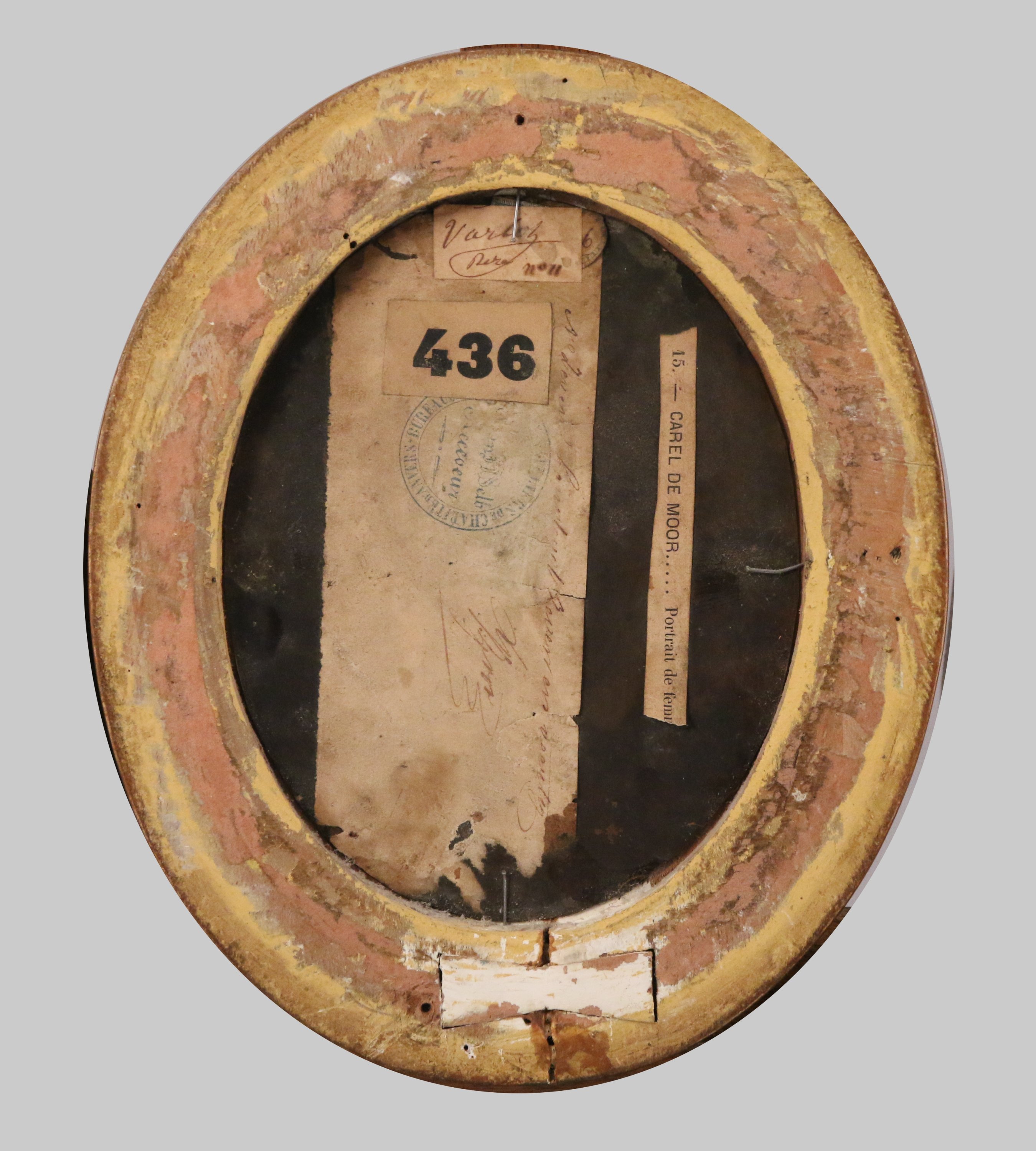 Haut. 16, Larg. 12,8 cm. (étiquettes au dos et inscription. restaurations anciennes).