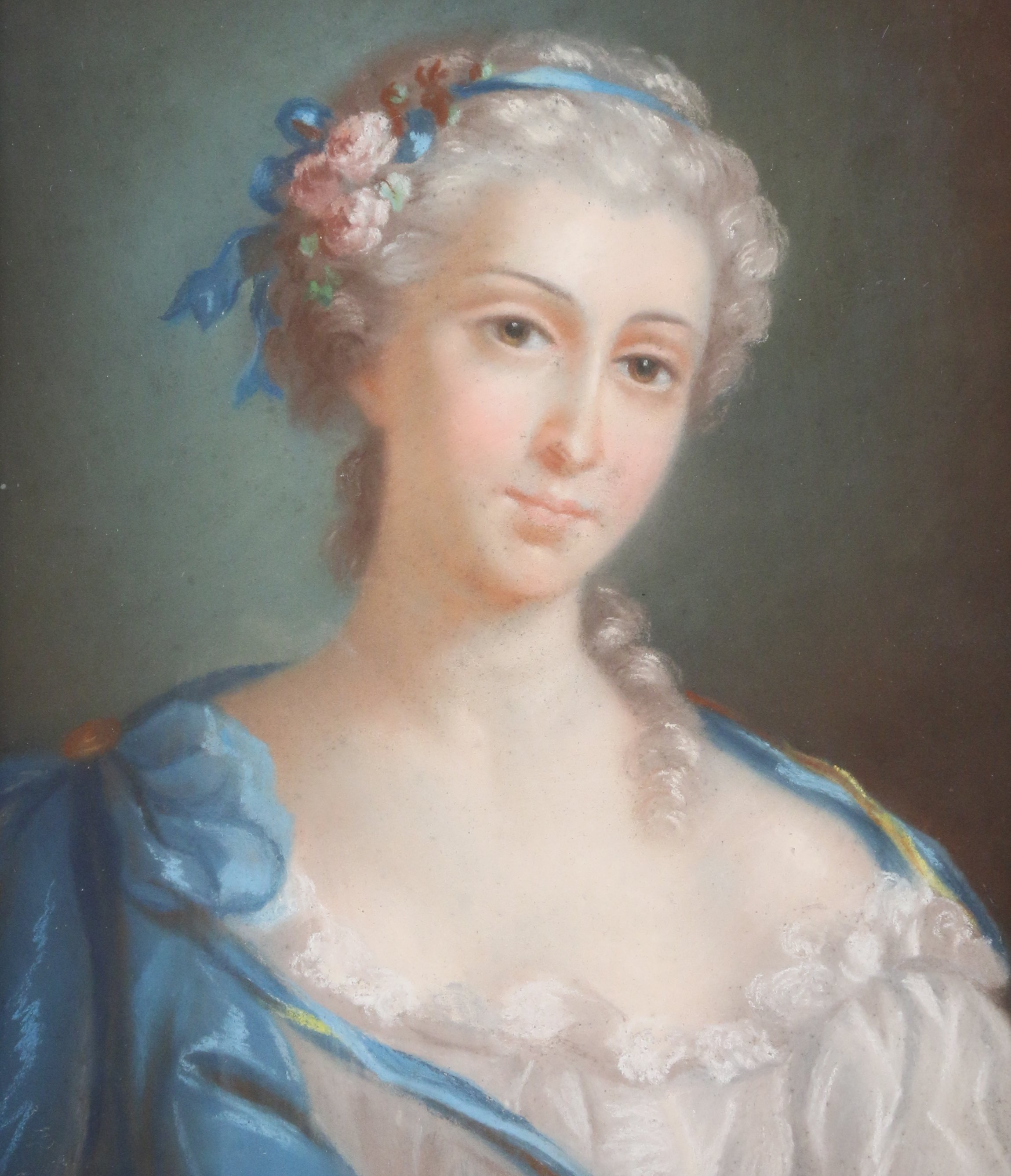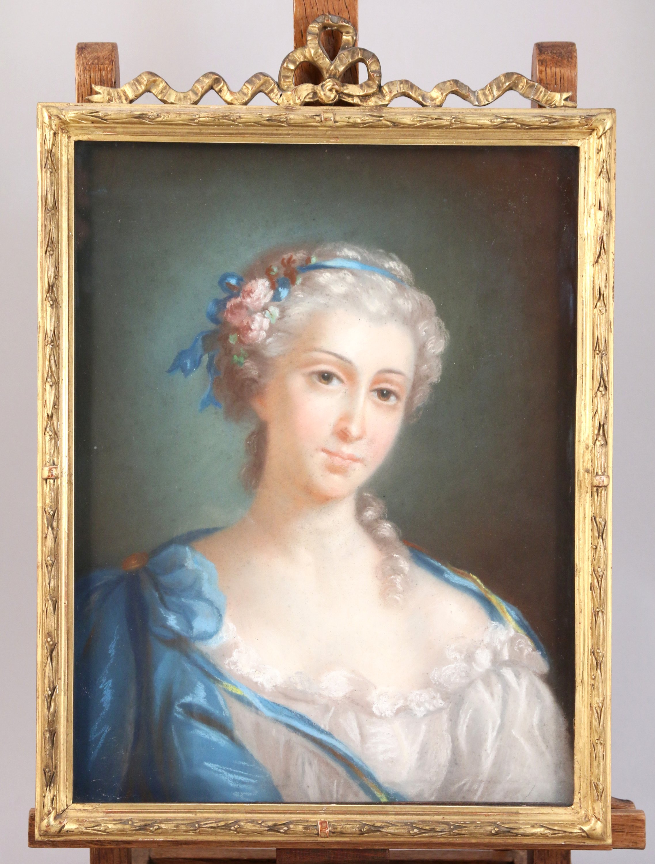 Dans un ENCADREMENT de bois doré coiffé d'un ruban noué. (Haut. 43, Larg. 30 cm.)