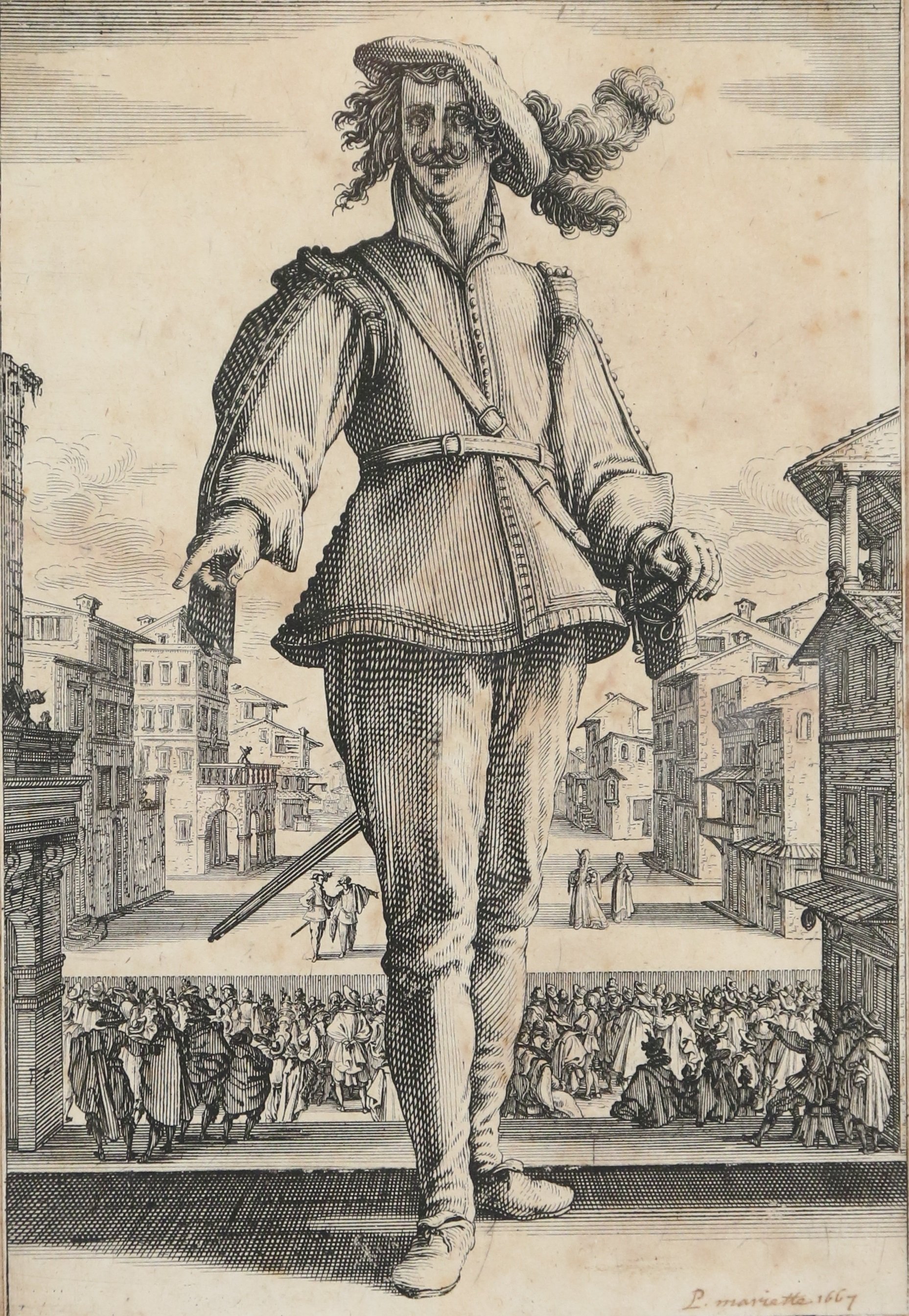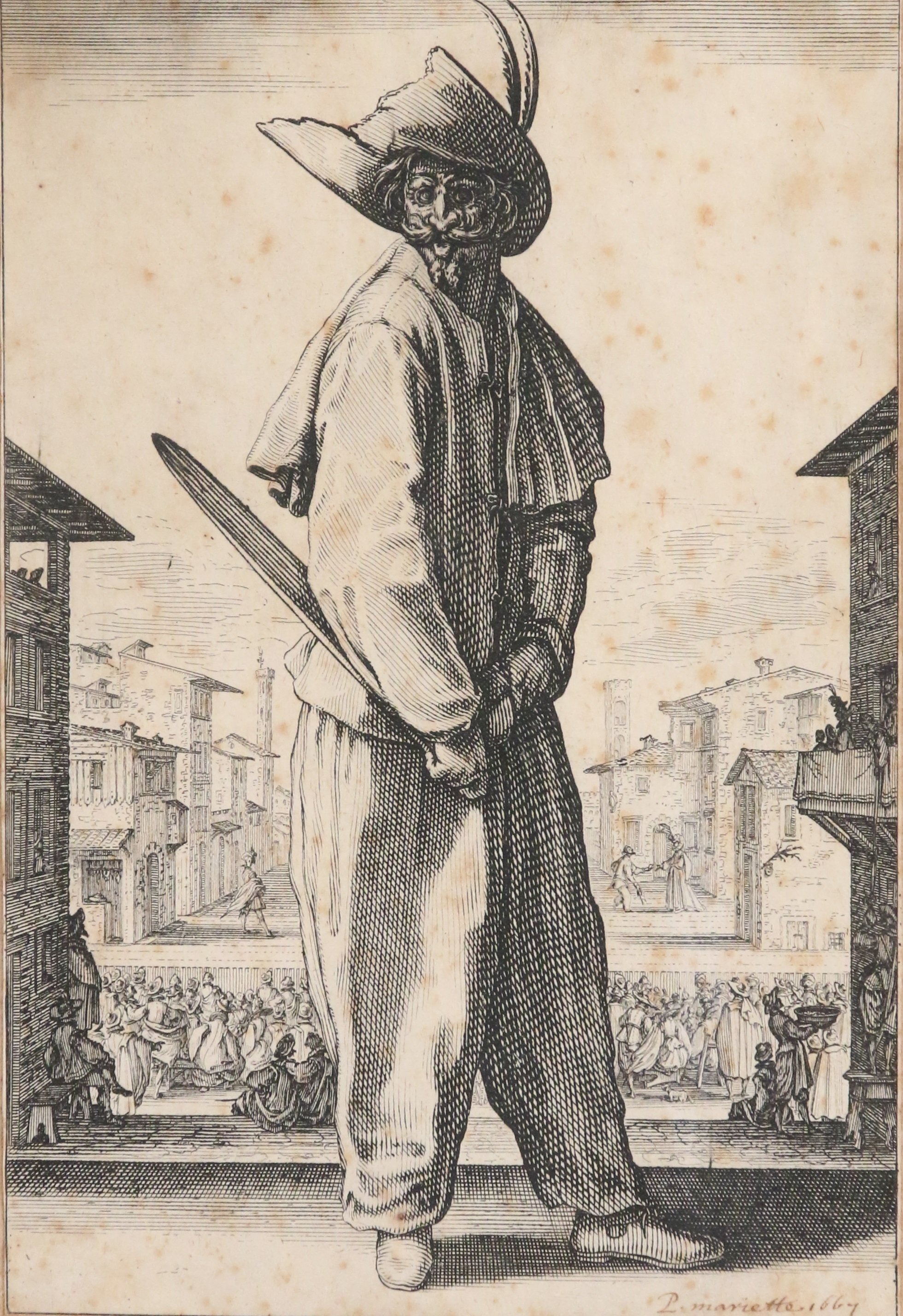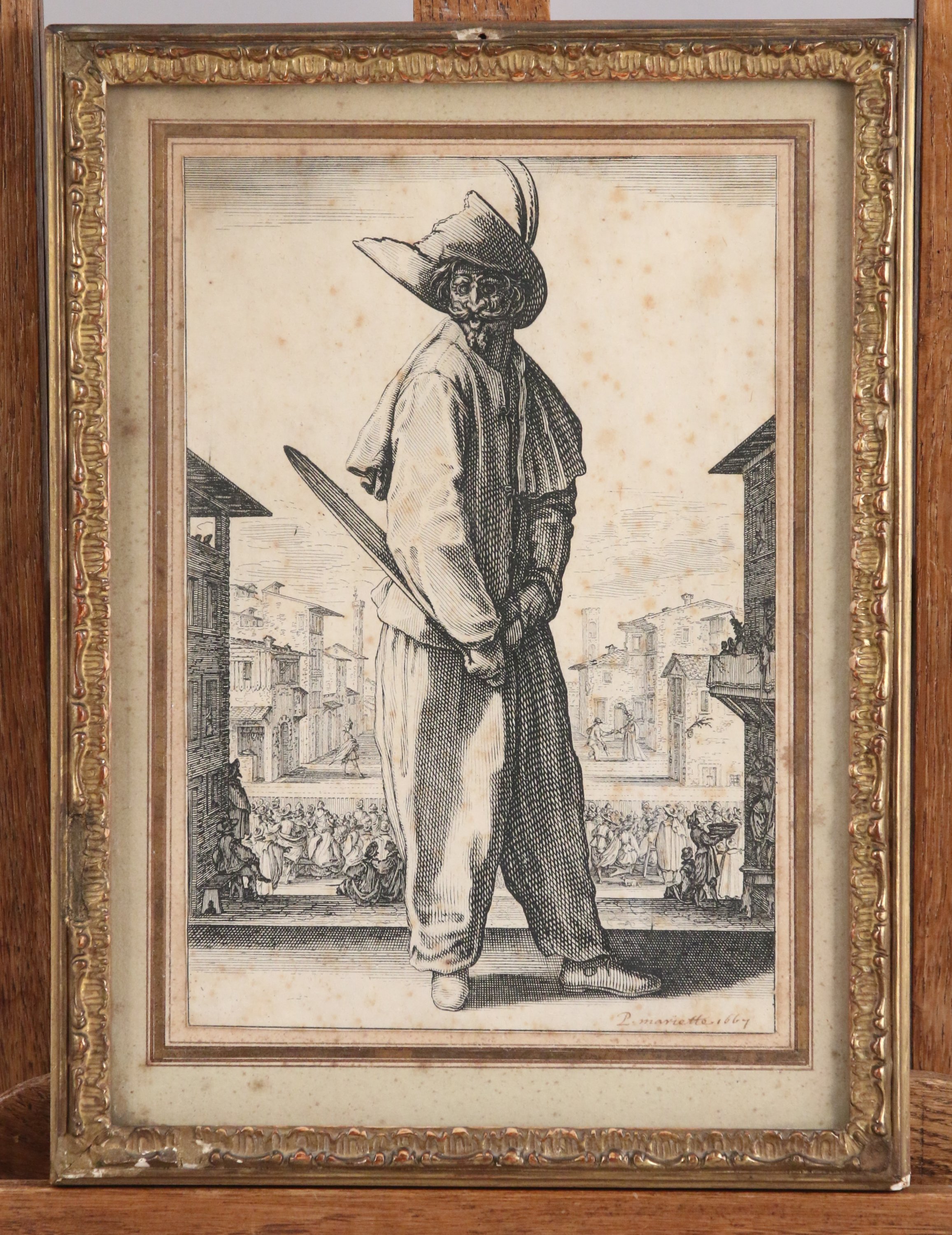 Jacques CALLOT (1592-1635)Deux commédiens italiens.Deux gravures anotées à la plume...
