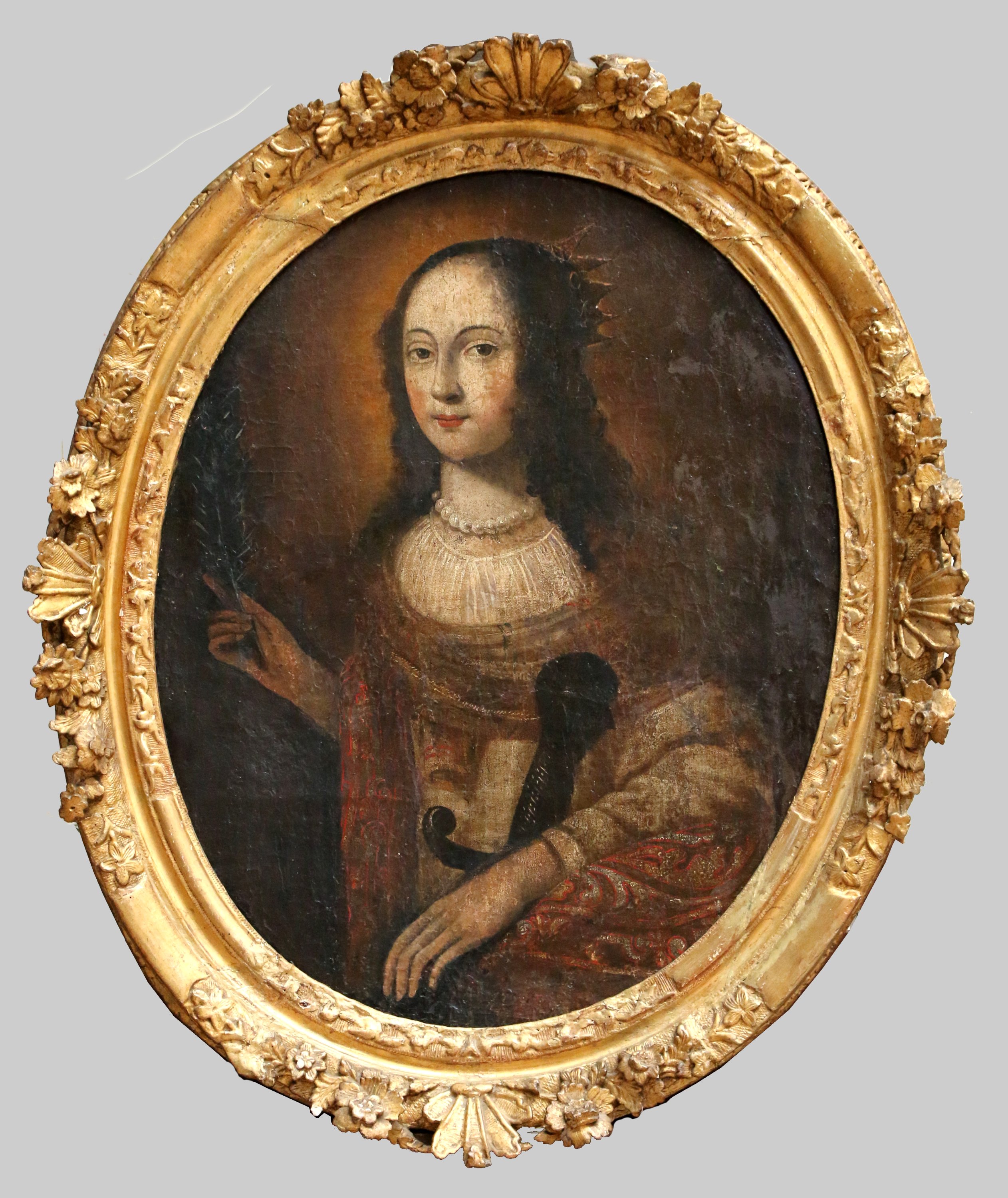 Dans un beau cadre en bois sculpté et doré d'époque Louis XIV.