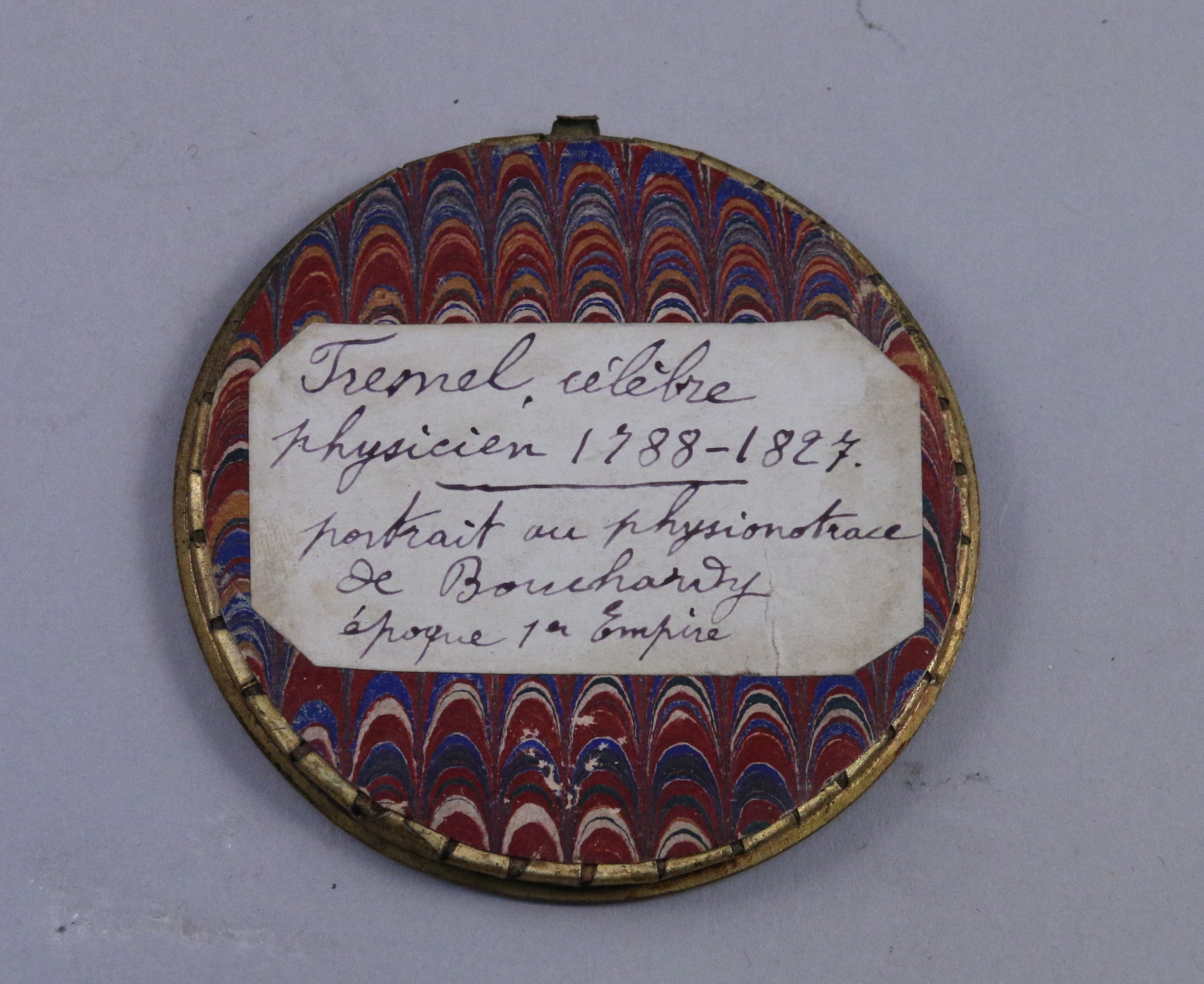 Physionotrace, encadré dans un médaillon sous verre titré sur une étiquette au dos.