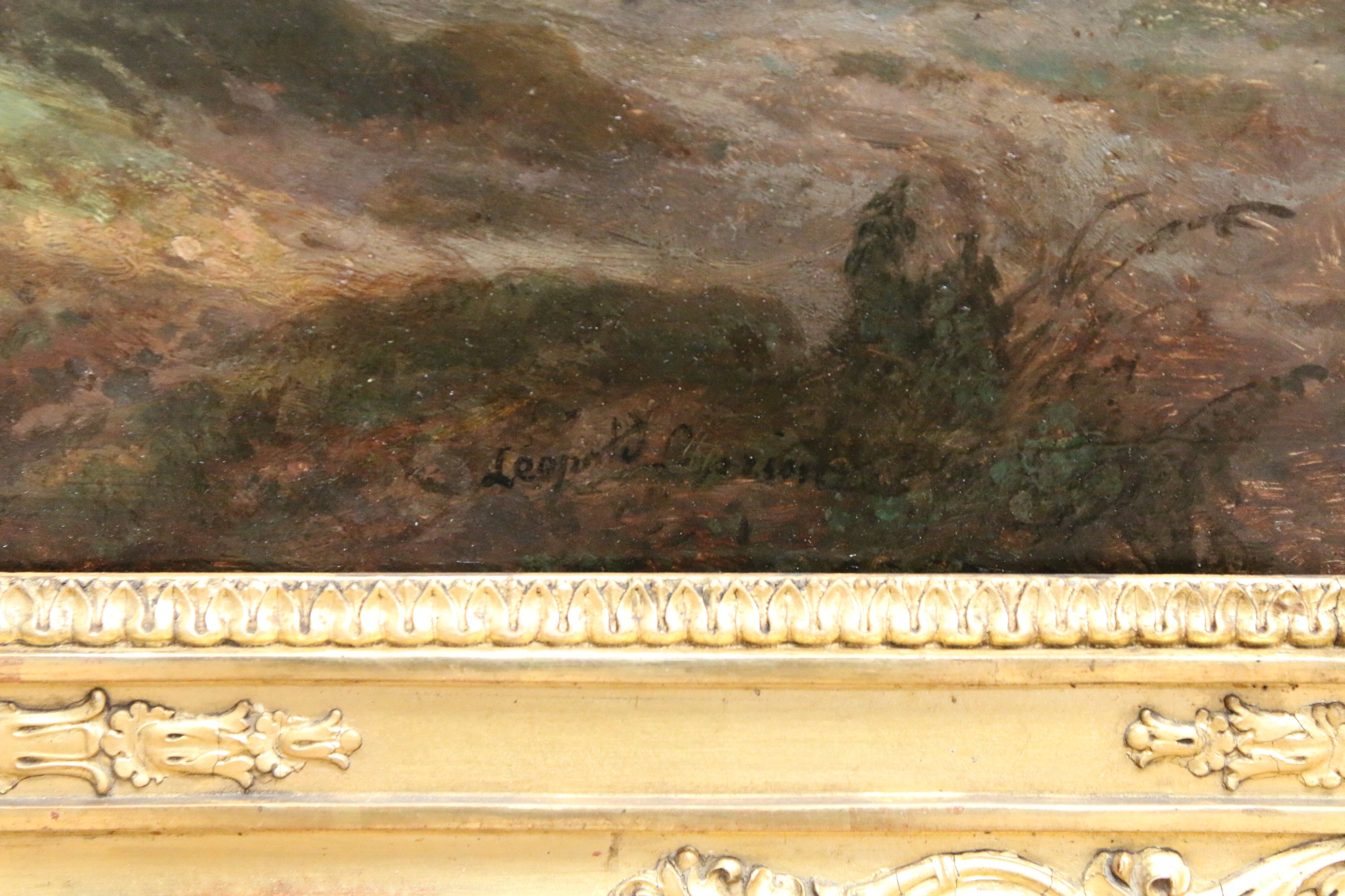 Peintre de paysages historiques, Léopold Leprince naît à Paris en 1800, il devient l'élève de son frère Xavier Leprince. Léopold obtient une médaille d'or à l'exposition du Louvre en 1824, et diverses autres aux expositions de Toulouse, Douai, Lille et Cambrai. Il s'établit à Chartres où il se fait une réputation de peintre de paysages, et à Paris au 23 rue Rochechouart. Le Musée du Louvre, le château de Versailles (Musée du Trianon), ou encore le Musée des Beaux-Arts de Tours, constituent parmi les plus beaux écrins de ses uvres. On a pu trouver dans les fonds d'archives publiques du musée du Louvre une "proposition d'acquisition d'un tableau de Léopold Leprince représentant « des jeunes pêcheurs dans un paysage »[1p.] (9 novembre 1835).", soit la même année que l'oeuvre que nous présentons.