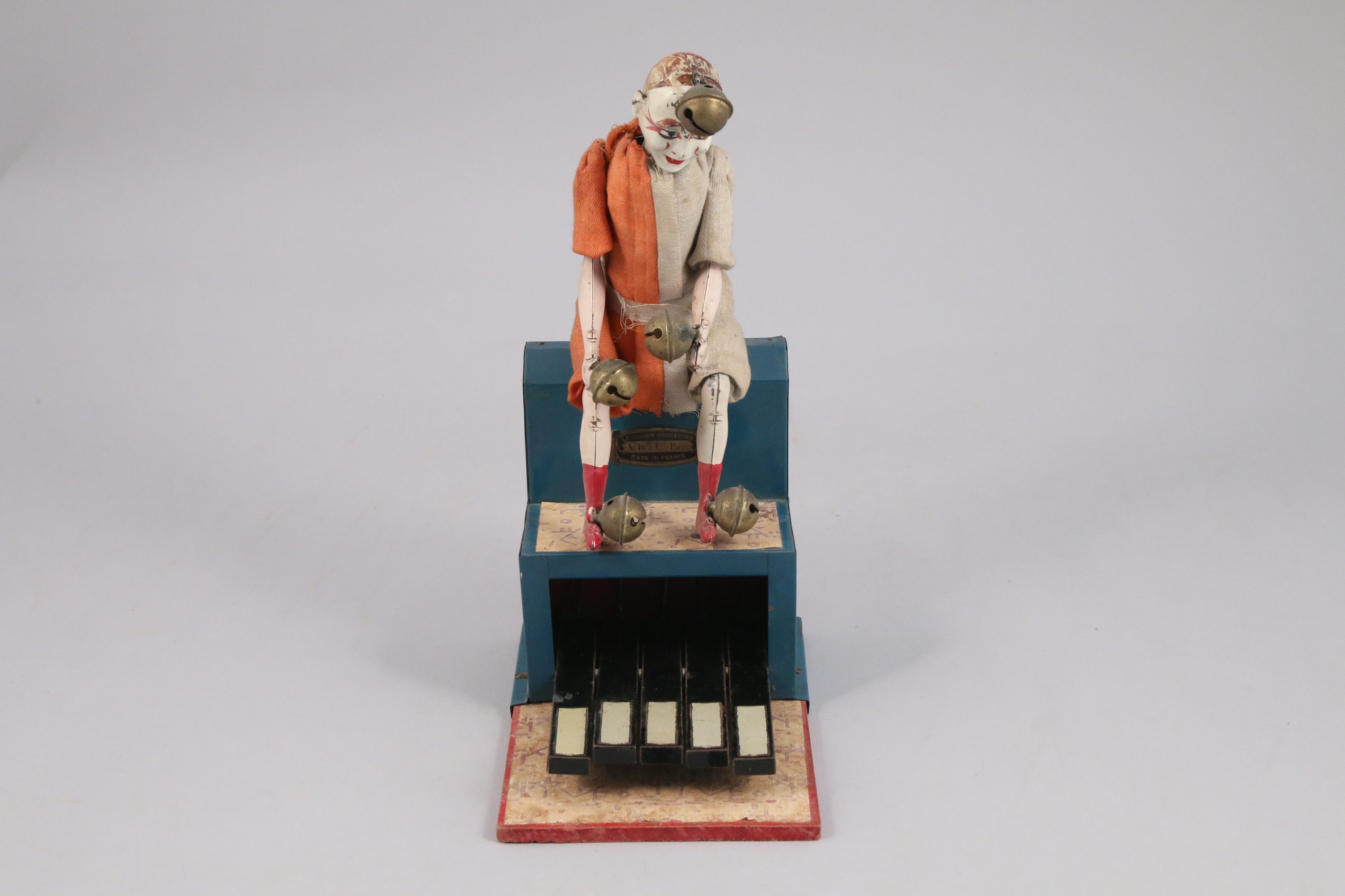 Avec habits d'origine et grelots. Titré et marqué "V B & Cie Paris" sur la plaque.