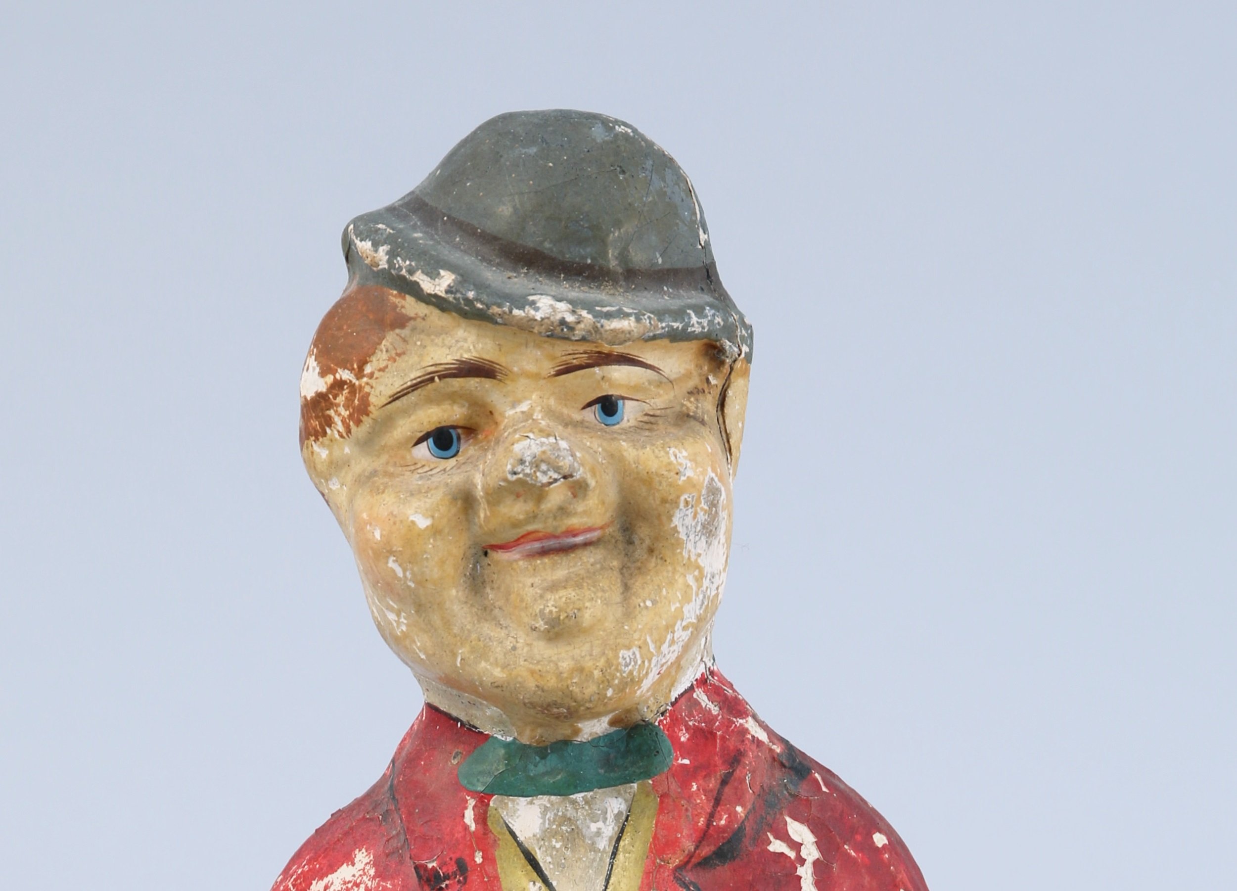CLOWN en carton bouilli polychrome. Haut. 24,5 cm. (en l'état)JOINT...