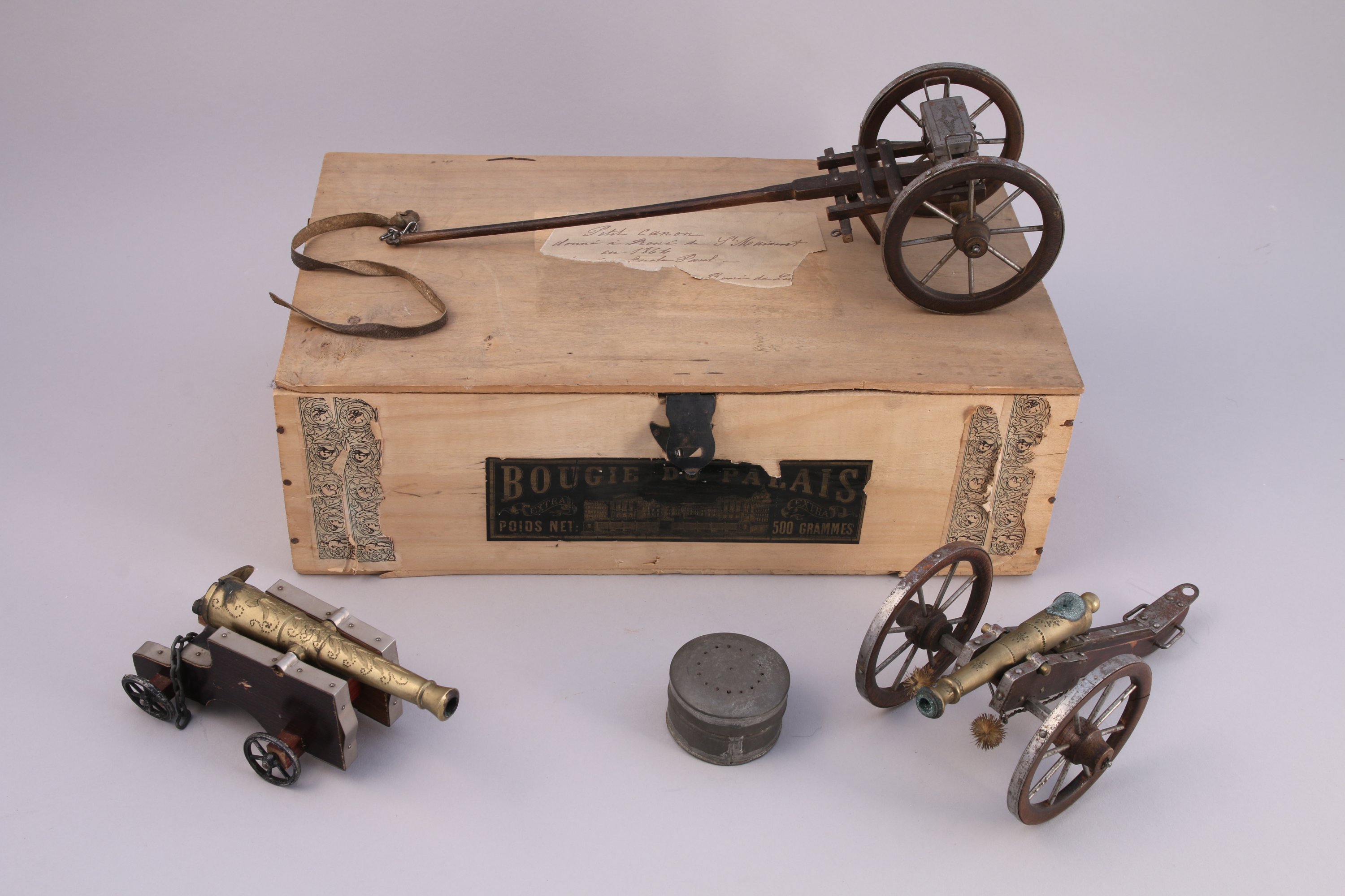 Canon et affût : Haut. 8, Long. 20 cm. (oxydations) Train : Haut. 8, Long. 31 cm. (oxydationssuperficielles)