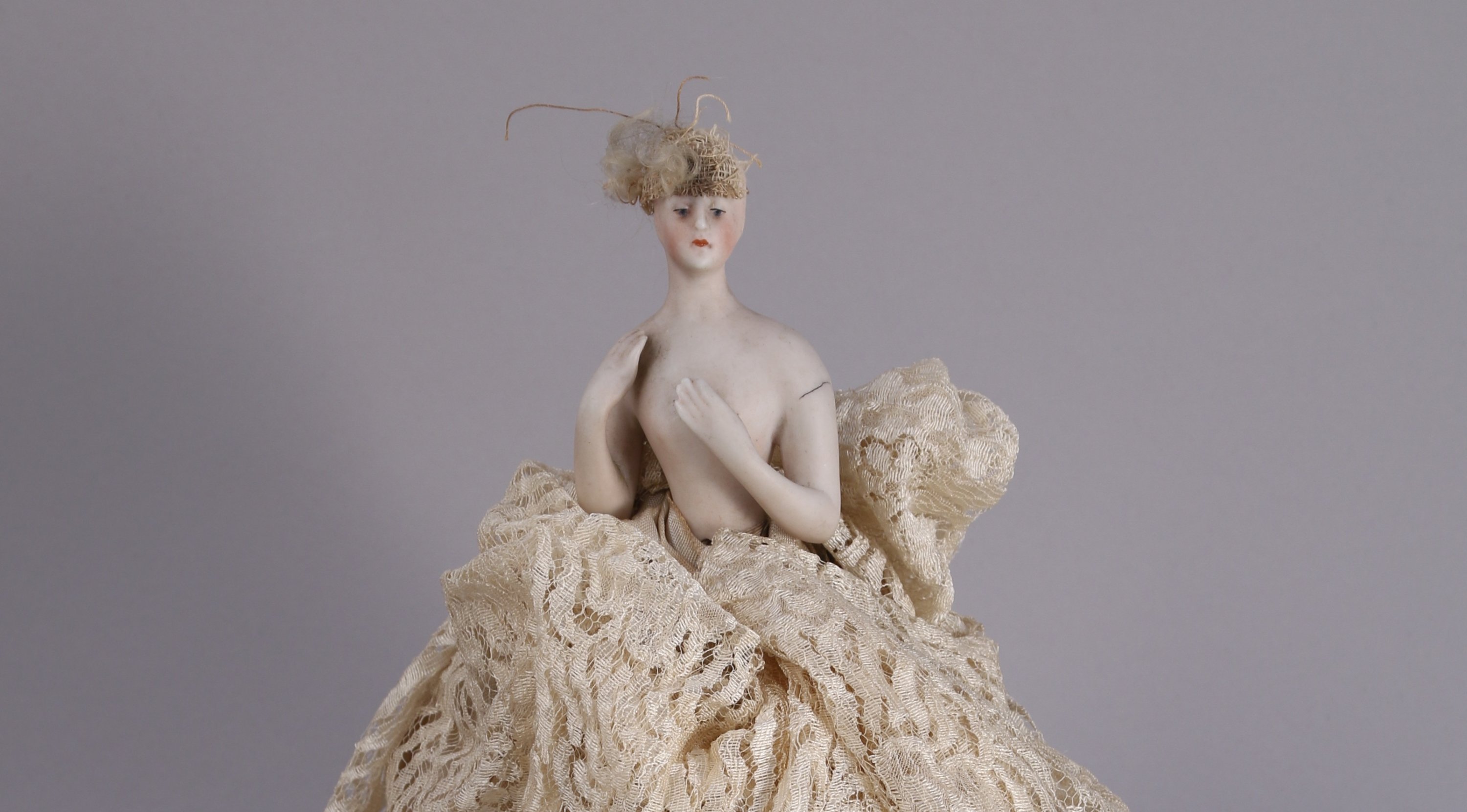 BUSTE de FEMME en porcelaine émergeant d'une ample robe à armature.