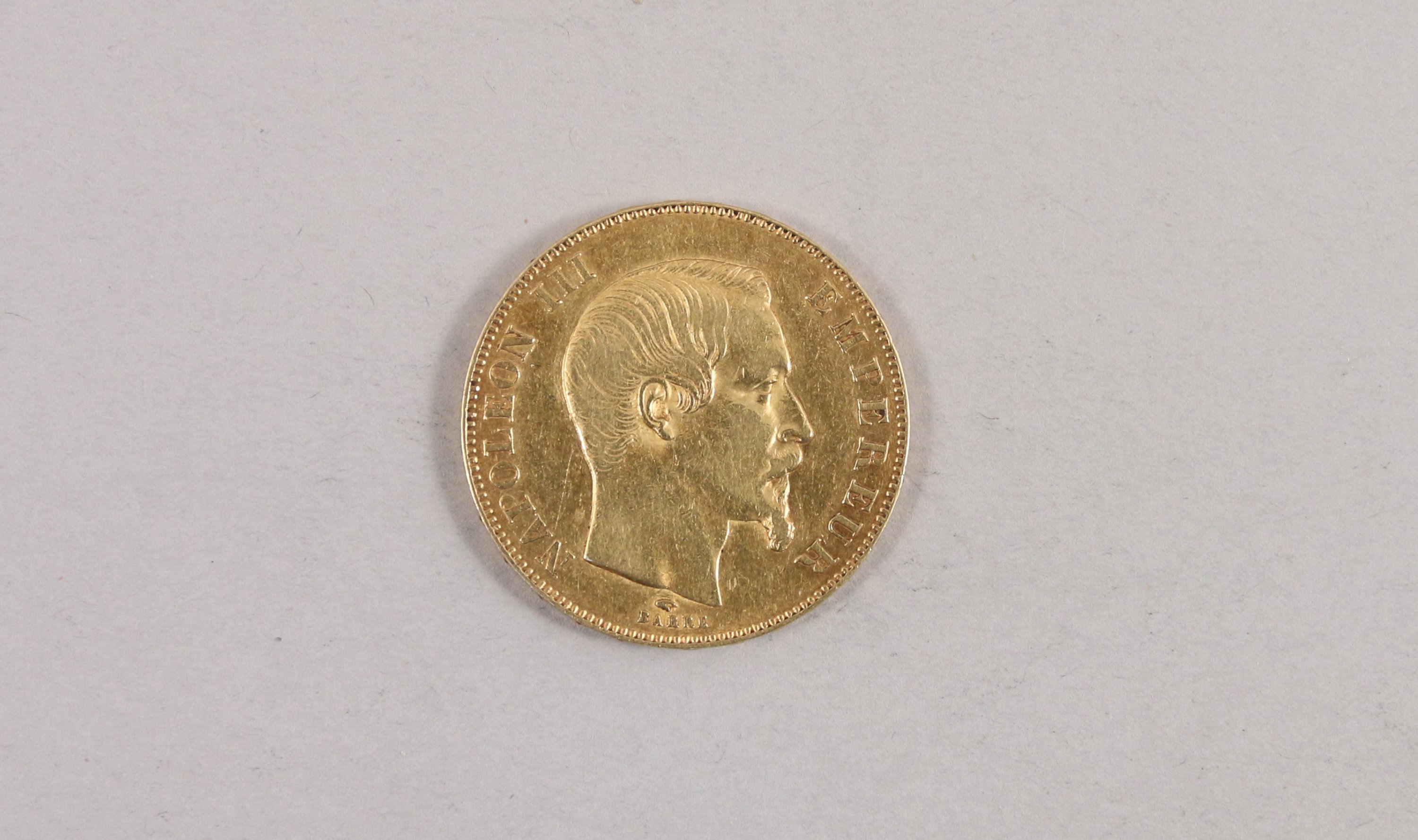 FRANCE. 1 x 50 F.or Napoléon III, tête nue, Paris, 1857.