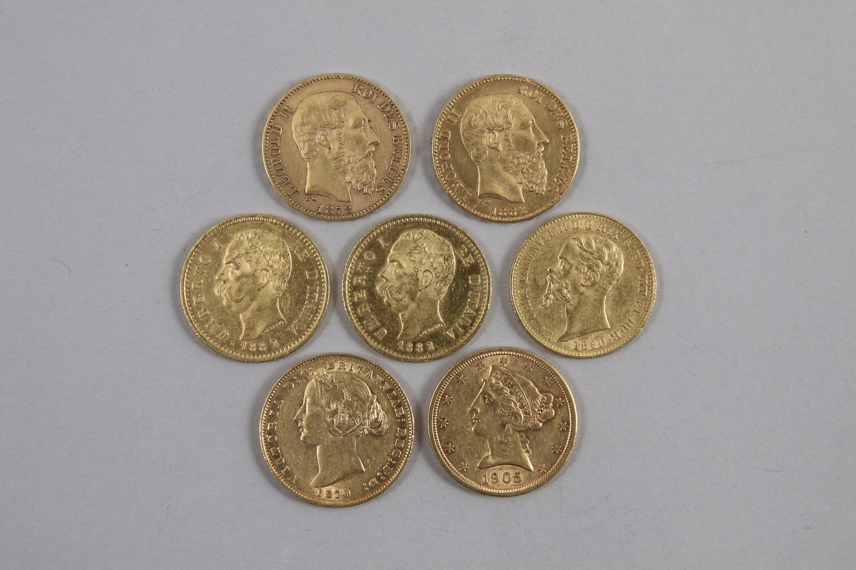 EUROPE, AUSTRALIE et AMÉRIQUE. Réunion de 7 monnaies or :